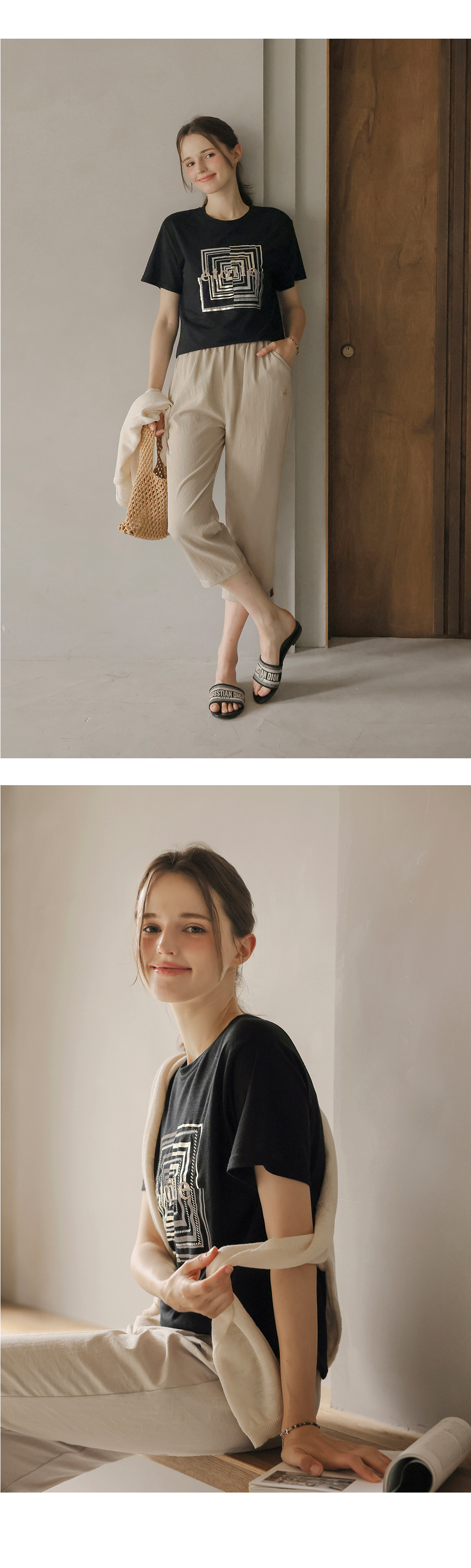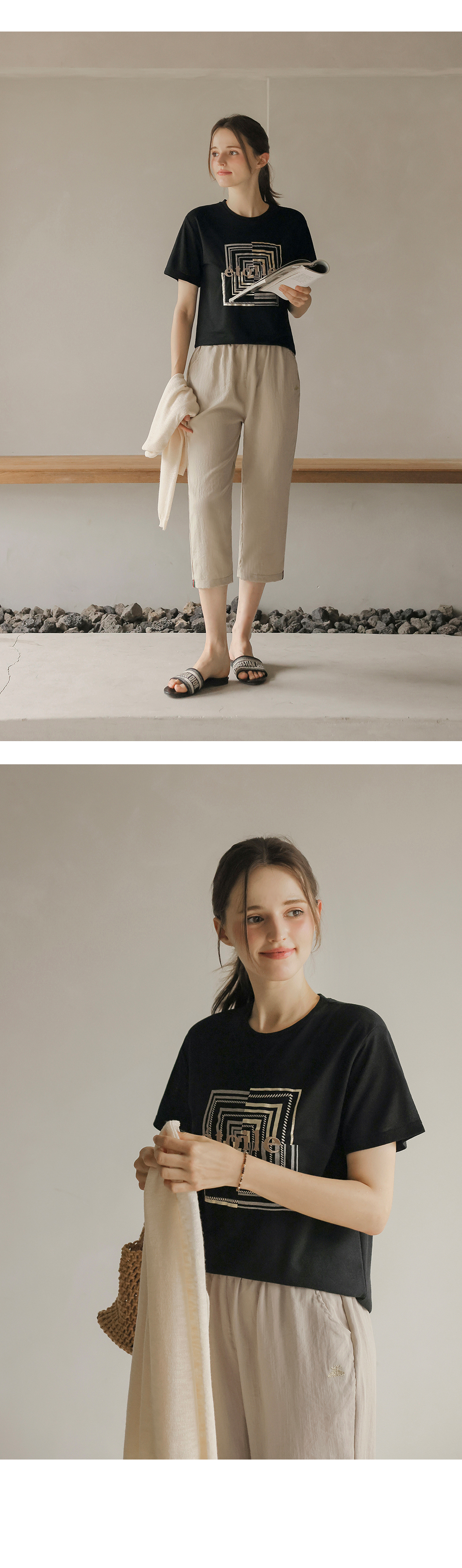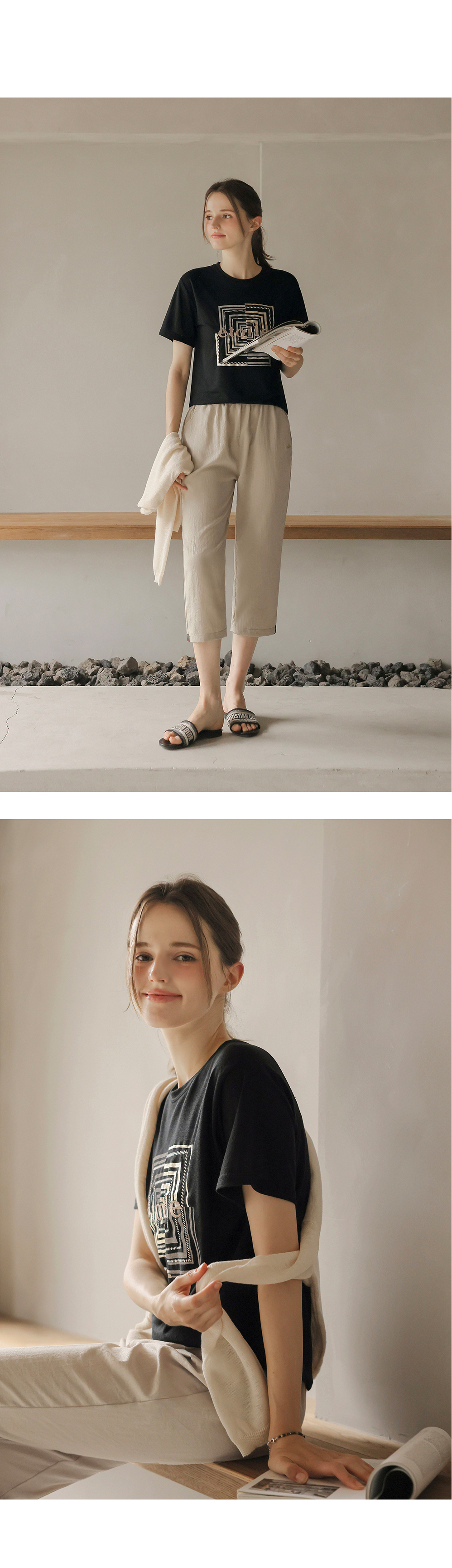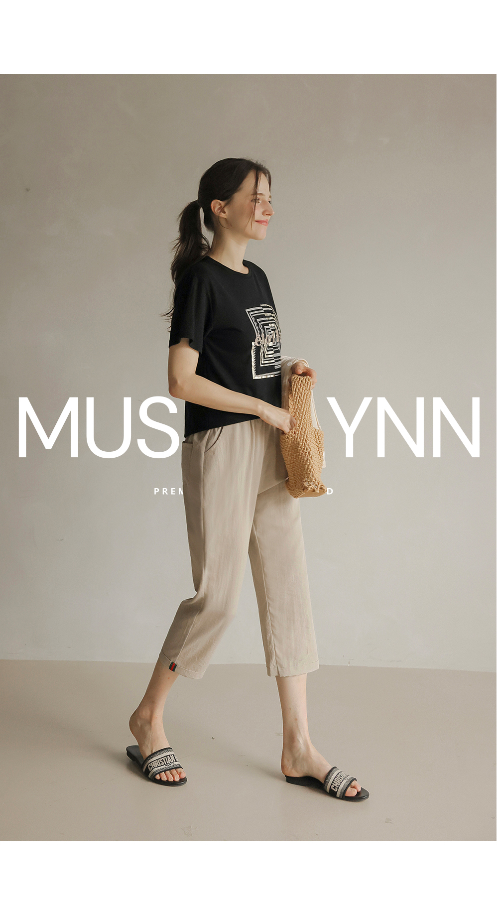 [뮤즈린] 루안 꿀벌자수 테이핑 7부 팬츠 [밴딩]