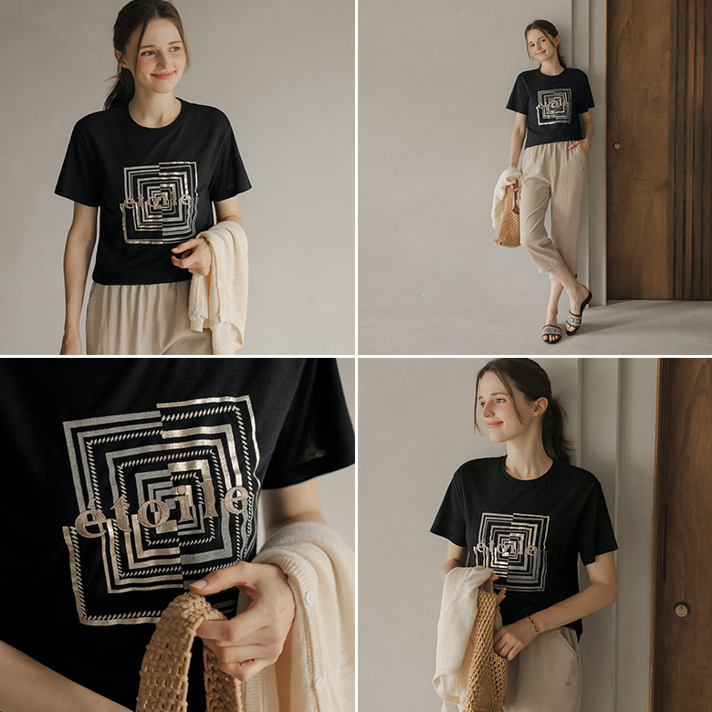[뮤즈린] 루안 골드미러 린넨 반팔 티셔츠