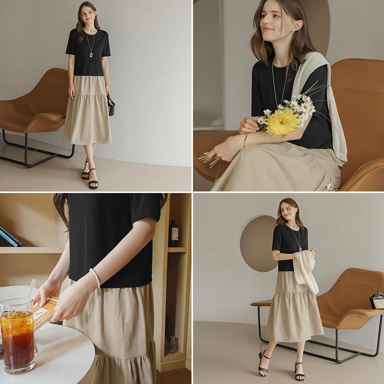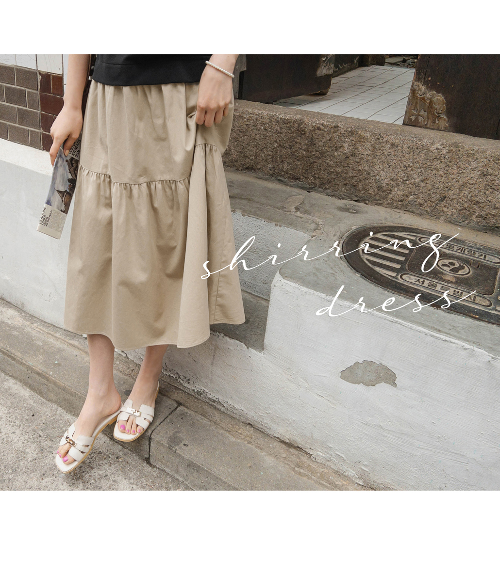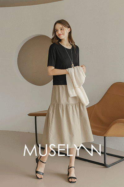 [뮤즈린] 마딜 셔링 배색 원피스