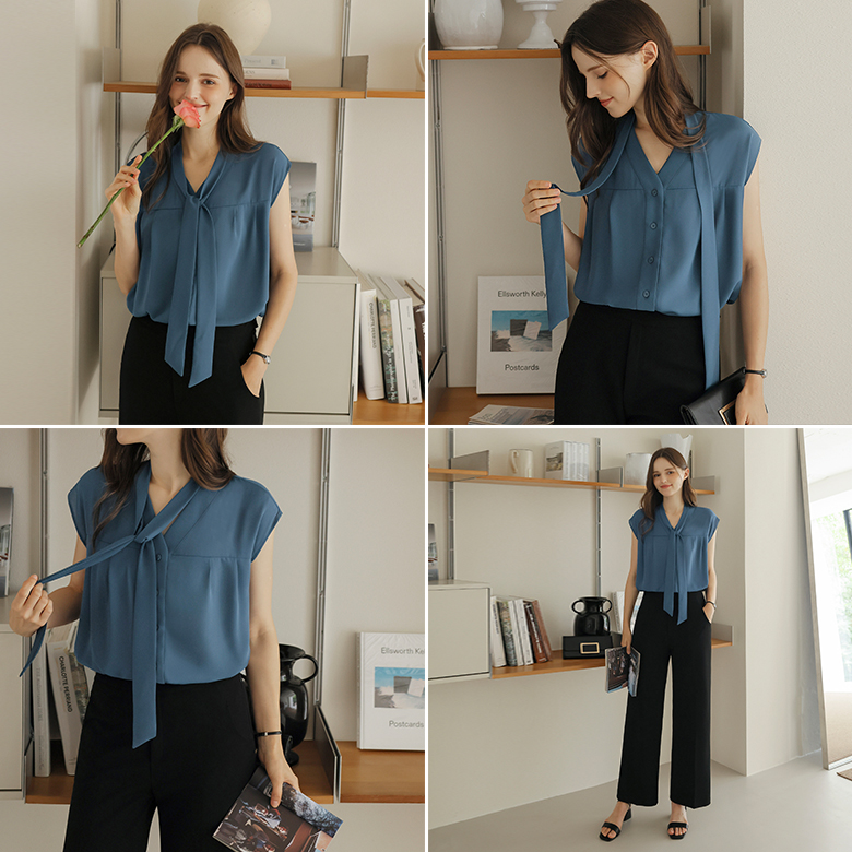 [뮤즈린] 나본 타이 핀턱 나시 블라우스