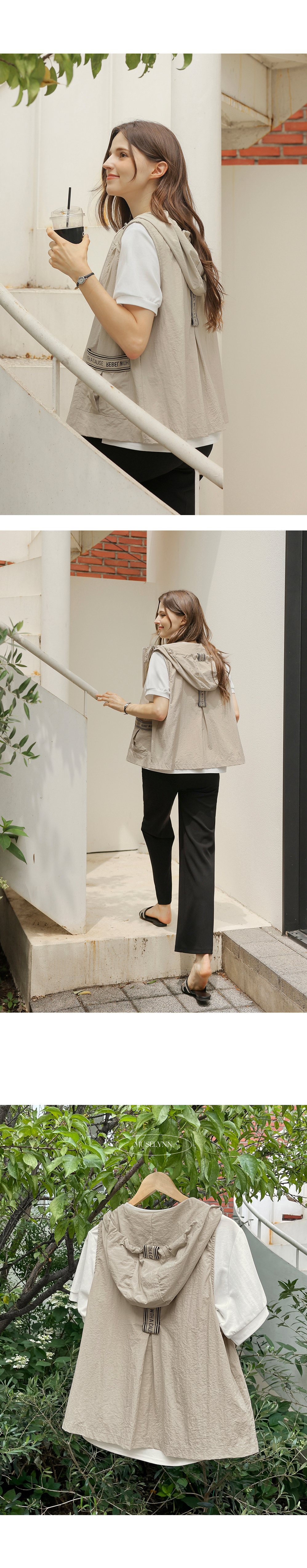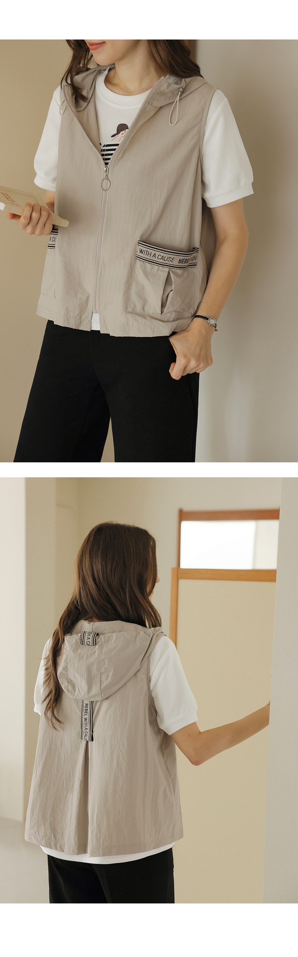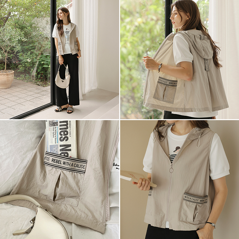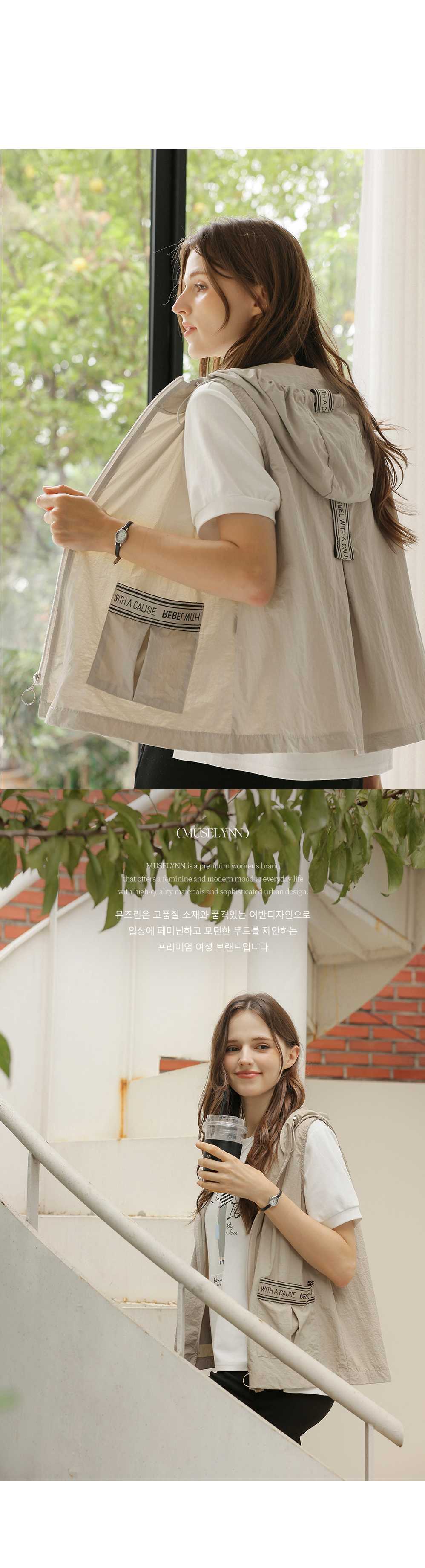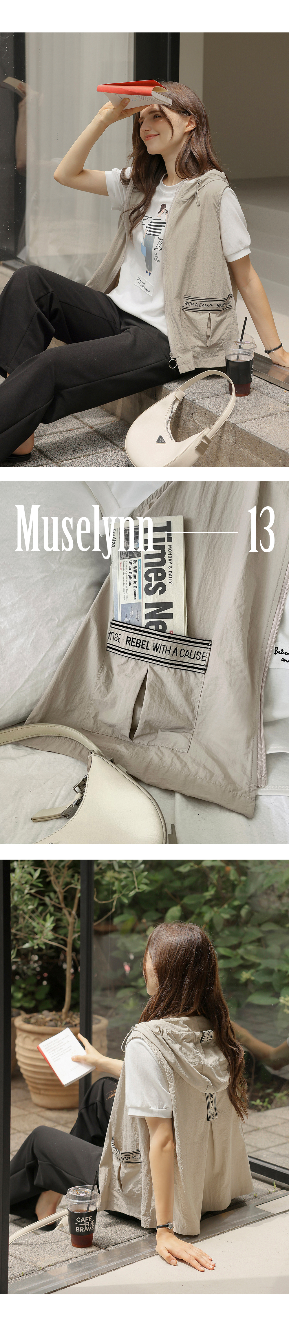 [뮤즈린] 피코 레터링 배색 후드 조끼