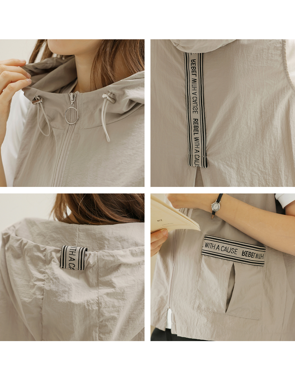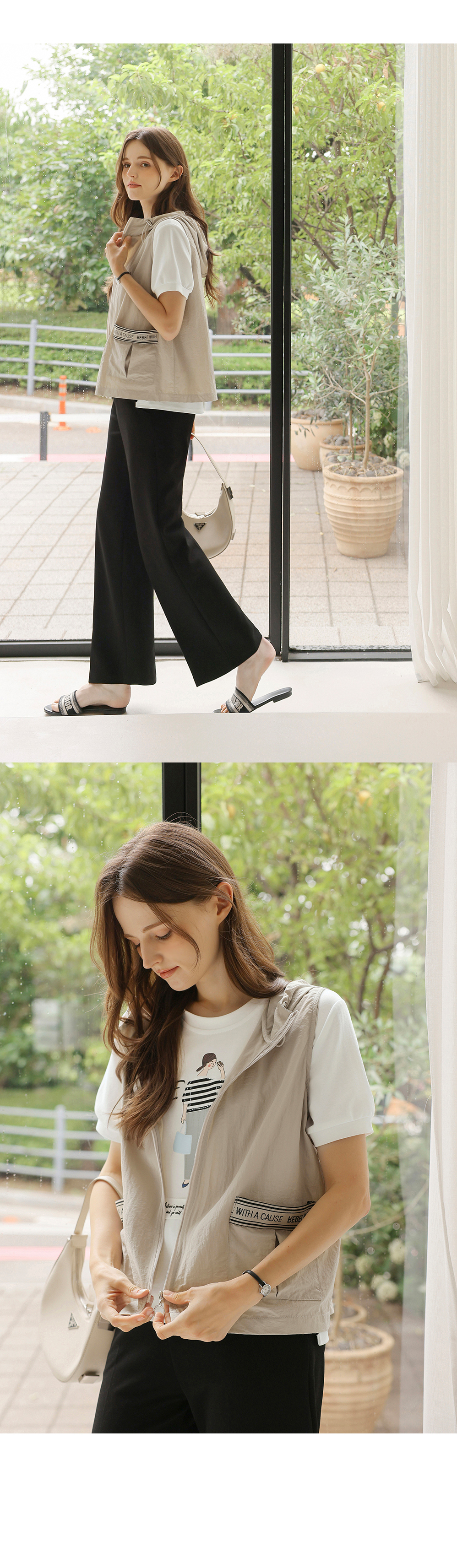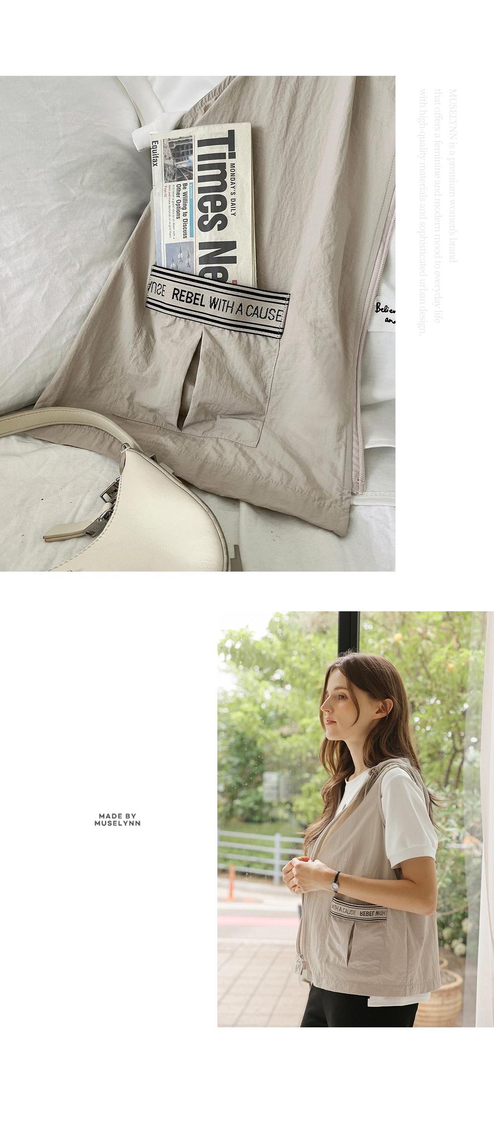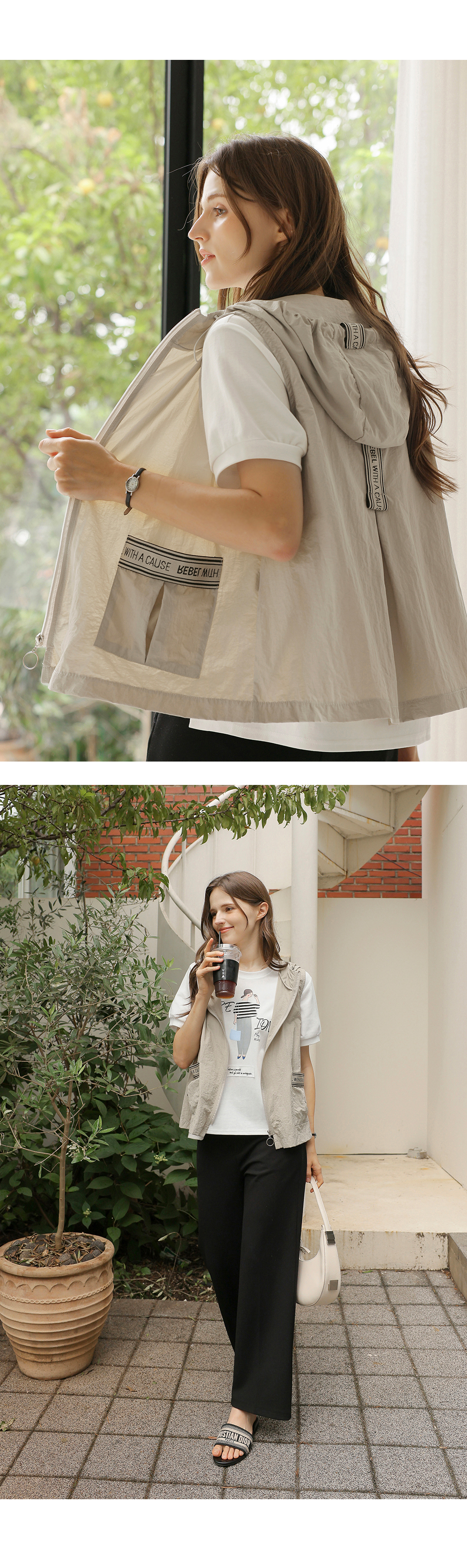 [뮤즈린] 피코 레터링 배색 후드 조끼