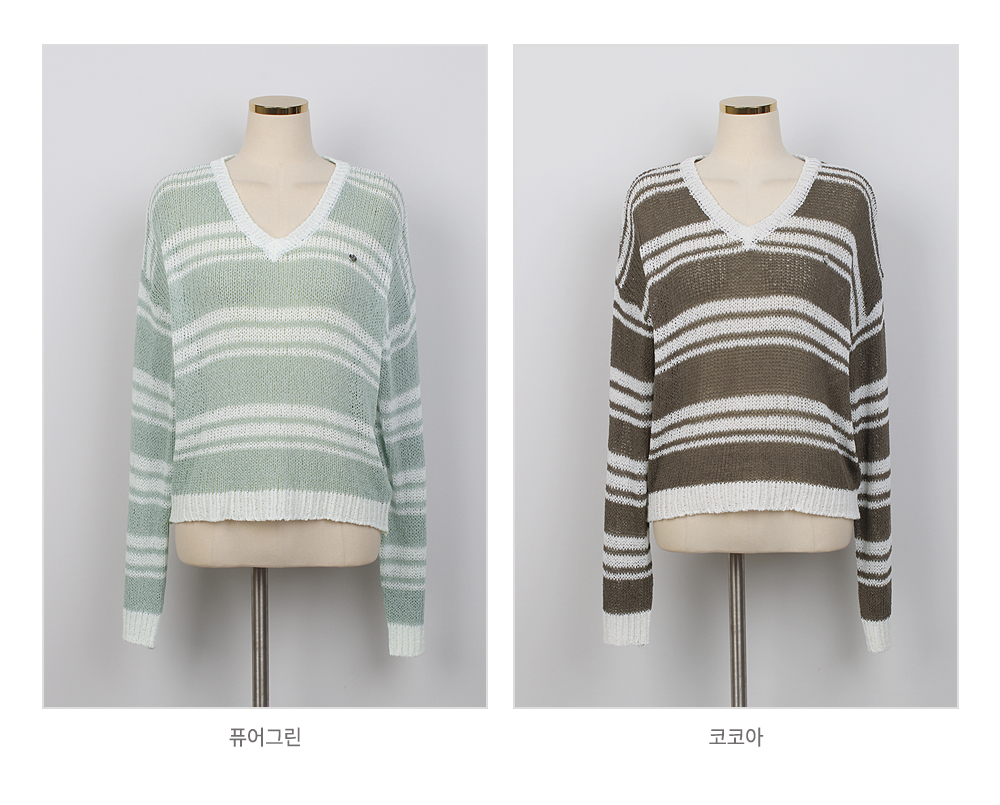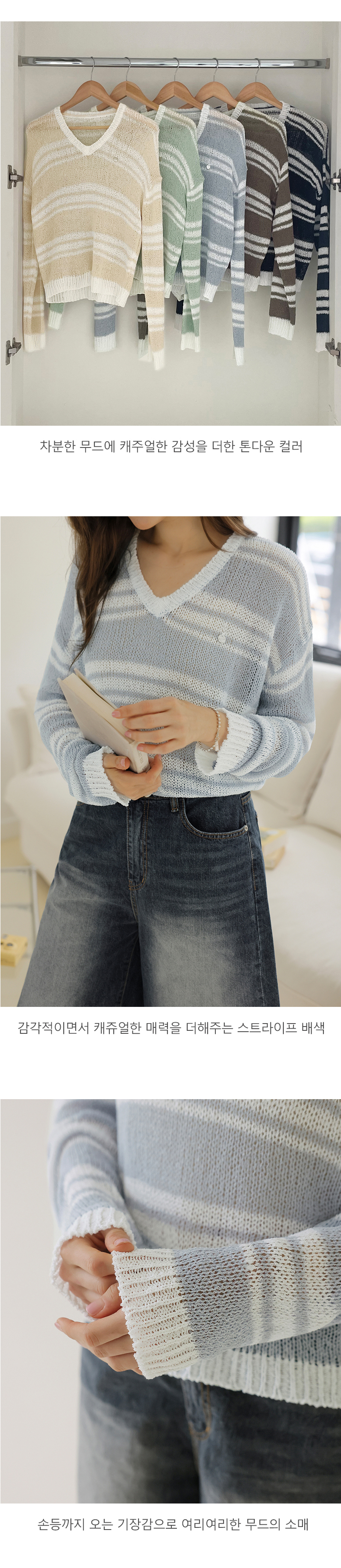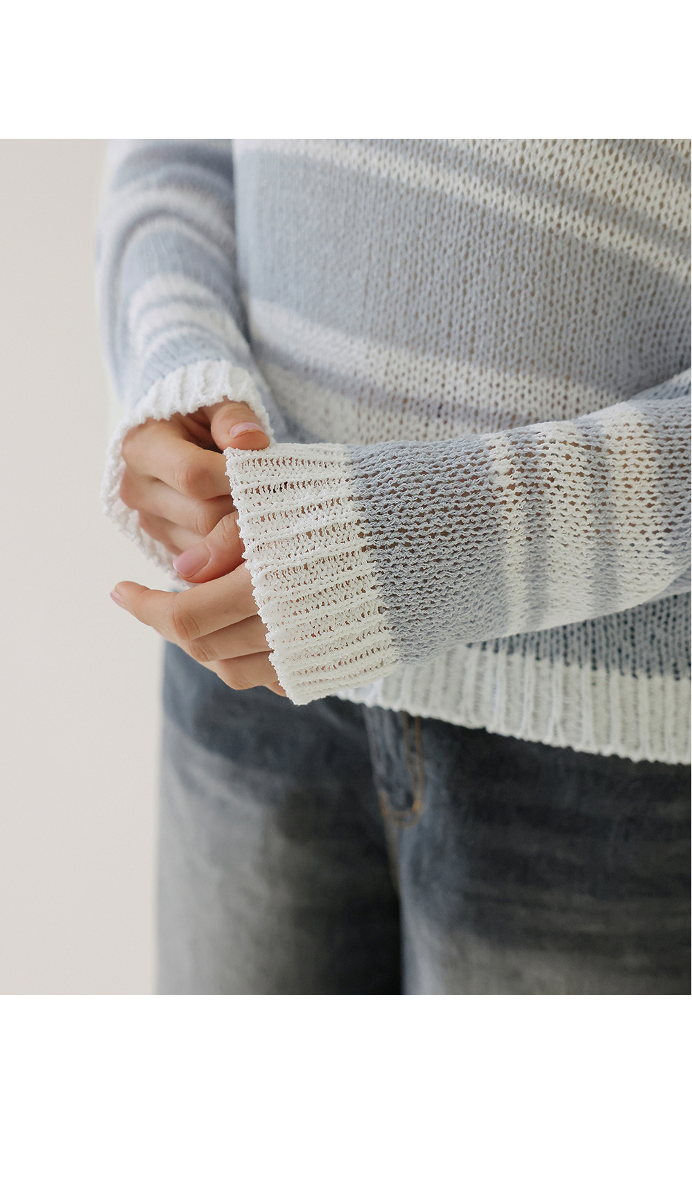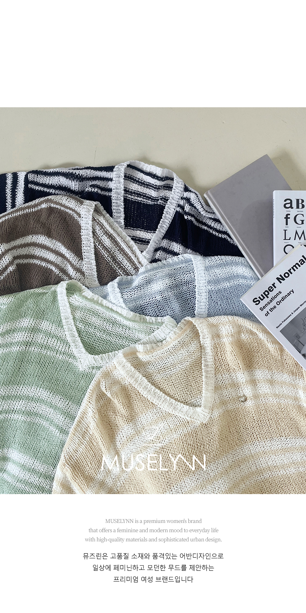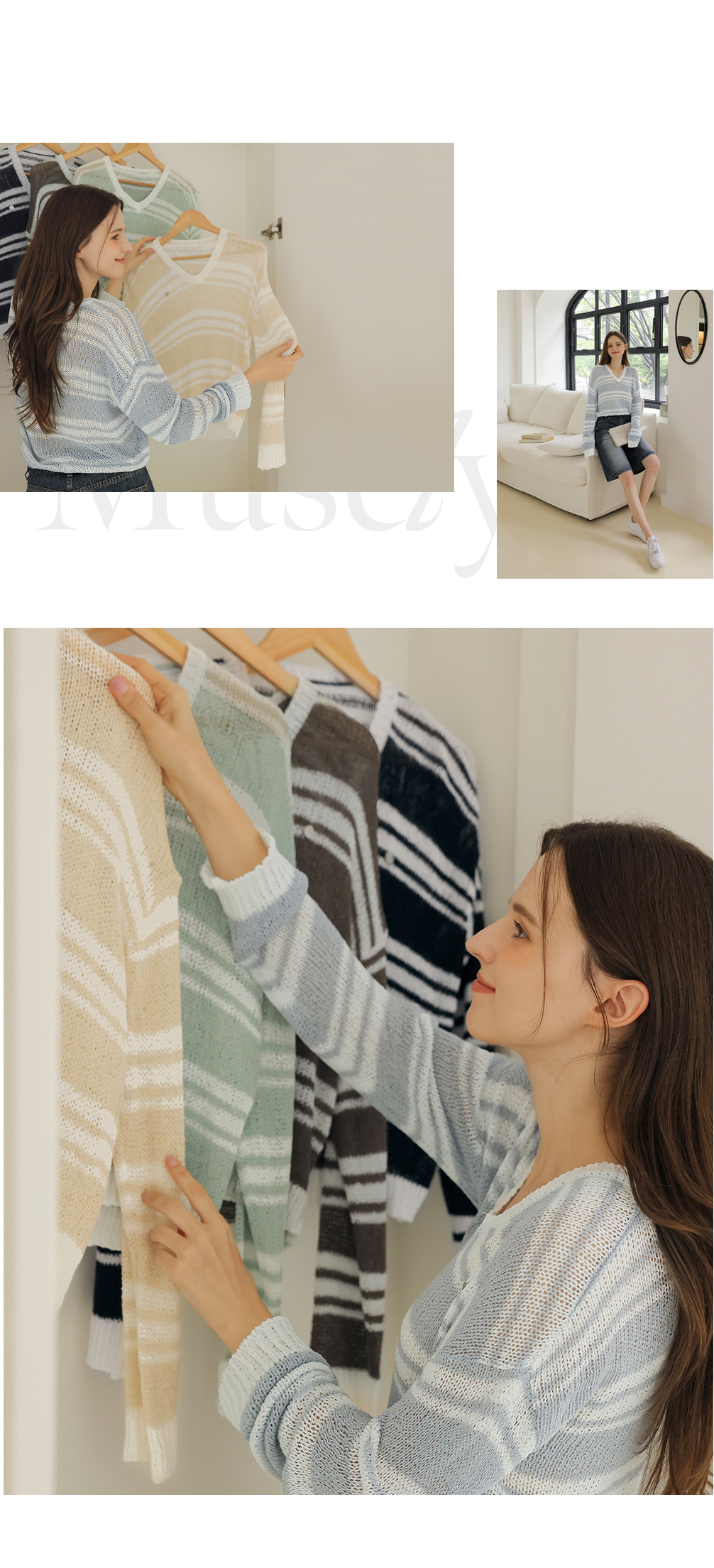 [뮤즈린] 소트 실버팁 스트라이프 부클 니트