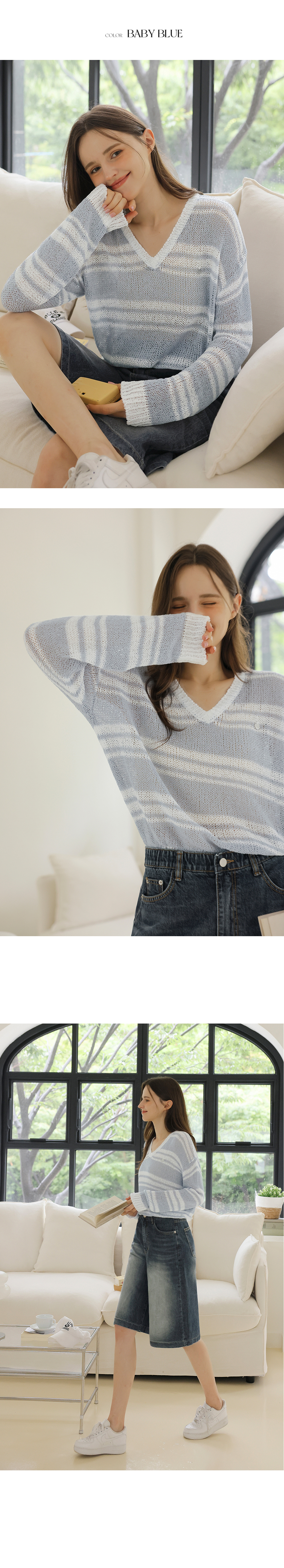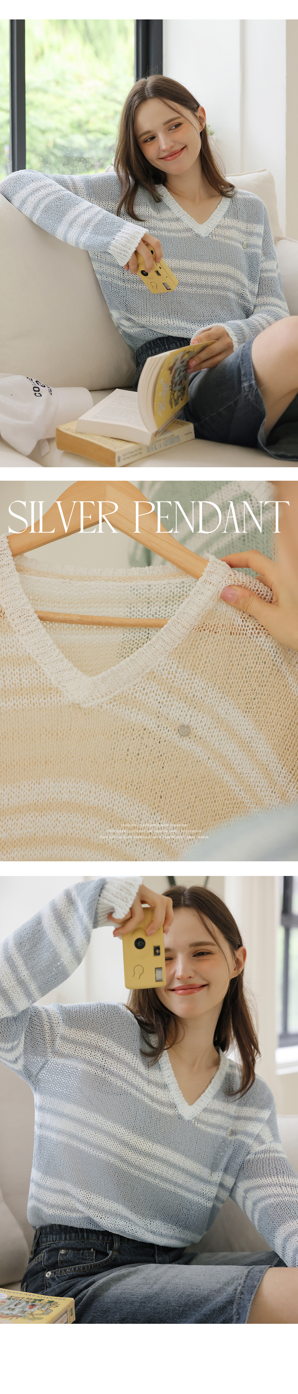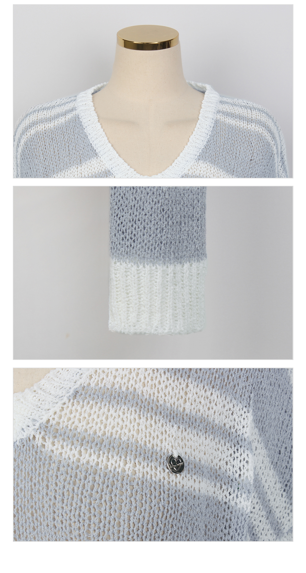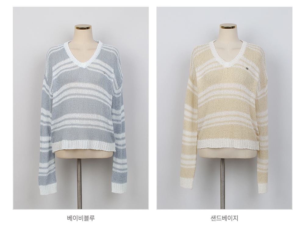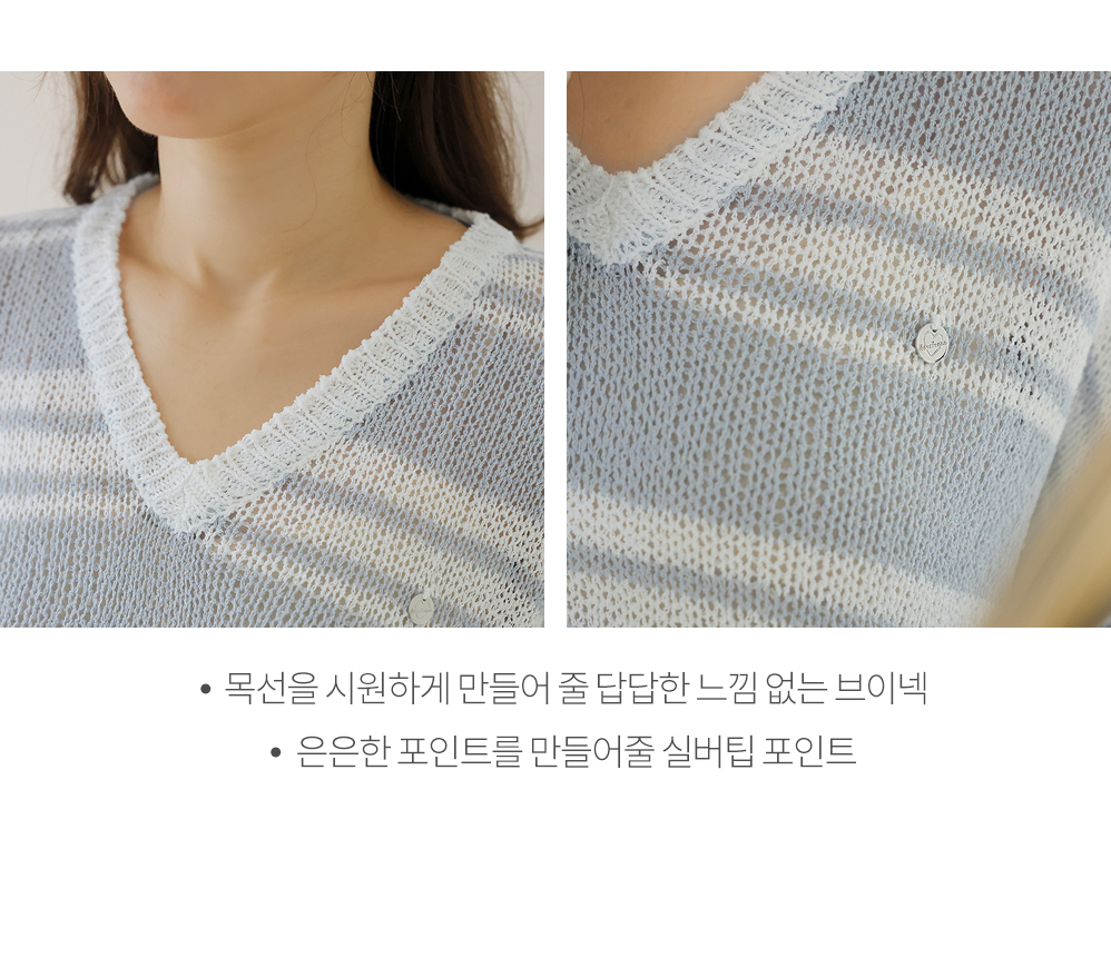 [뮤즈린] 소트 실버팁 스트라이프 부클 니트