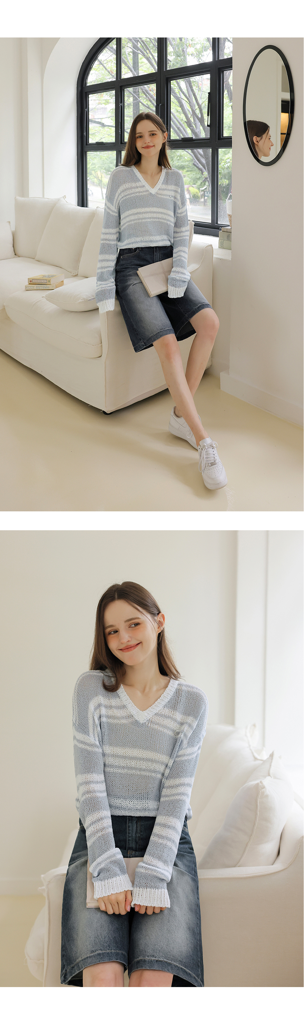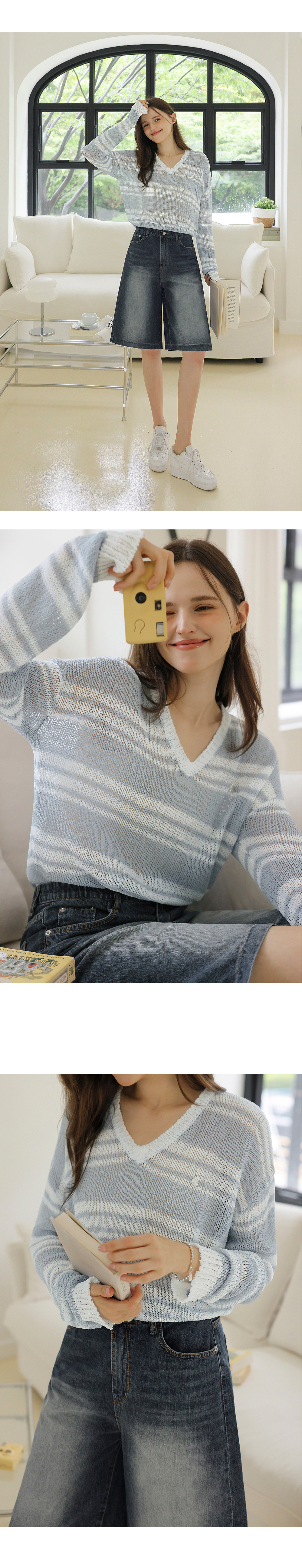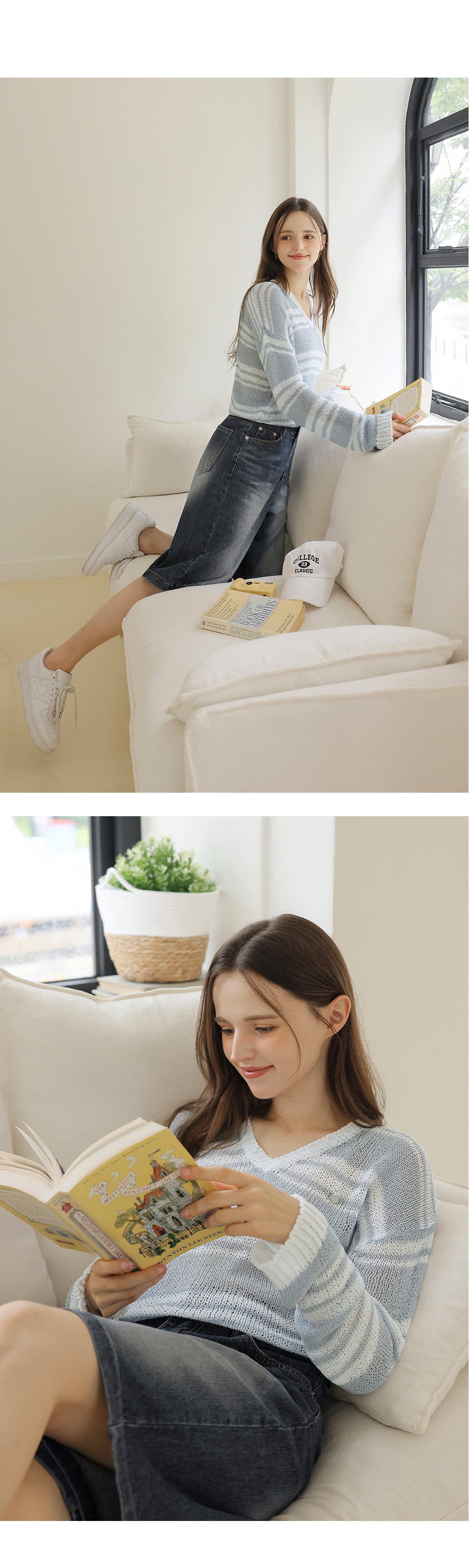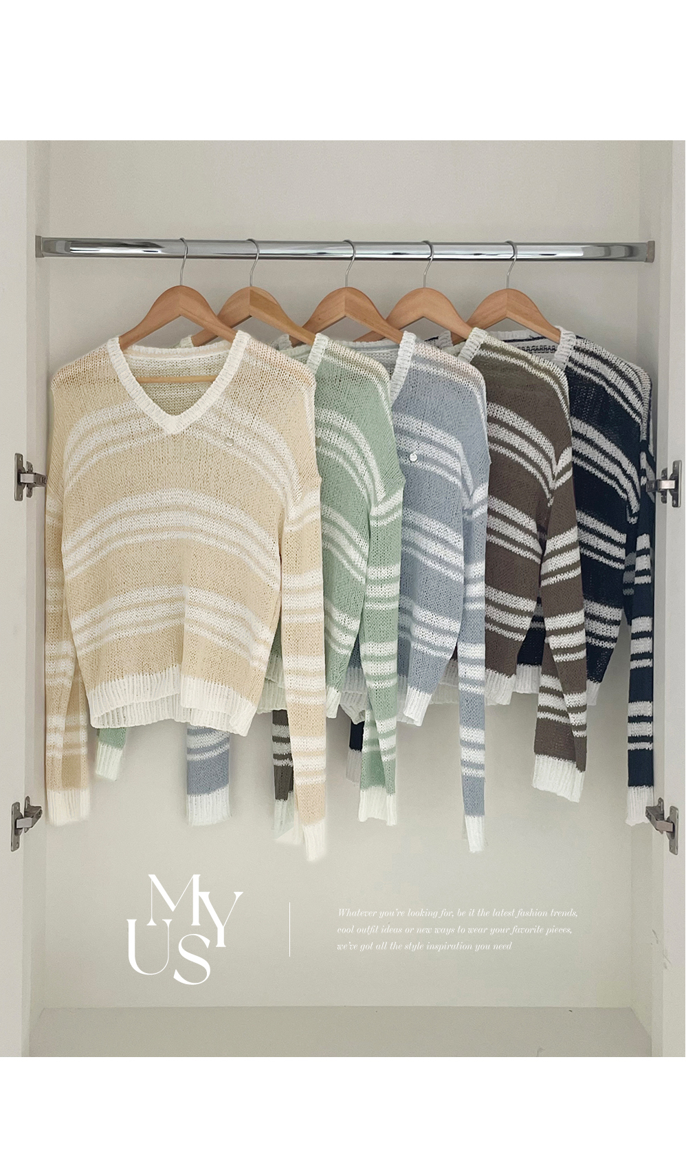 [뮤즈린] 소트 실버팁 스트라이프 부클 니트