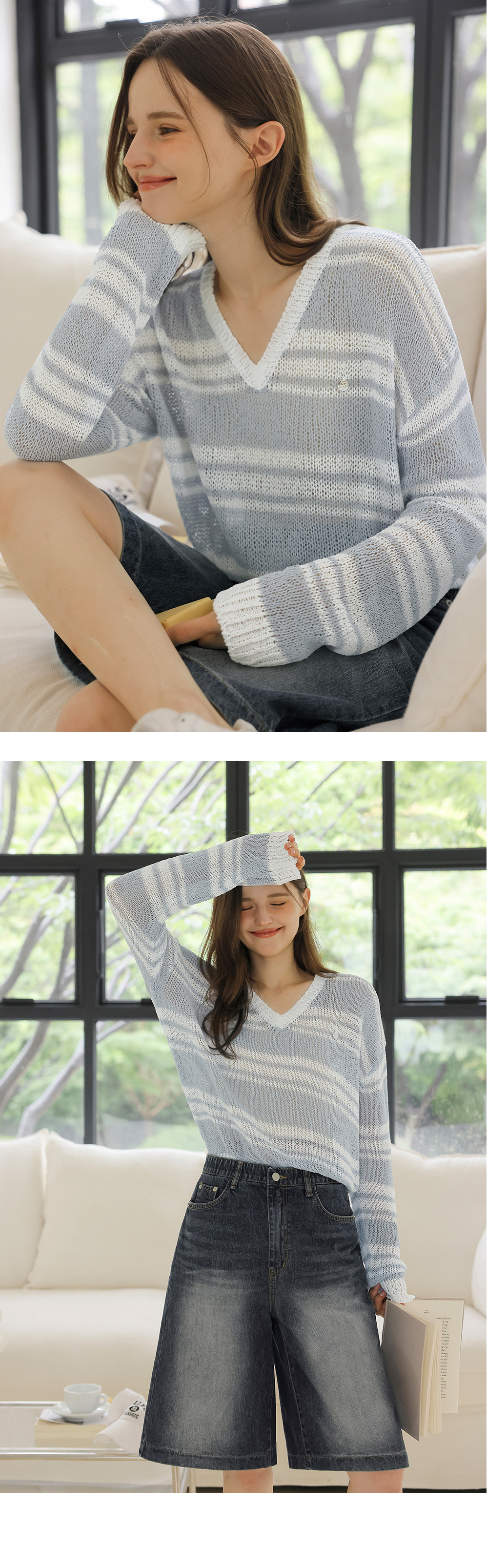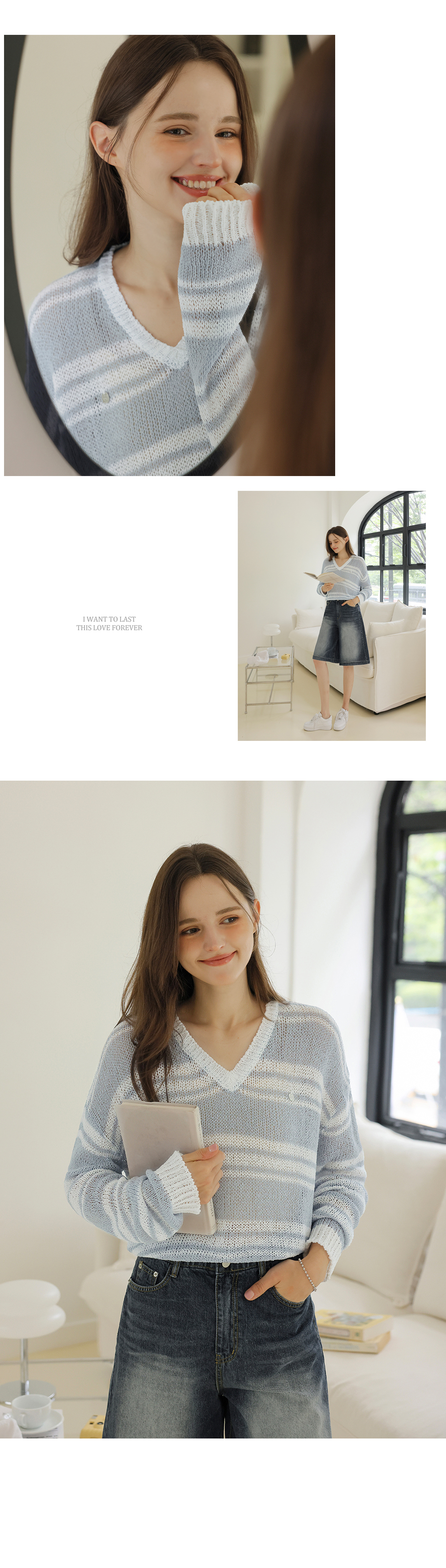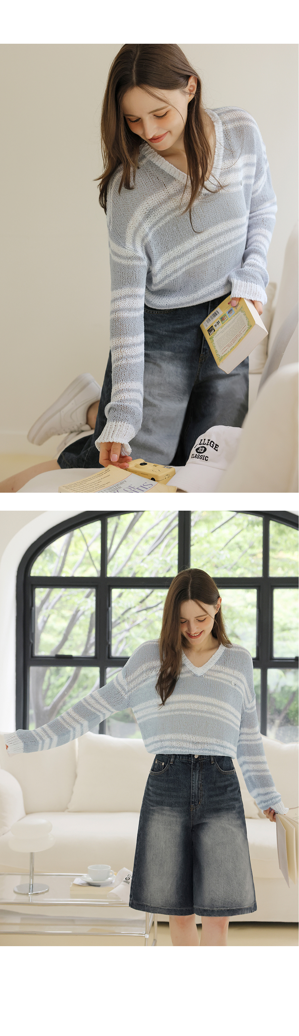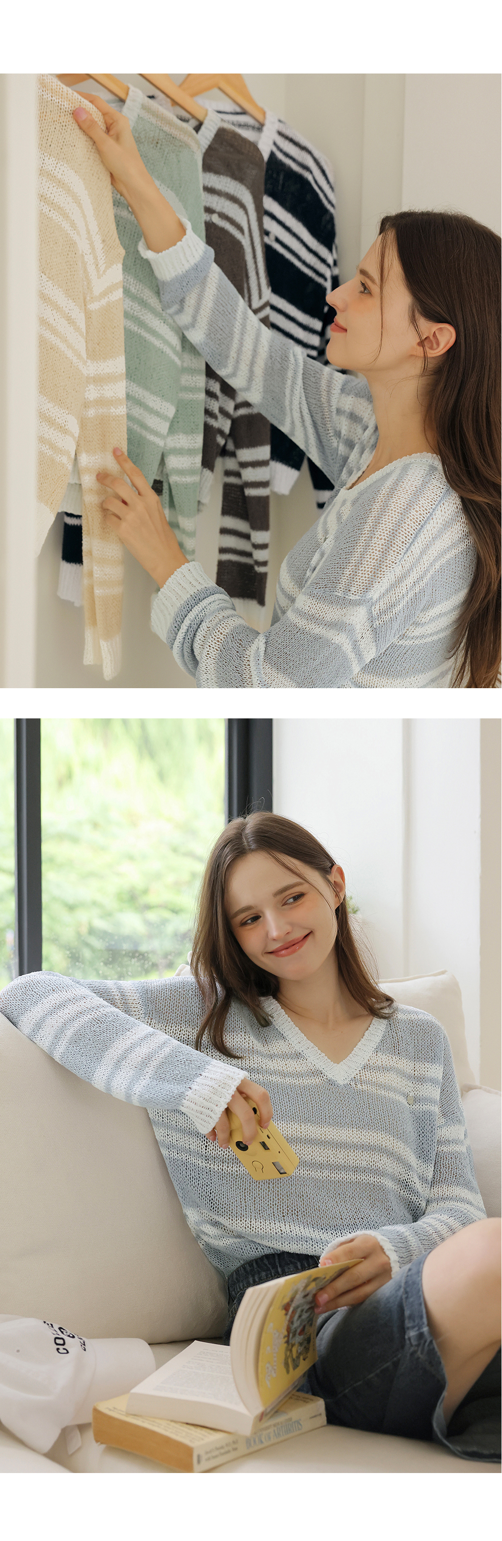 [뮤즈린] 소트 실버팁 스트라이프 부클 니트
