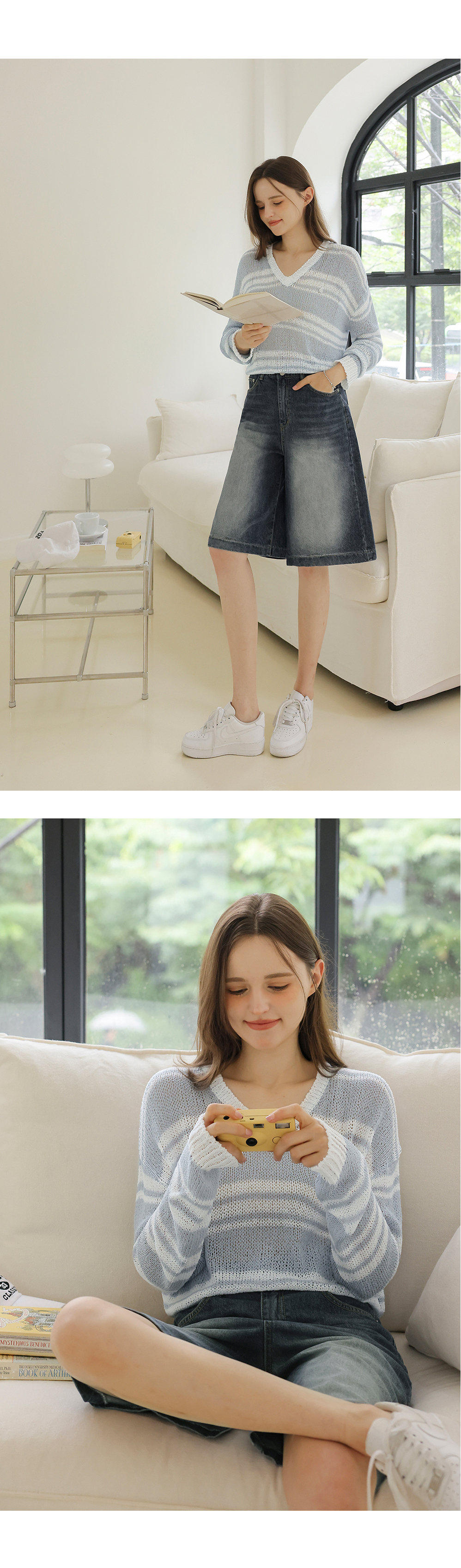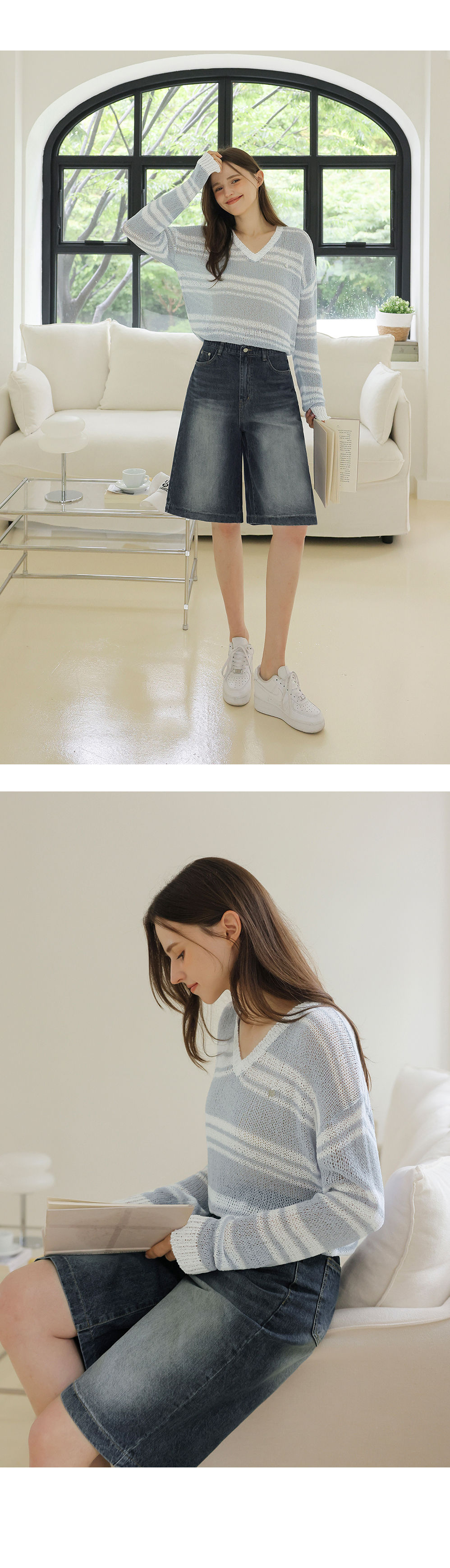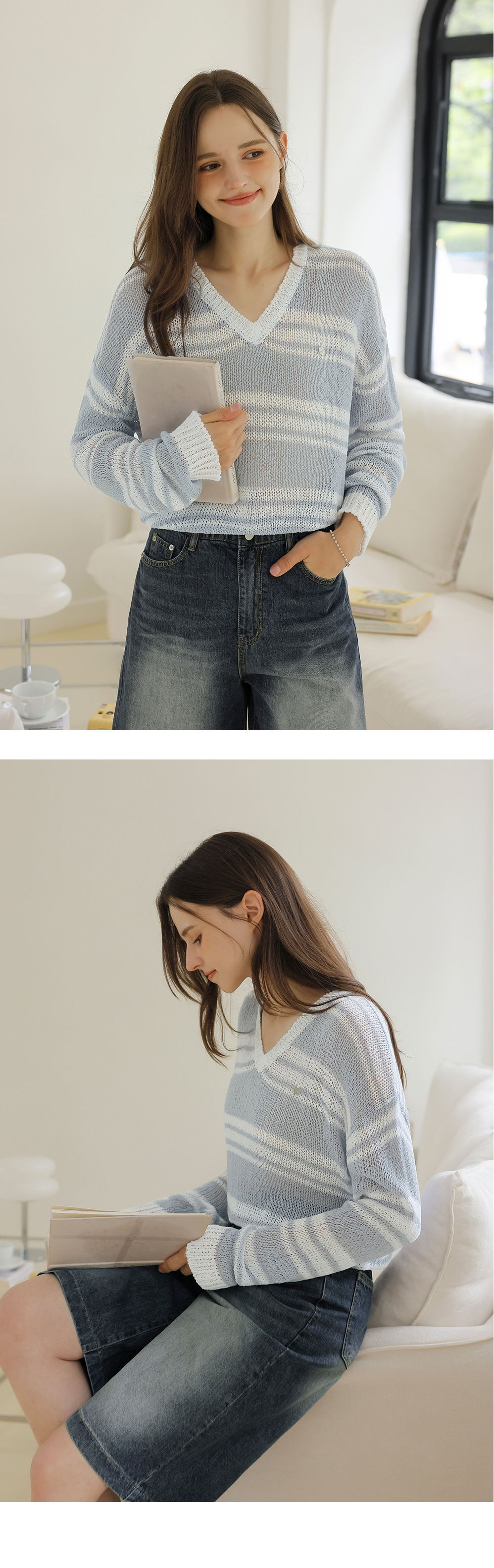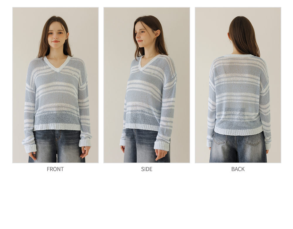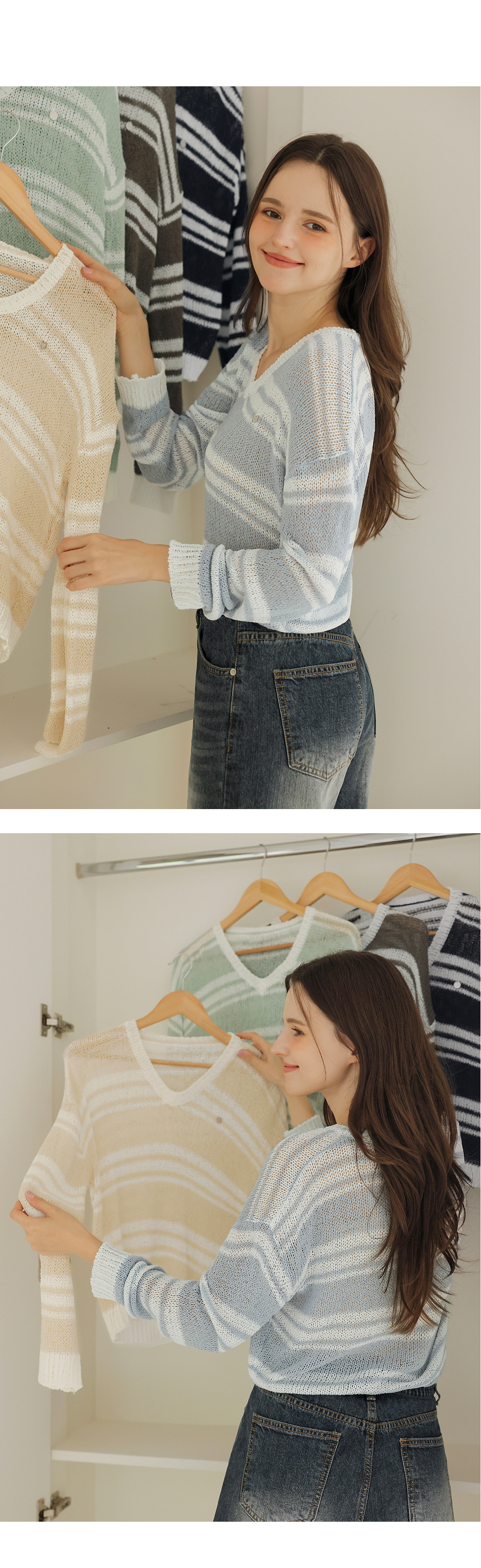 [뮤즈린] 소트 실버팁 스트라이프 부클 니트