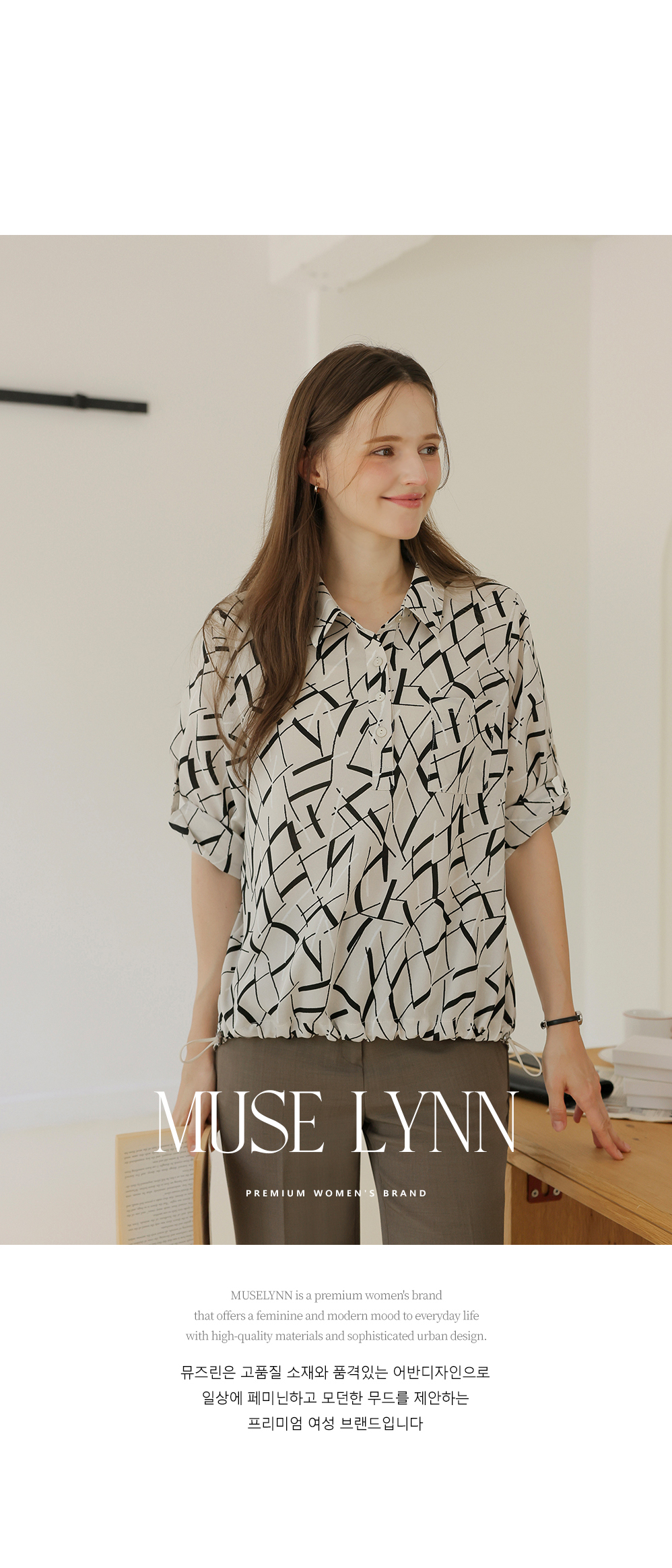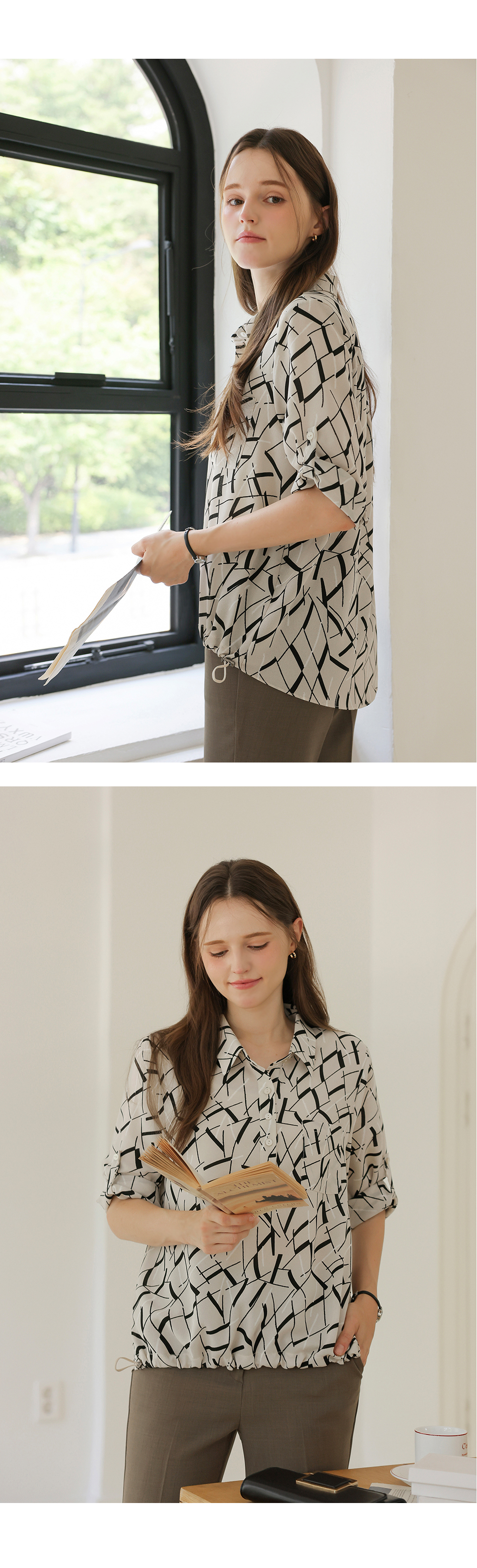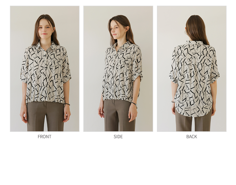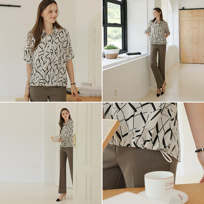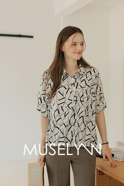 [뮤즈린] [롤업] 주딘 패턴 스트링 쉬폰 블라우스