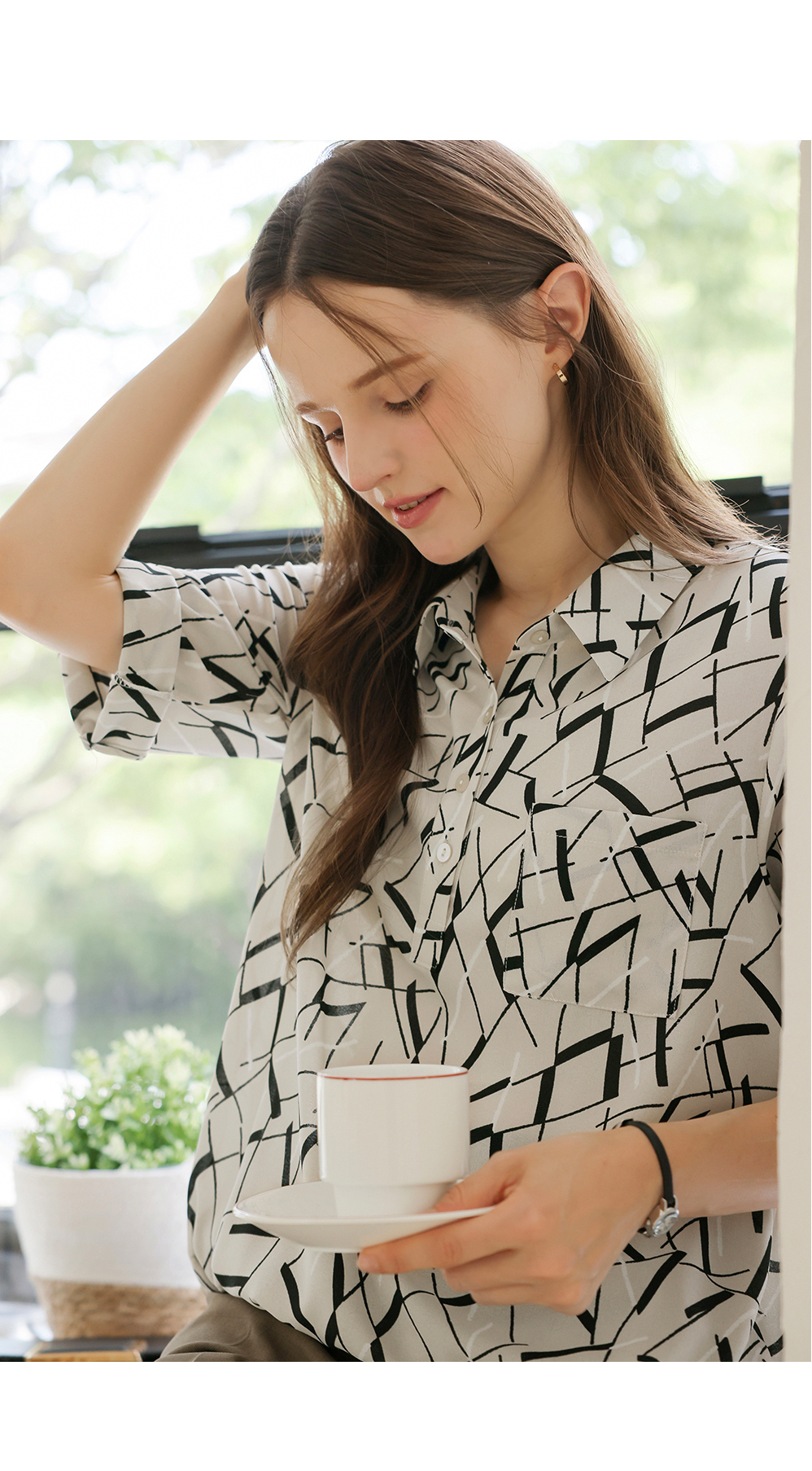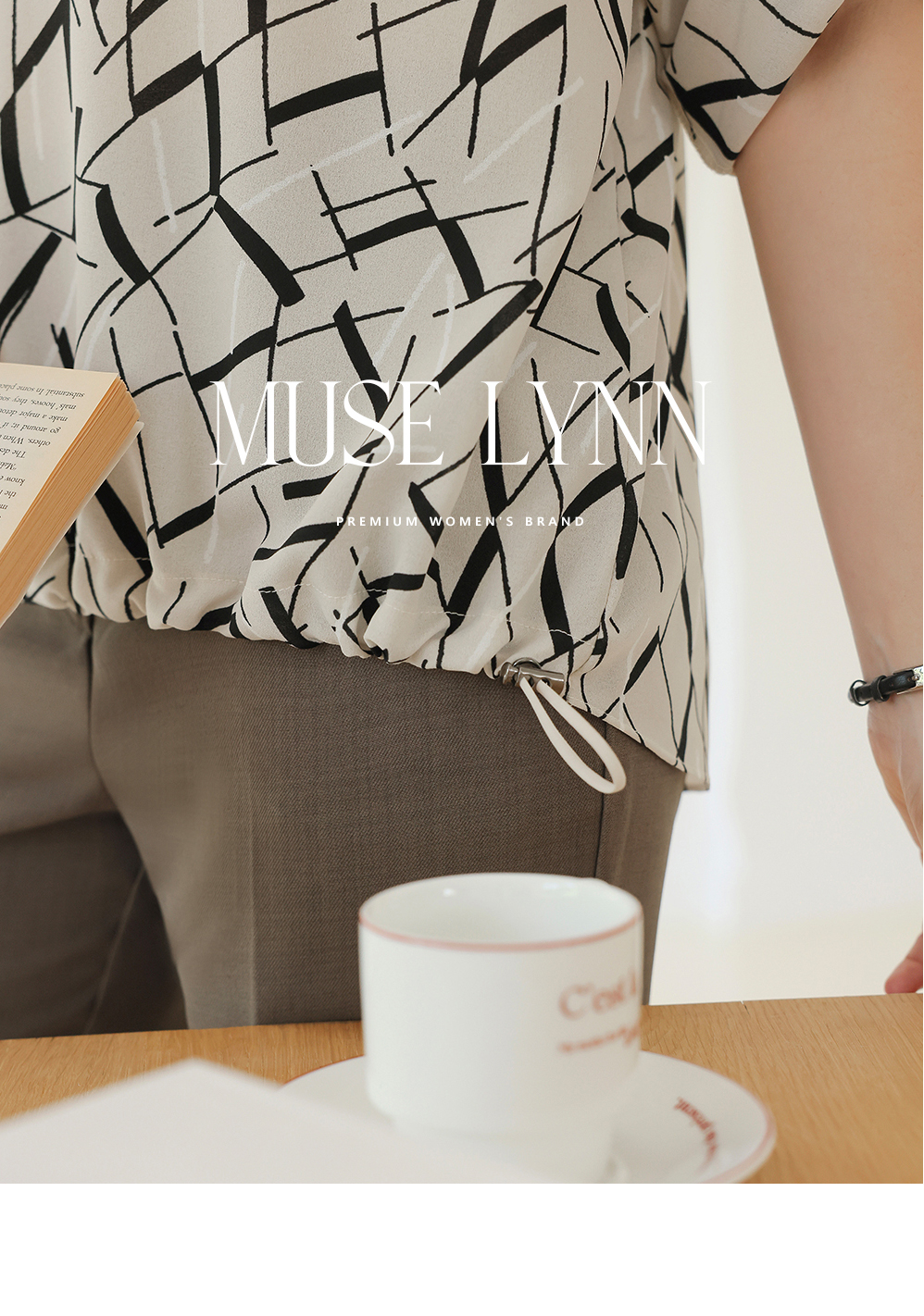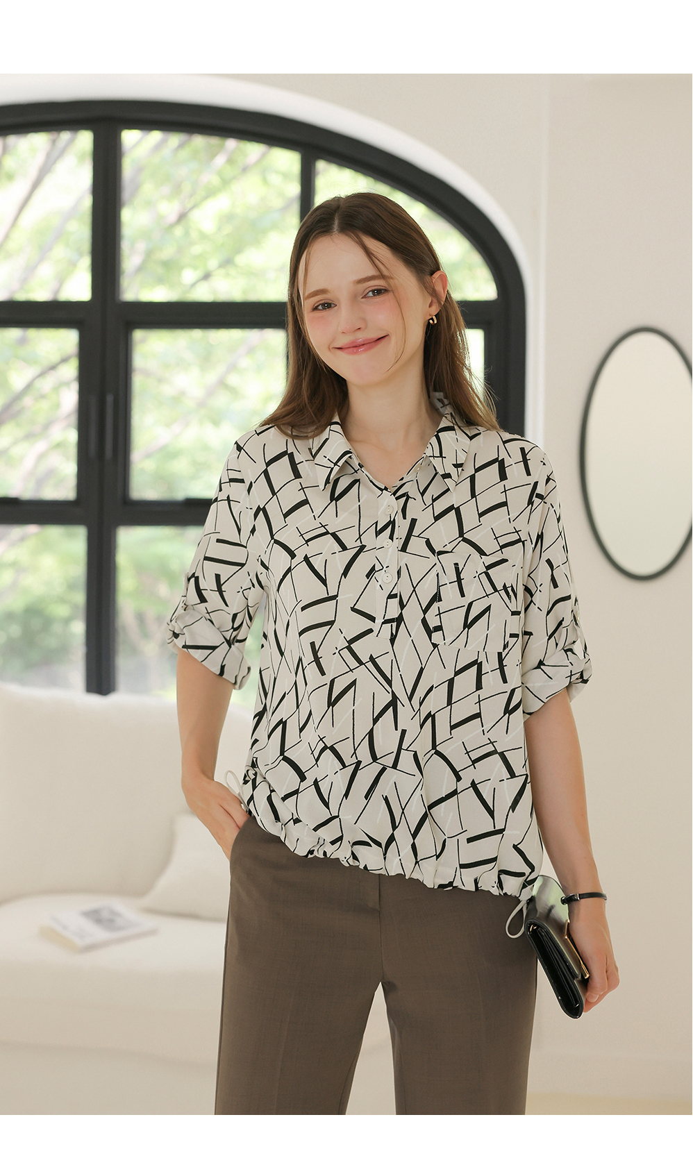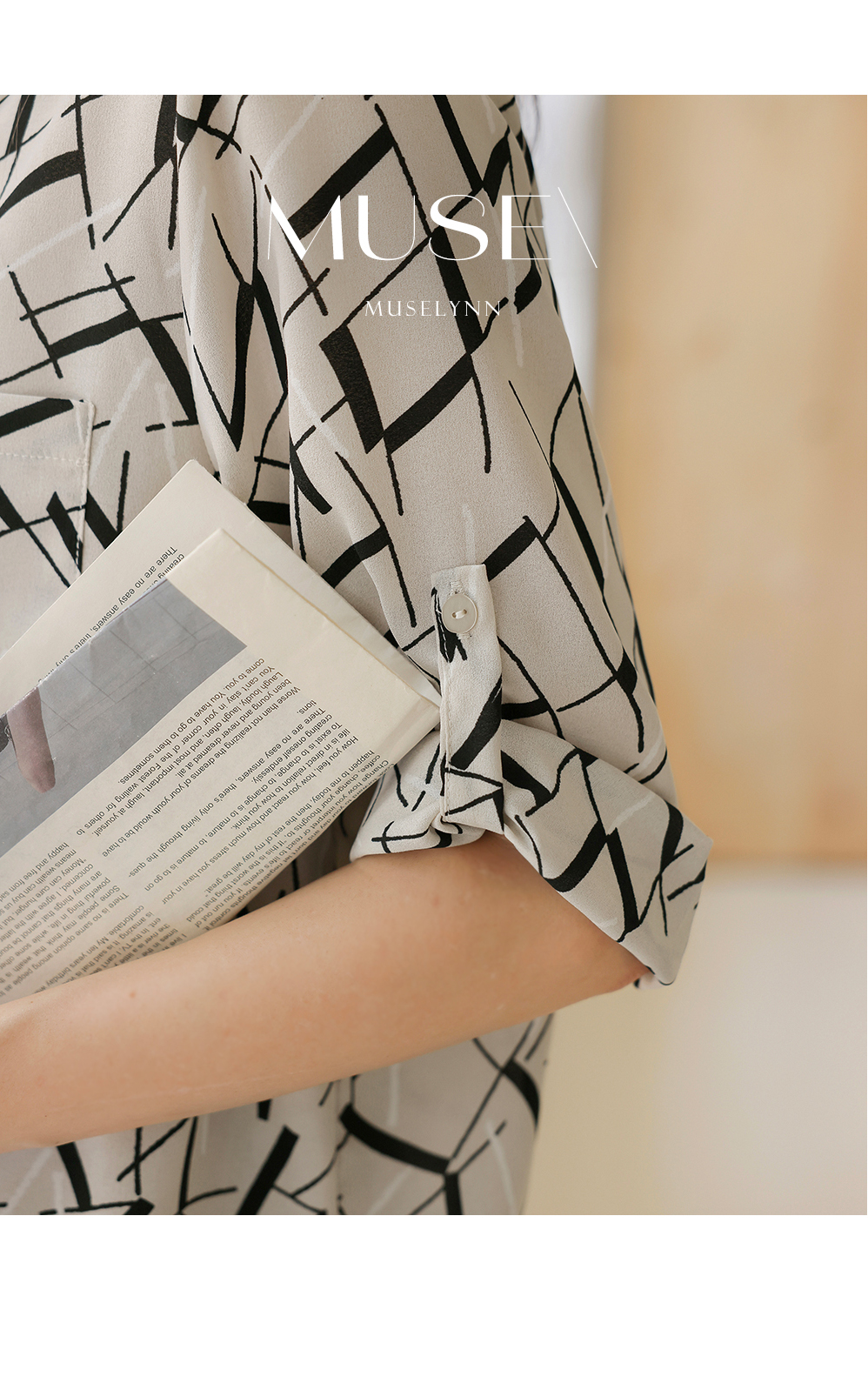[뮤즈린] [롤업] 주딘 패턴 스트링 쉬폰 블라우스