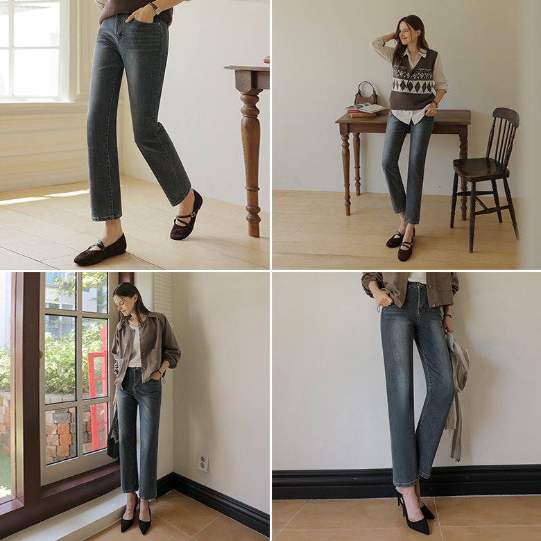 [뮤즈린] 바나 일자핏 데님팬츠 [밴딩]