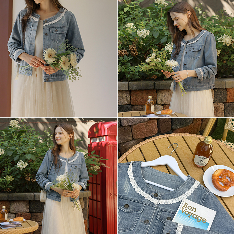 [뮤즈린] 디나 노카라 레이스 데님 자켓