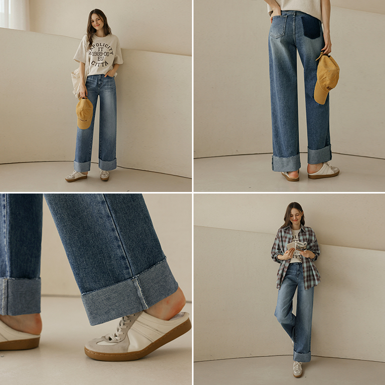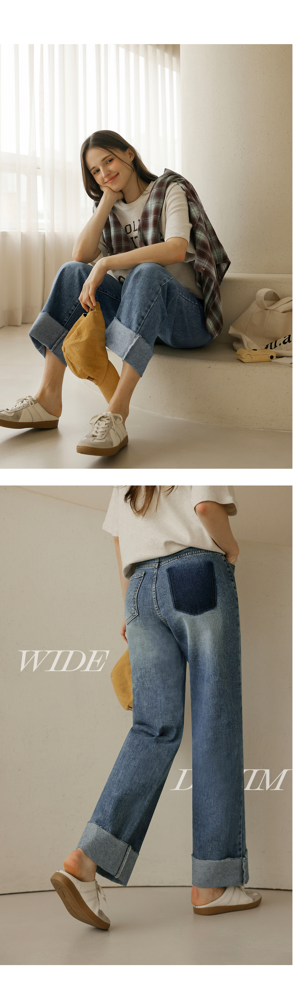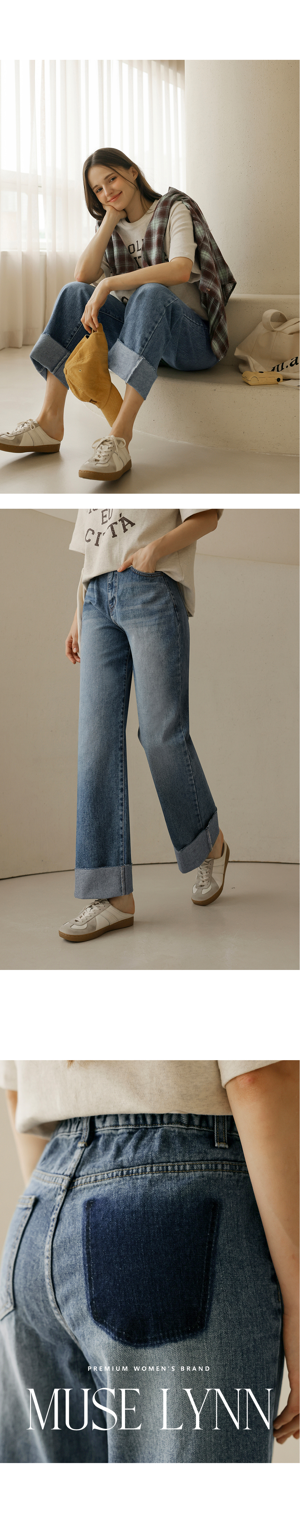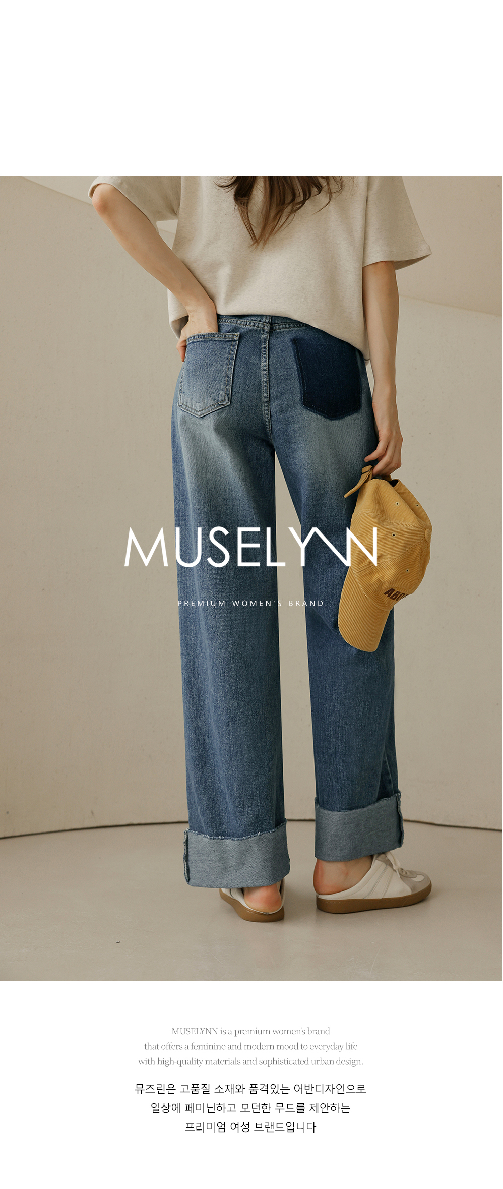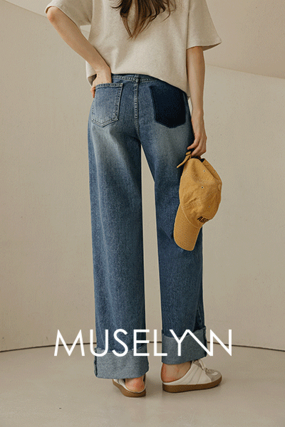 [뮤즈린] 네즈 롤업 와이드 데님팬츠 [밴딩]