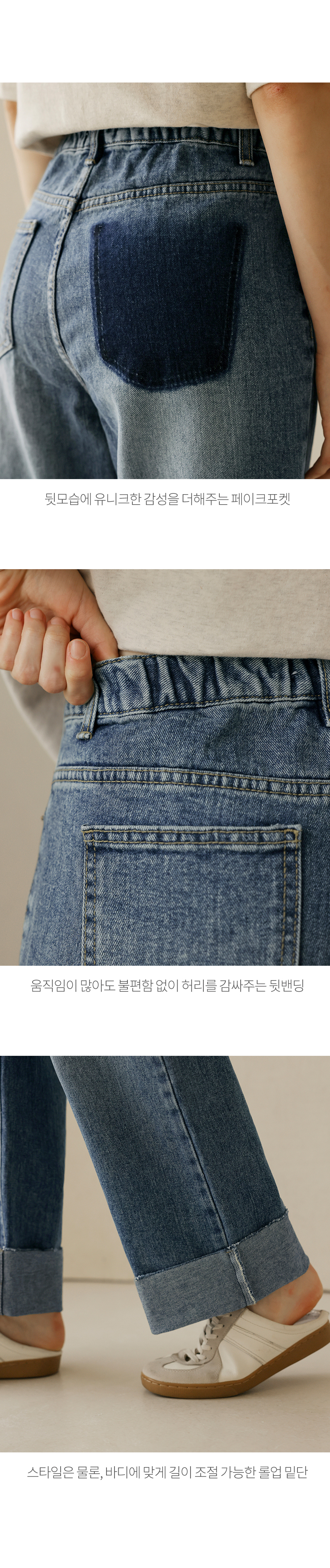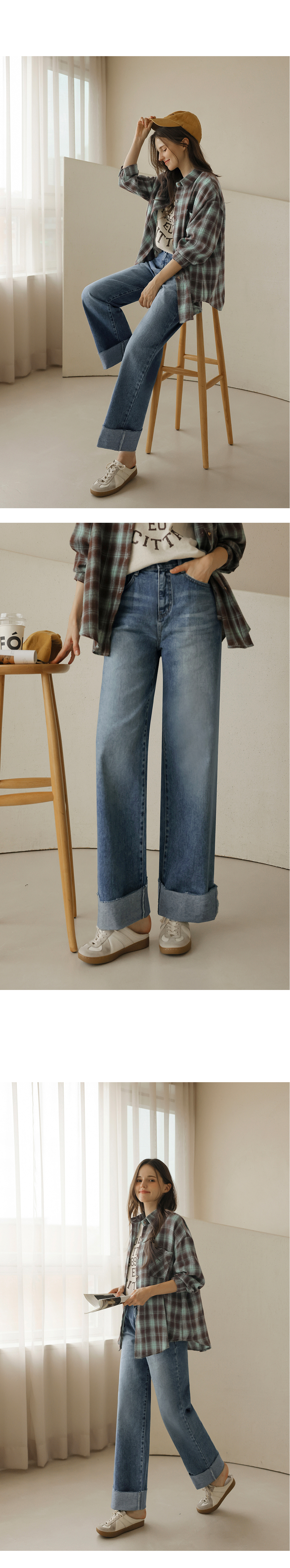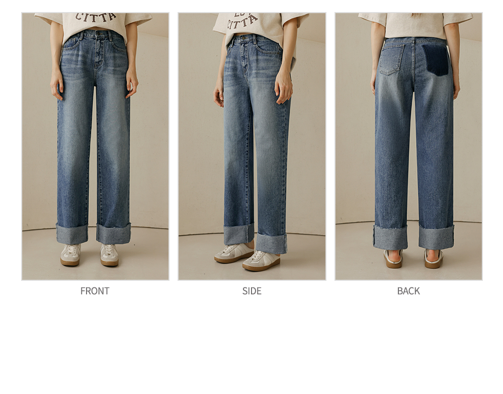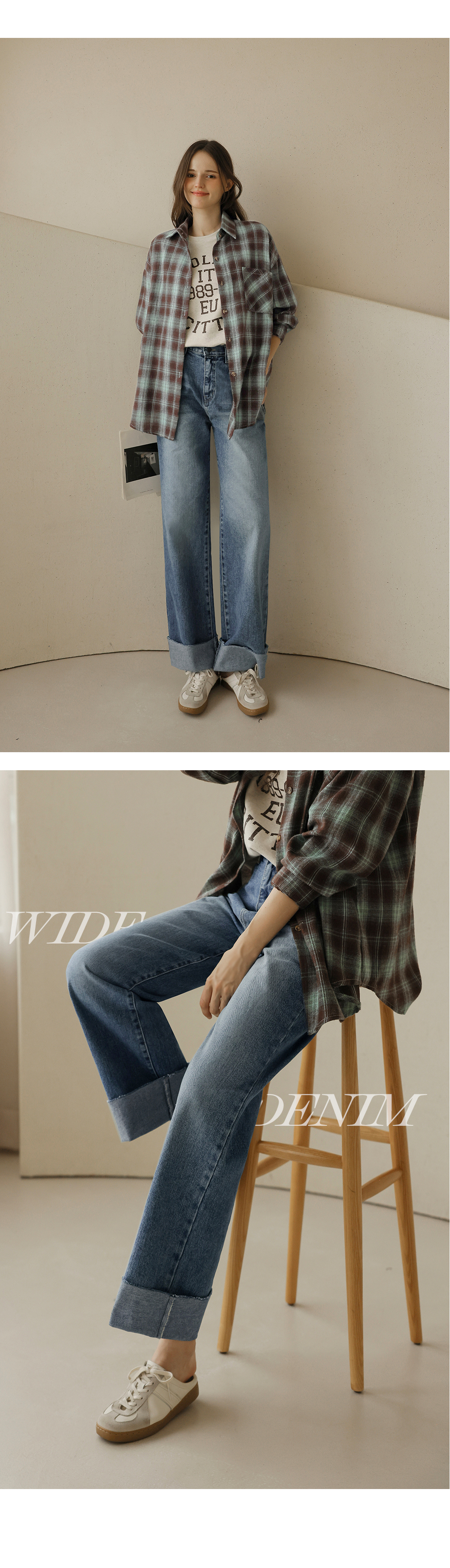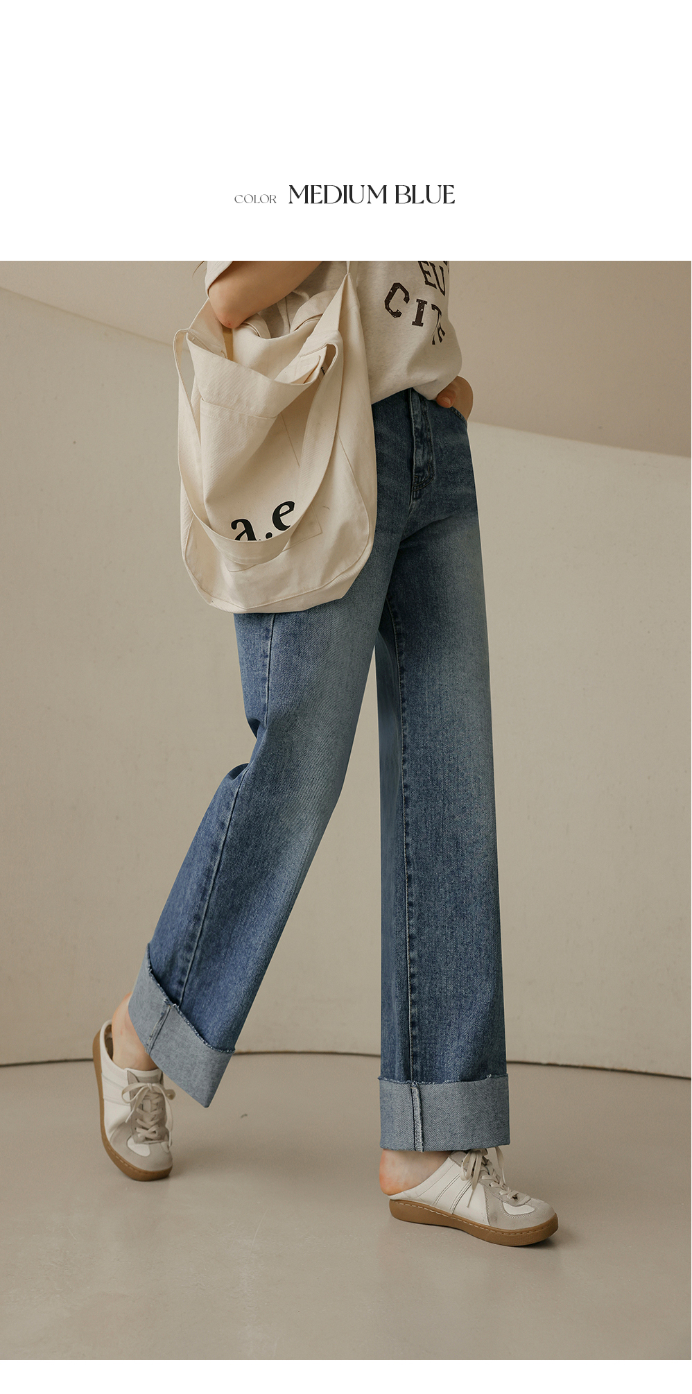 [뮤즈린] 네즈 롤업 와이드 데님팬츠 [밴딩]