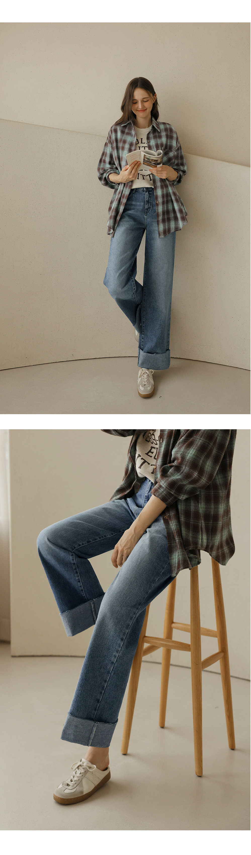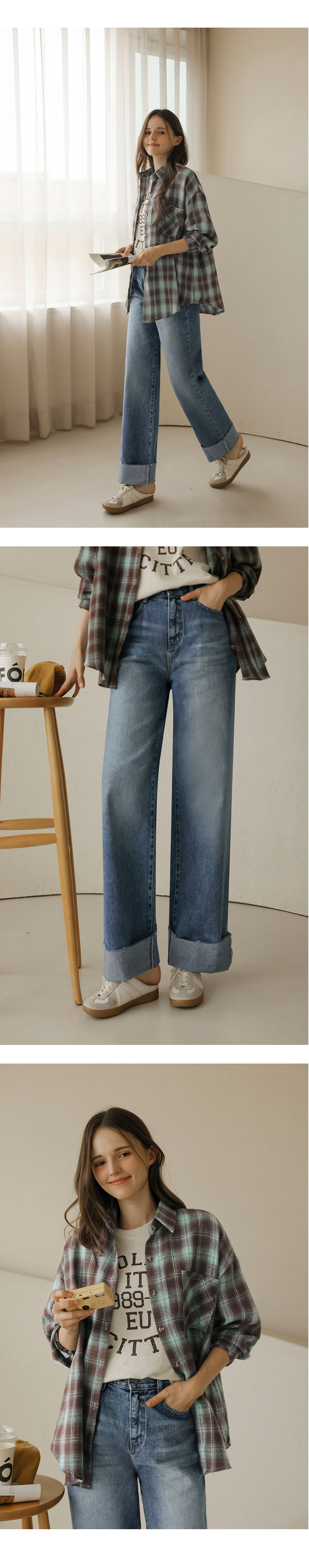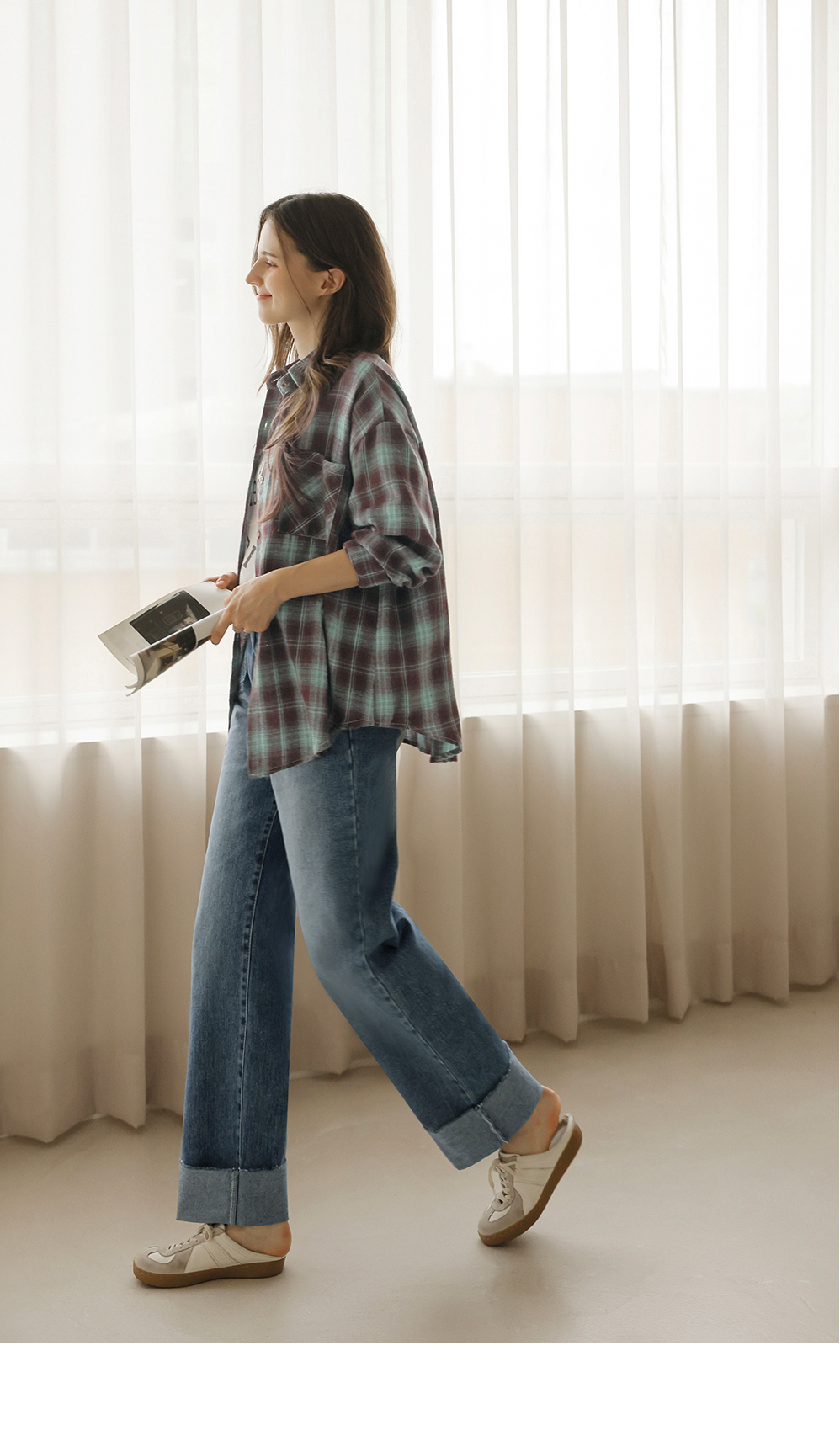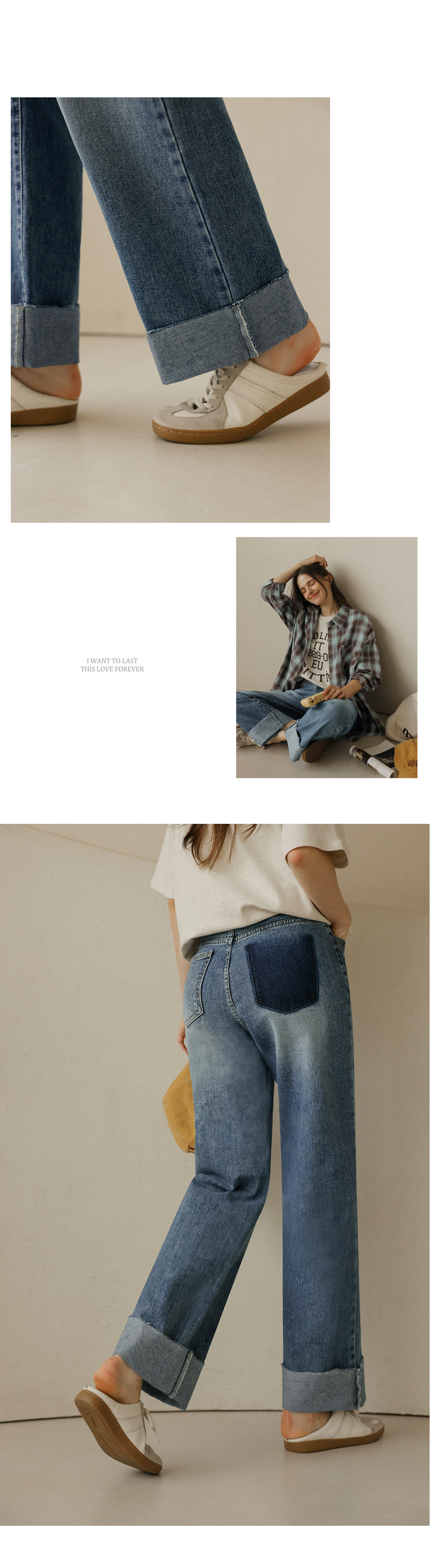 [뮤즈린] 네즈 롤업 와이드 데님팬츠 [밴딩]