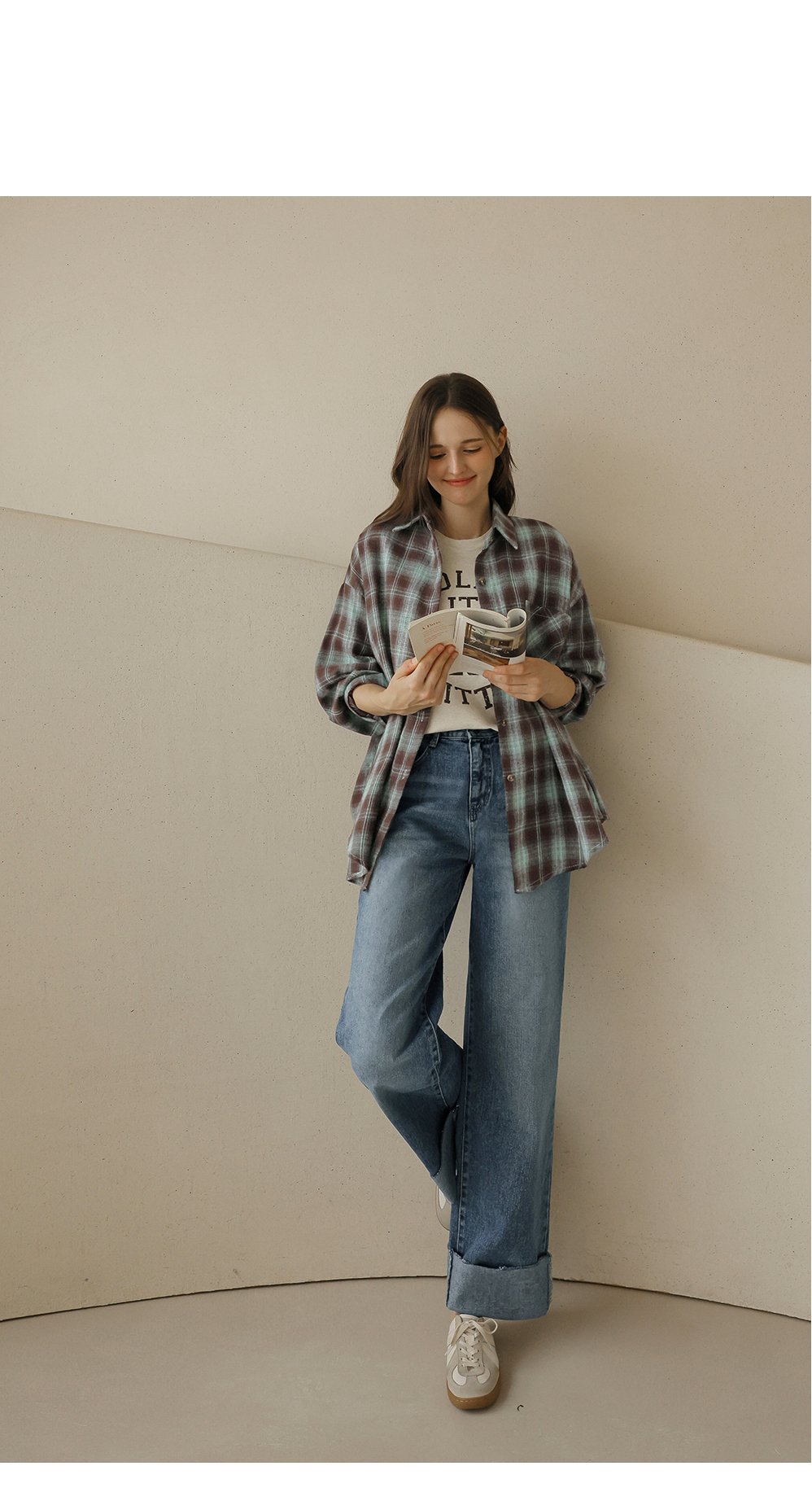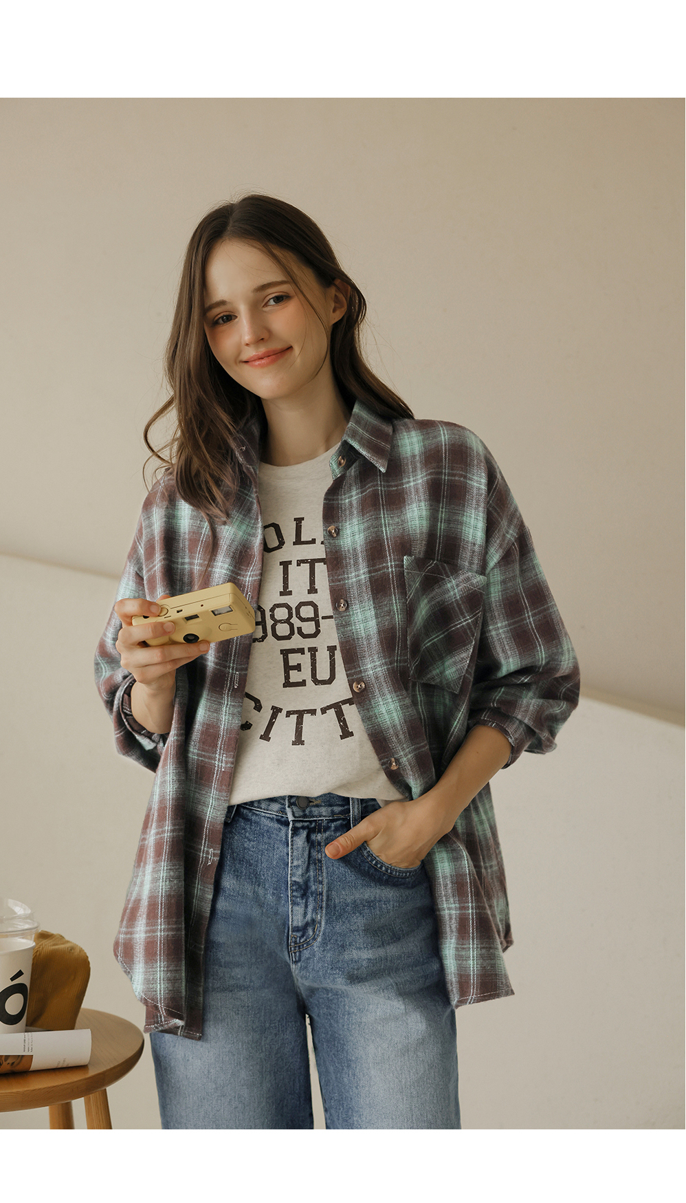 [뮤즈린] 네즈 레터링 자수 체크 셔츠