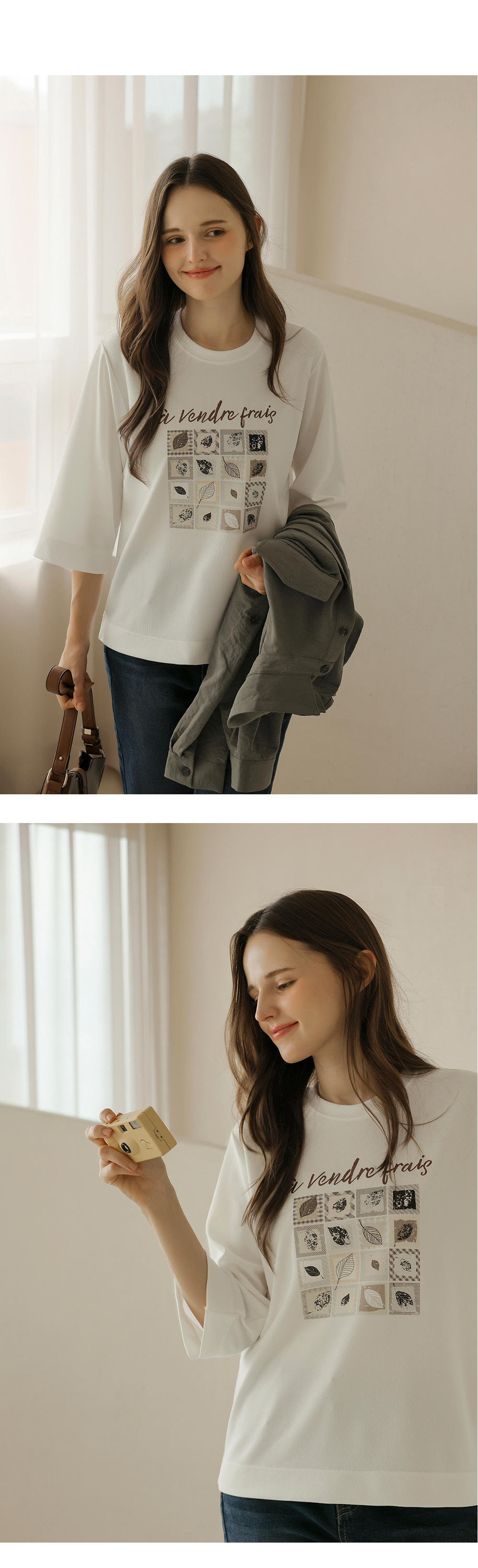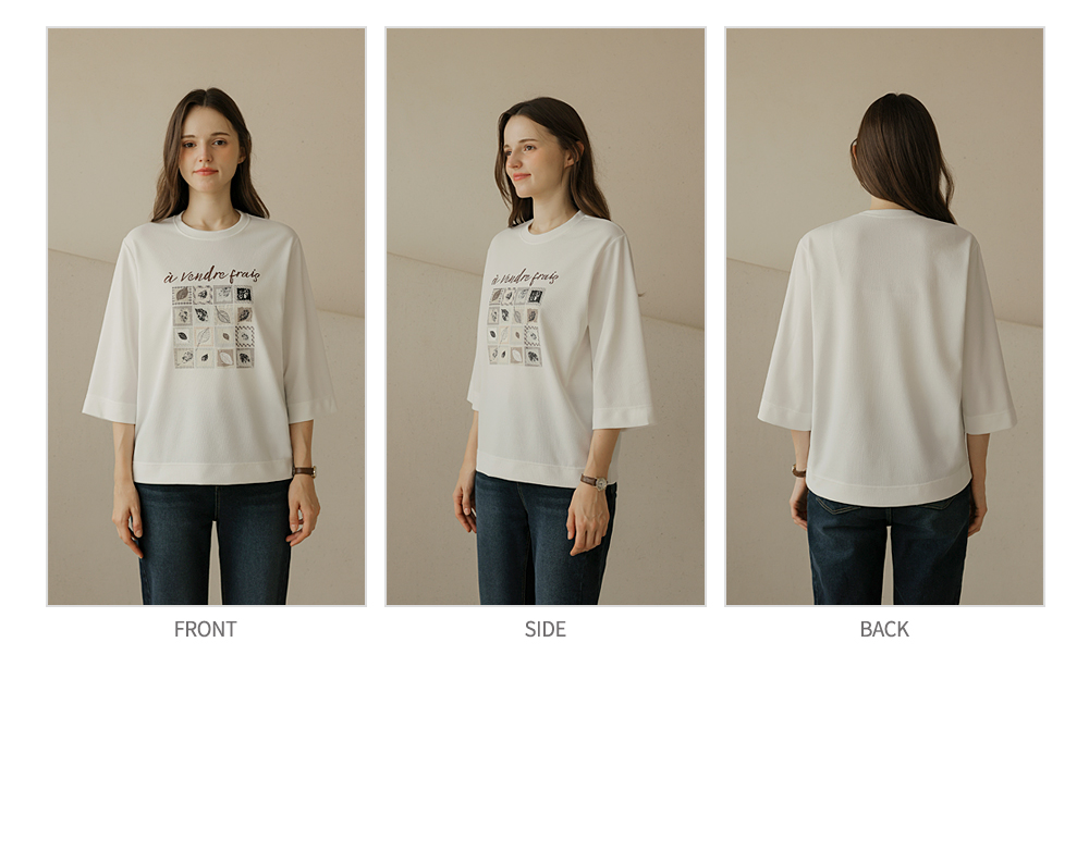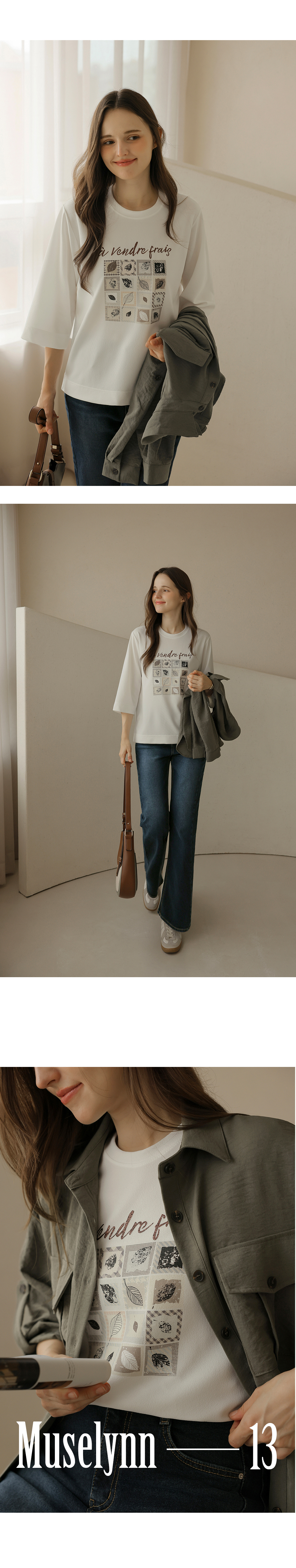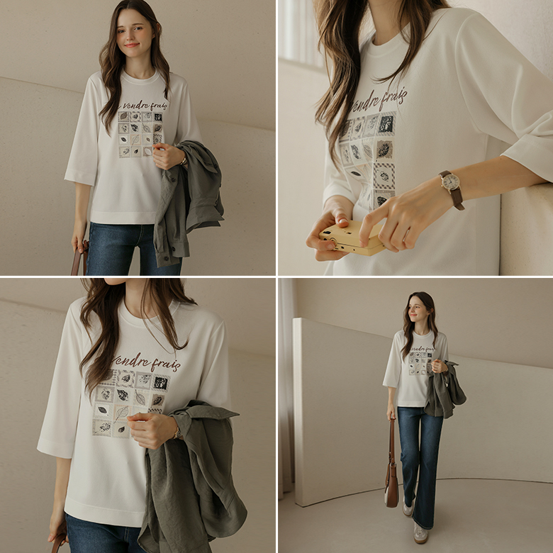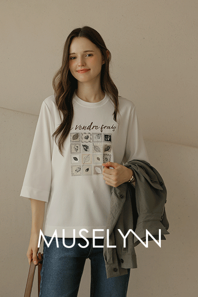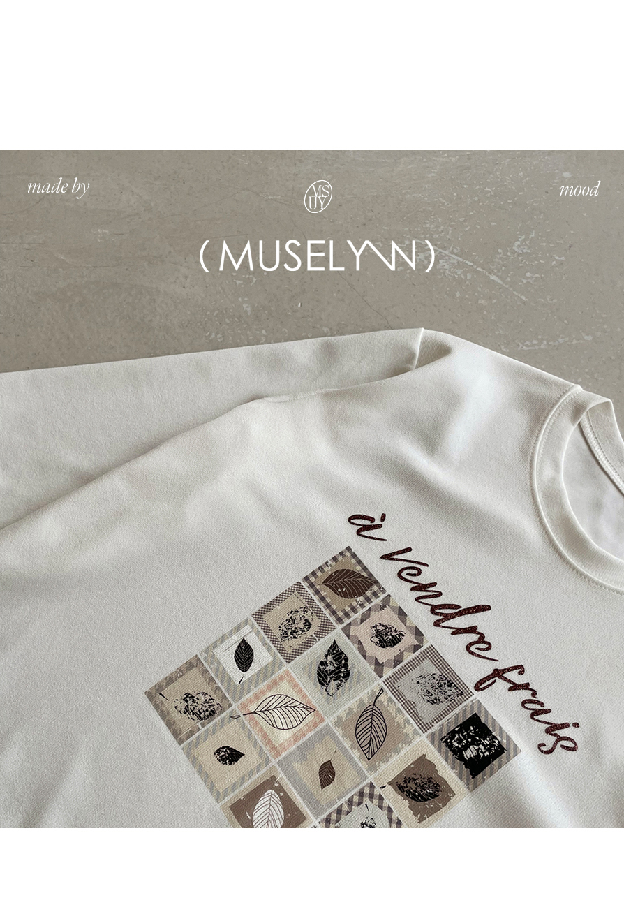[뮤즈린] 카이 낙엽 레터링 7부 티셔츠