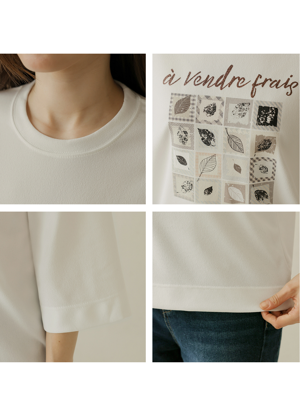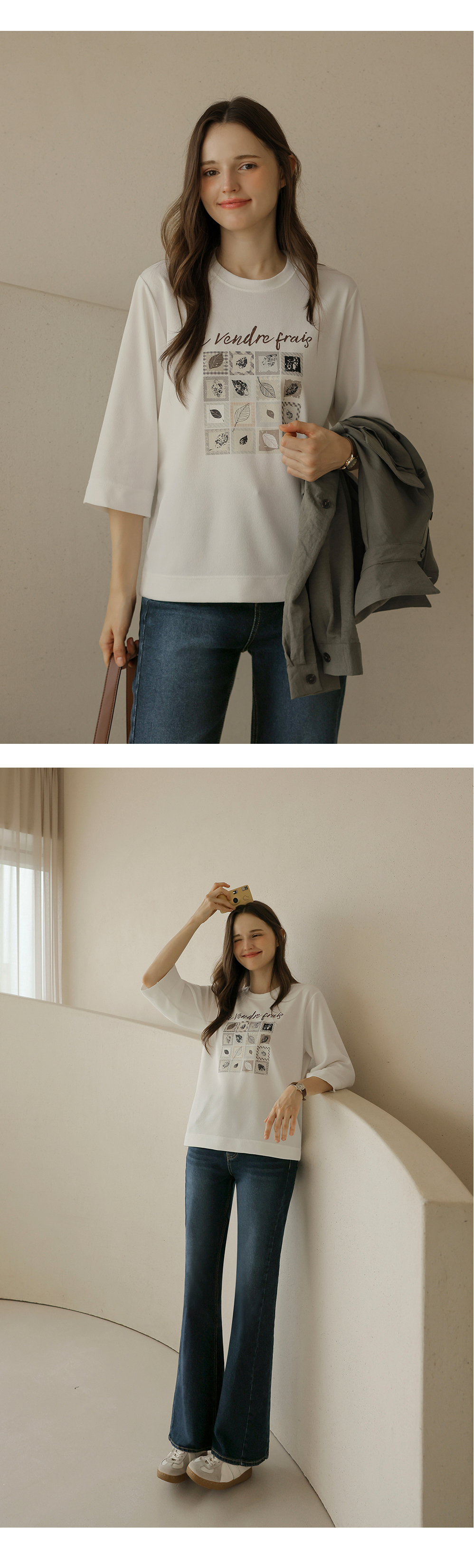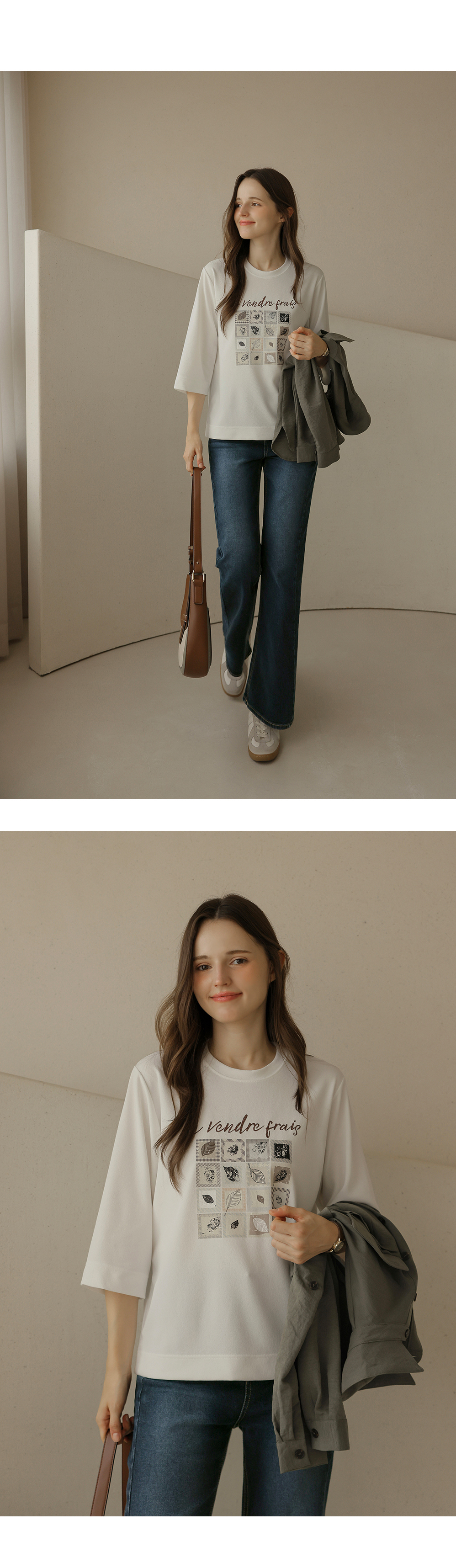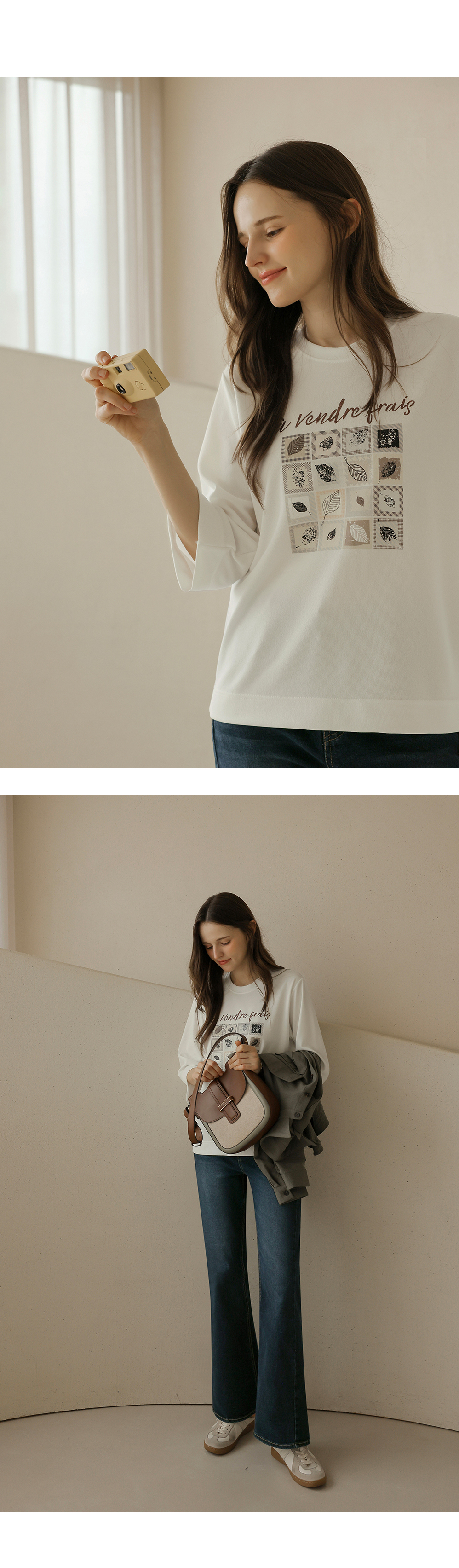 [뮤즈린] 카이 낙엽 레터링 7부 티셔츠