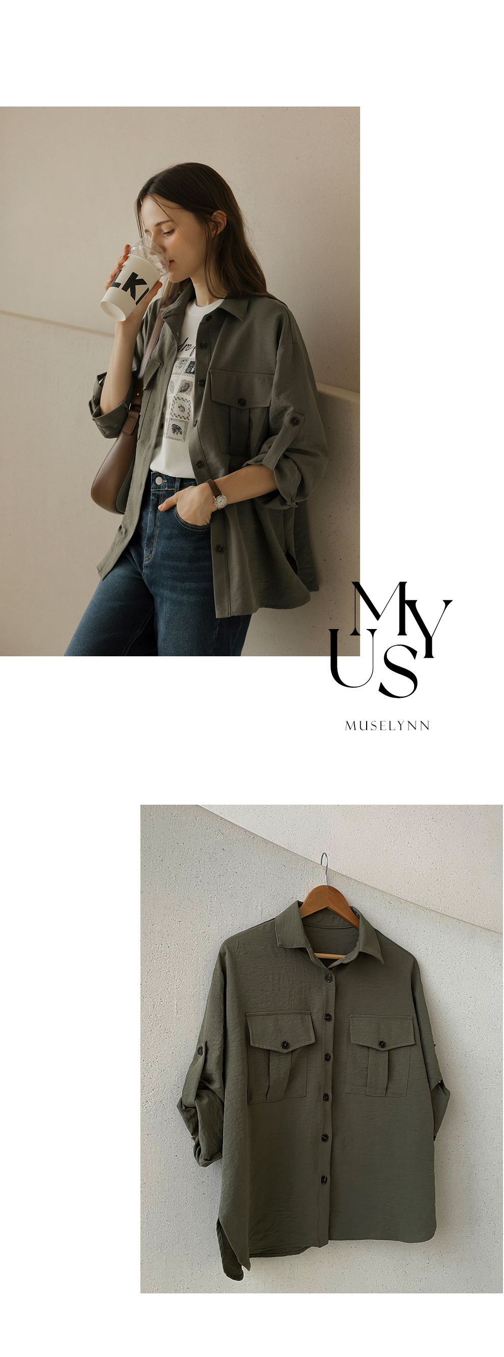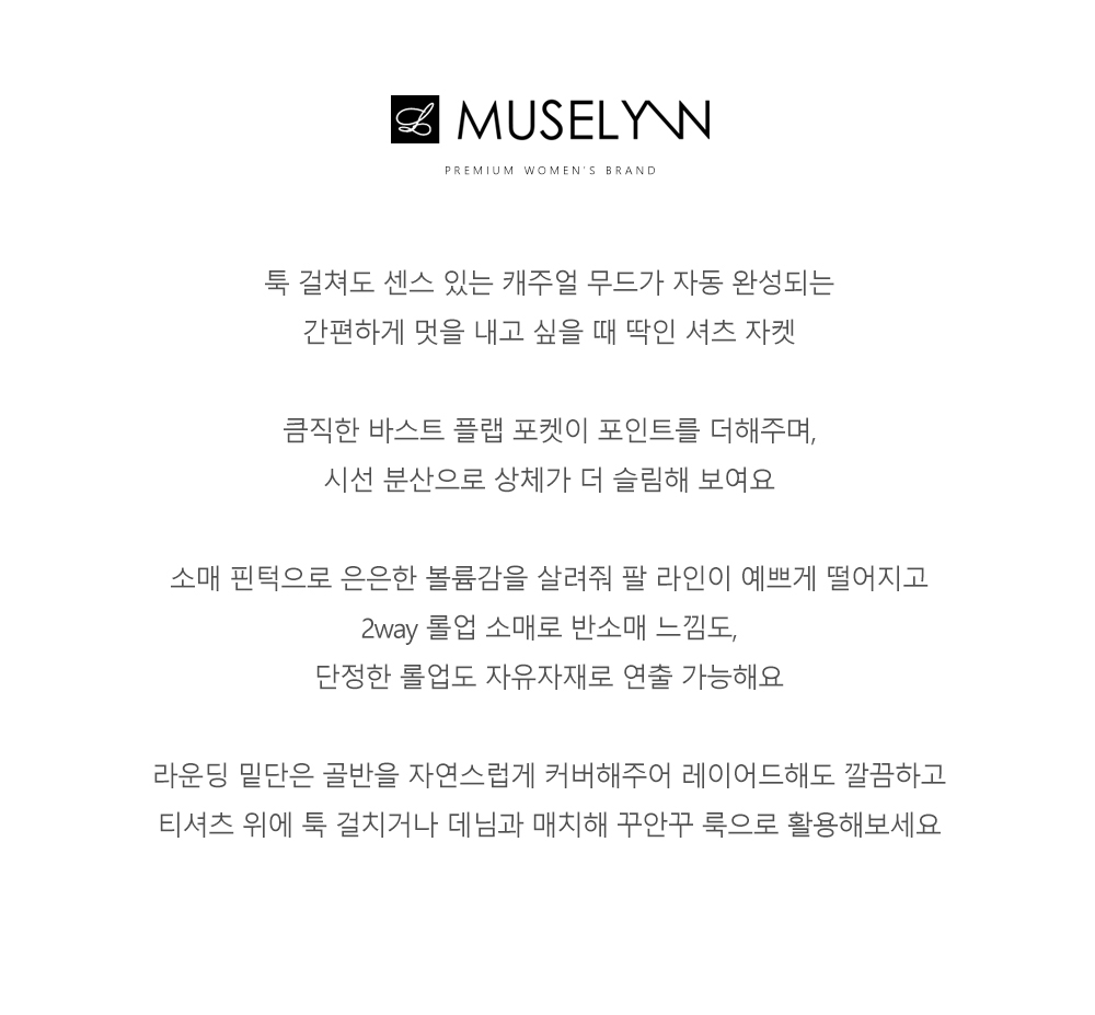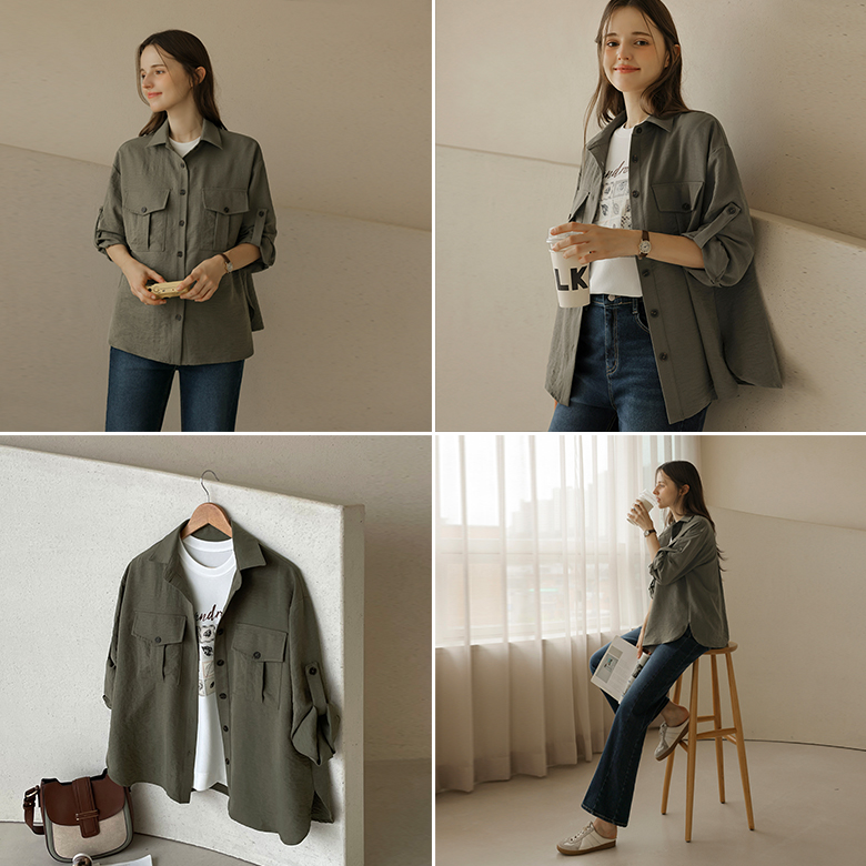 [뮤즈린] [롤업] 카이 포켓 데일리 셔츠 자켓