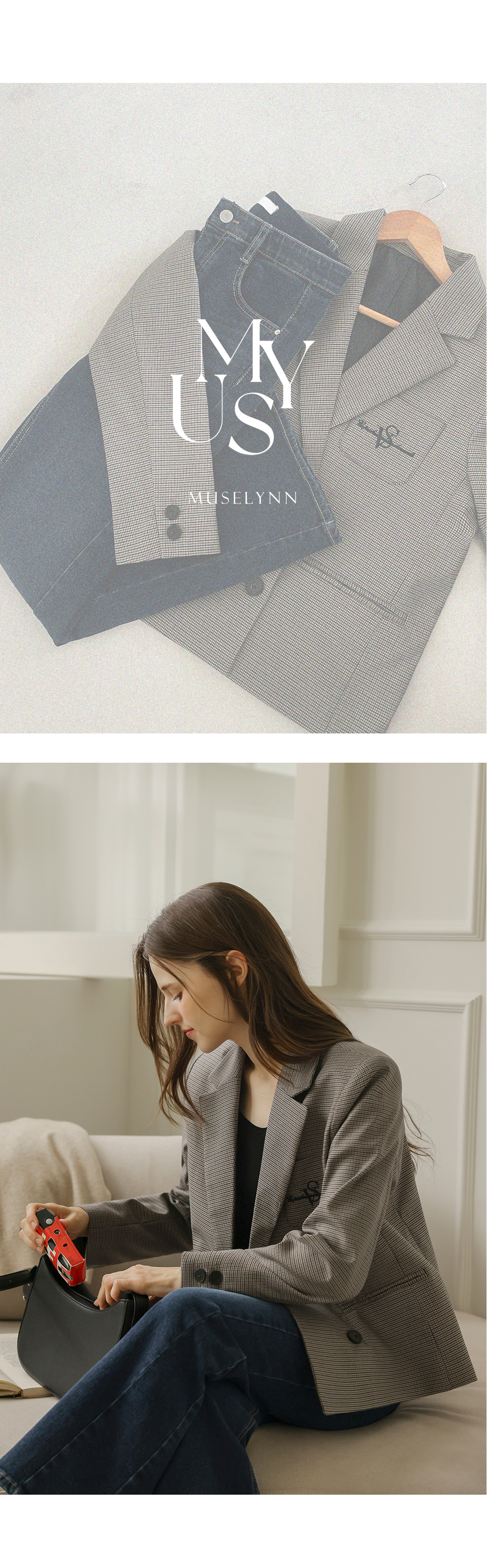 [뮤즈린] 헤딘 포켓자수 헤링본 자켓