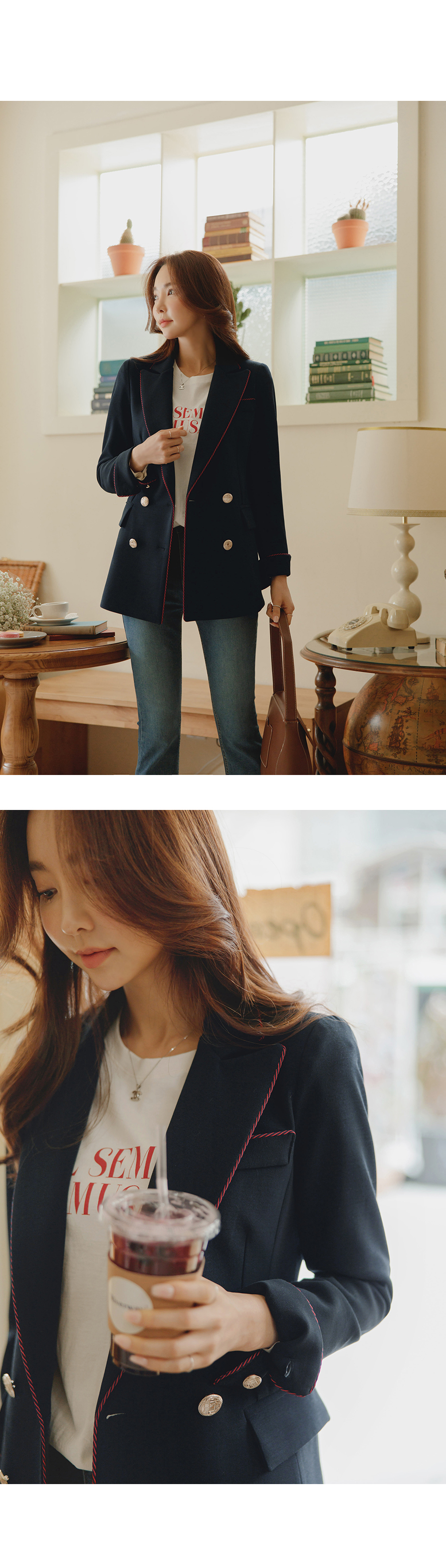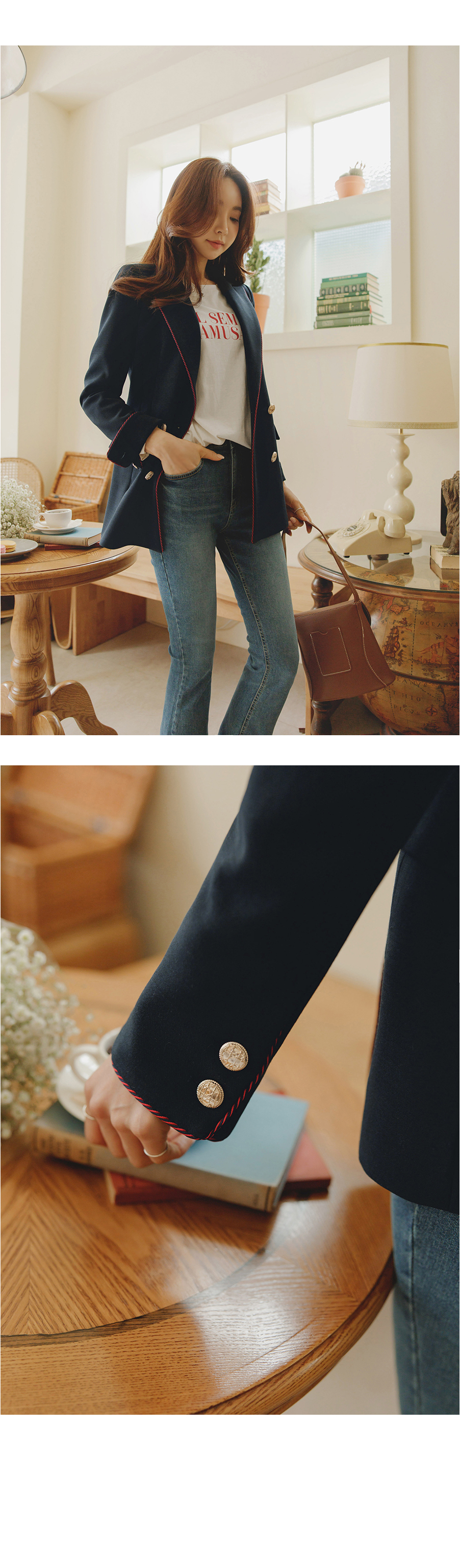 [뮤즈린] 호멜 골드버튼 스티치 자켓