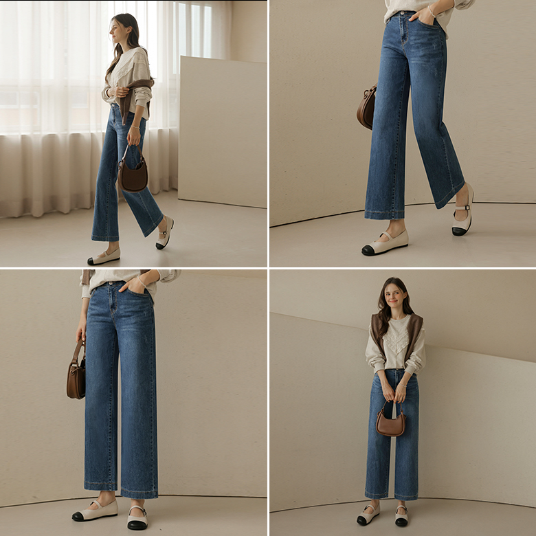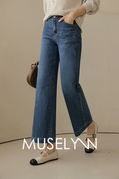 [뮤즈린] 라룬 세미와이드 데님팬츠 [밴딩]