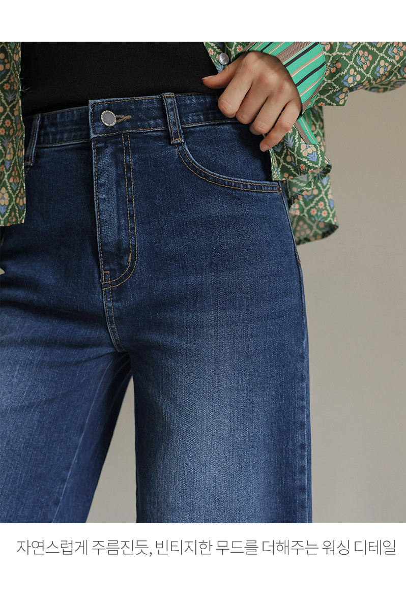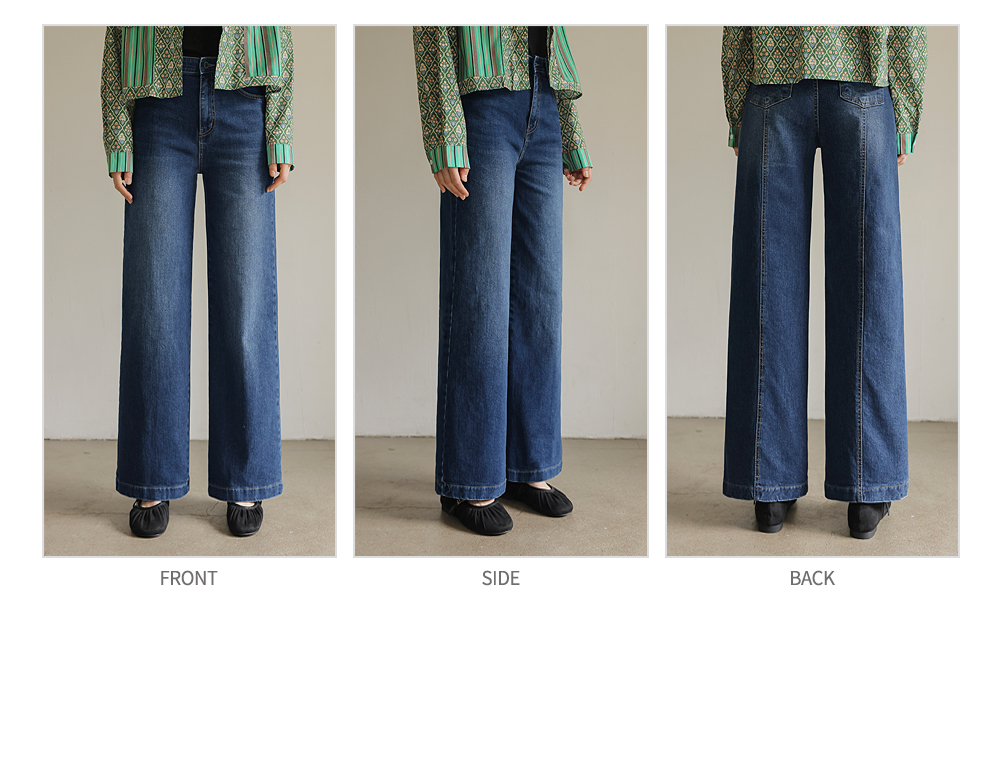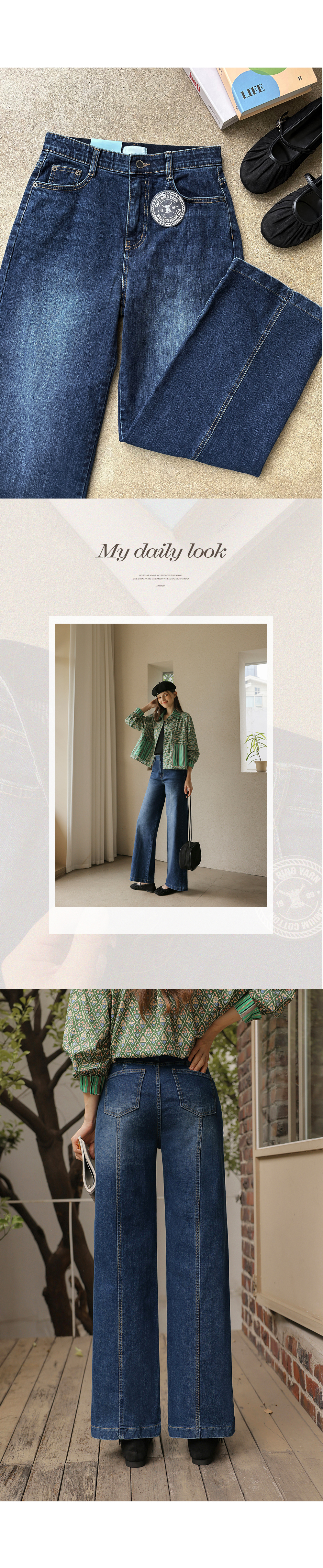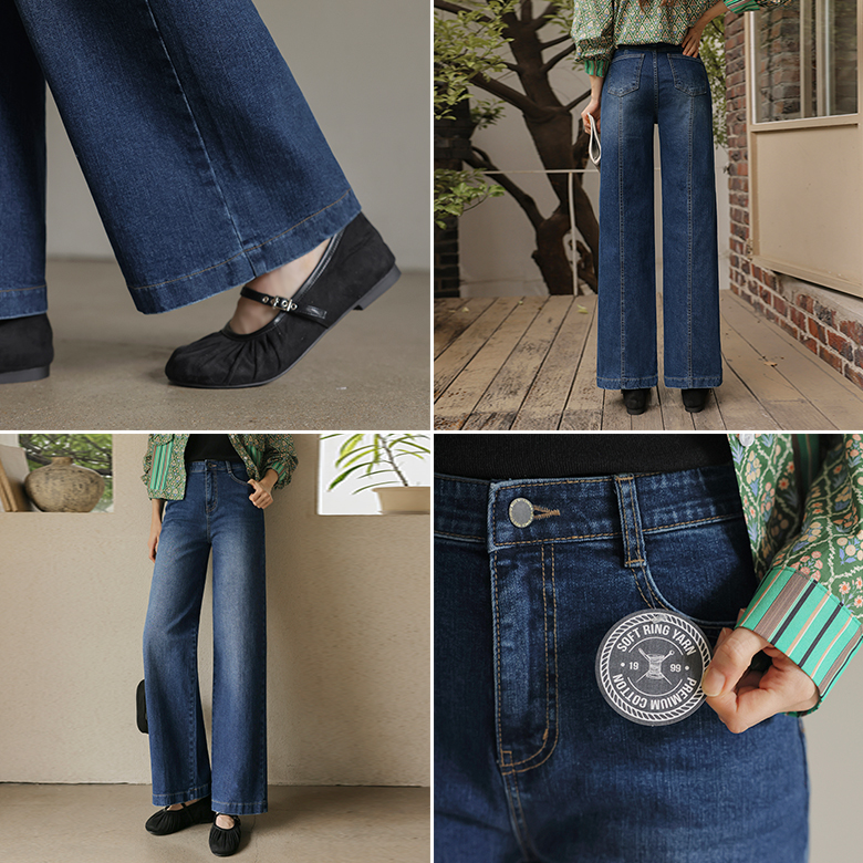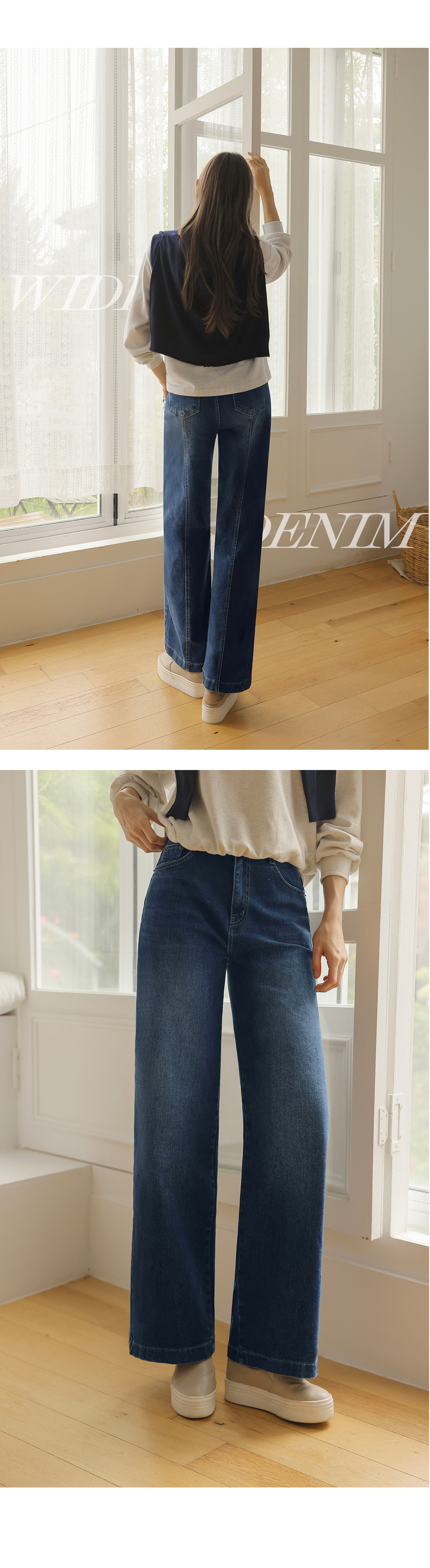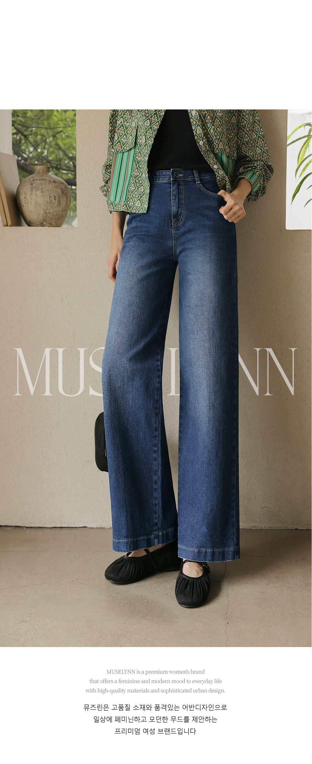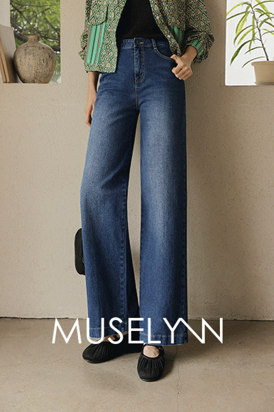 [뮤즈린] 타콘 뒷절개 와이드 데님팬츠 [밴딩]