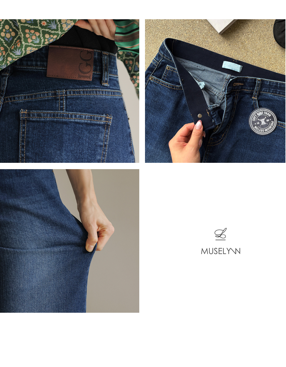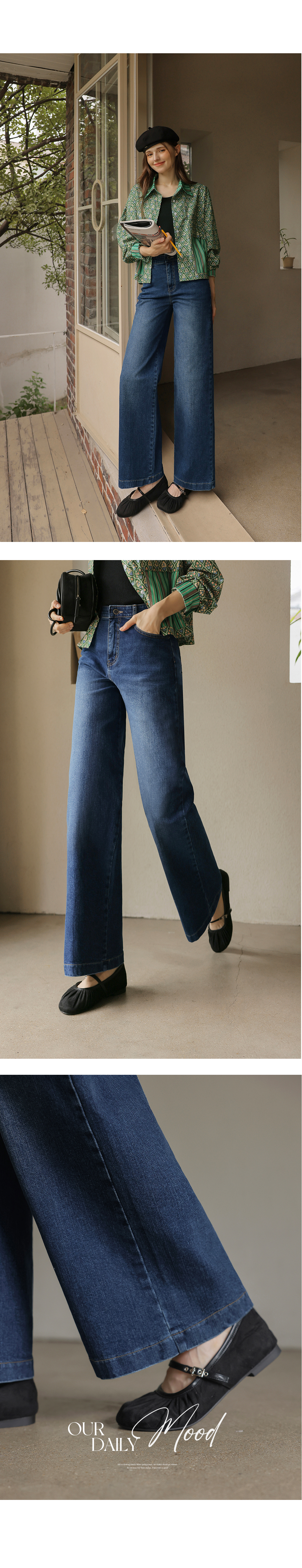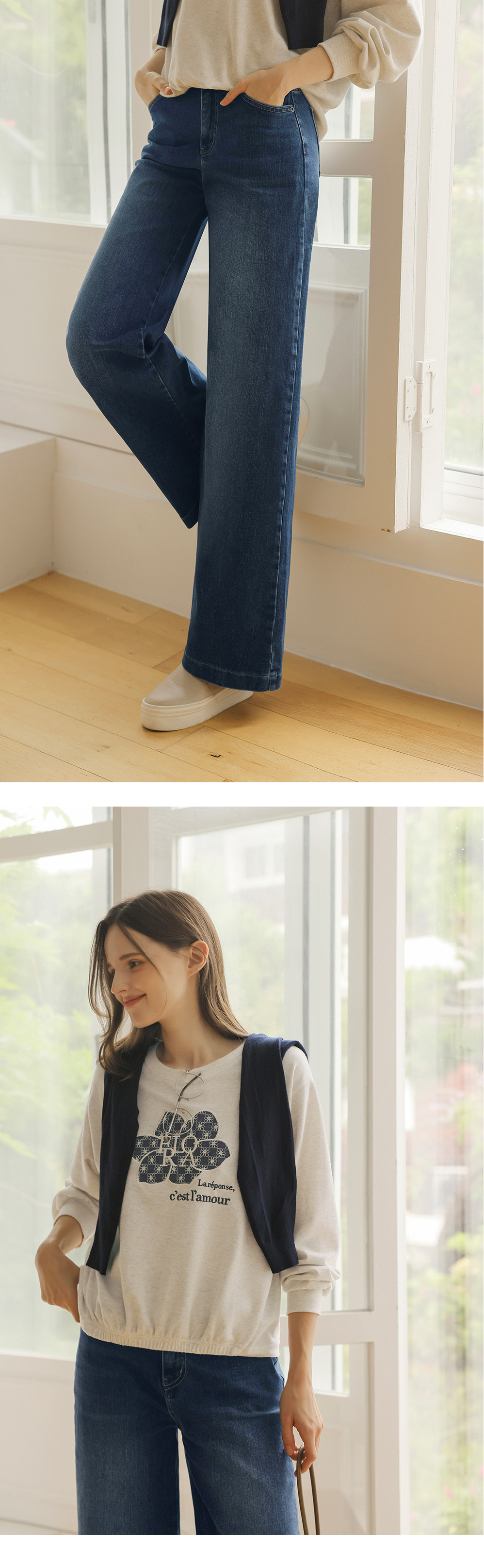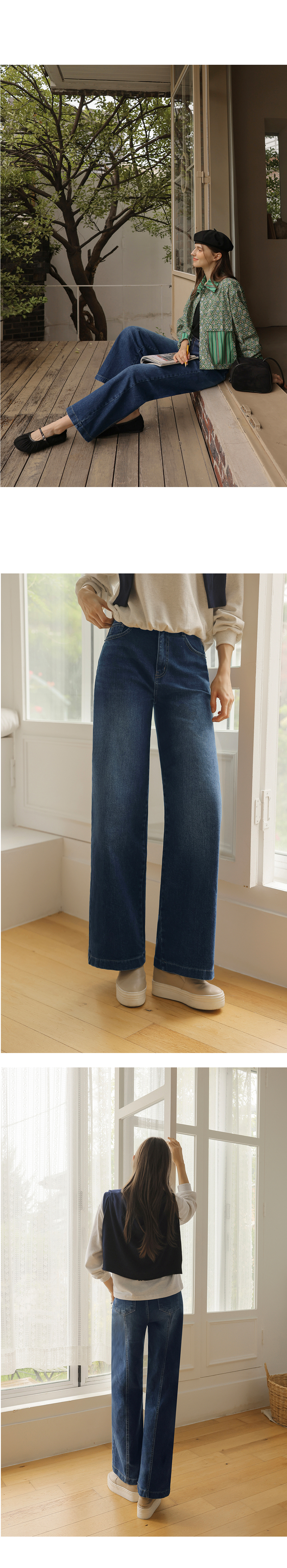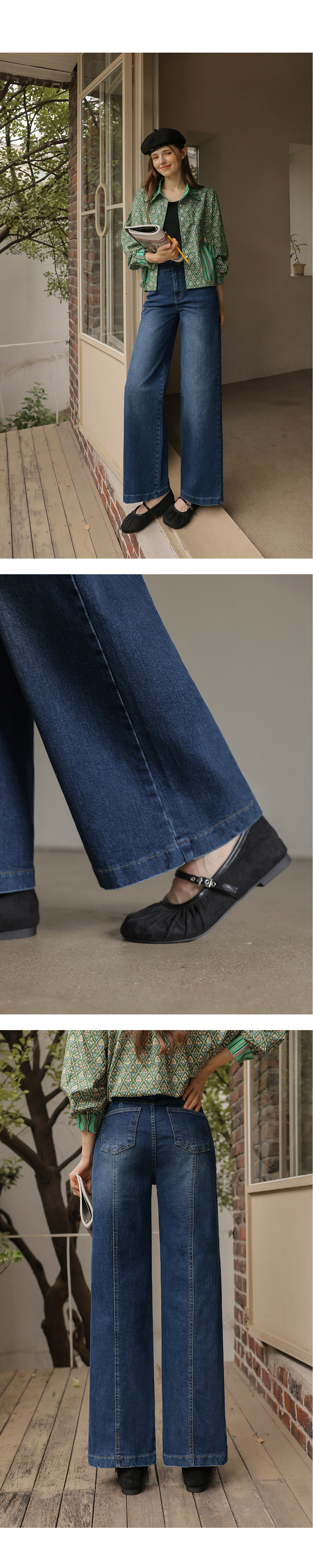 [뮤즈린] 타콘 뒷절개 와이드 데님팬츠 [밴딩]