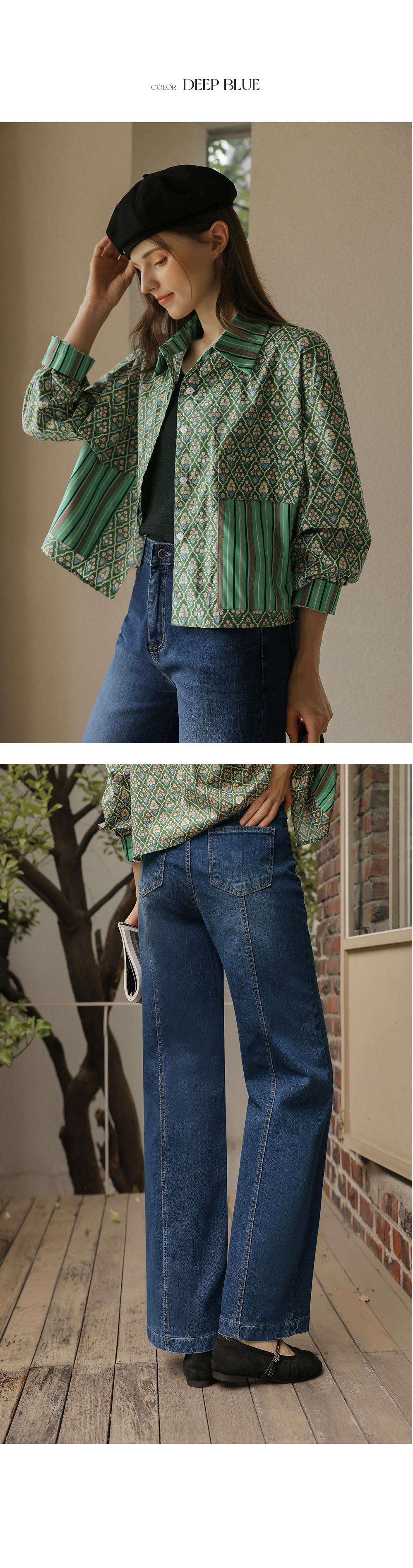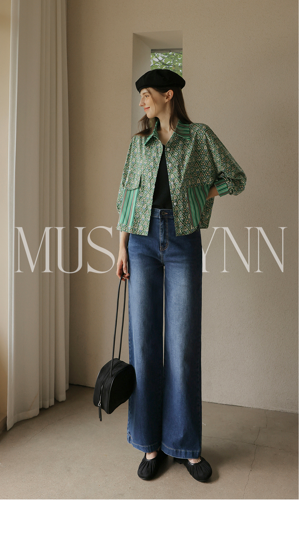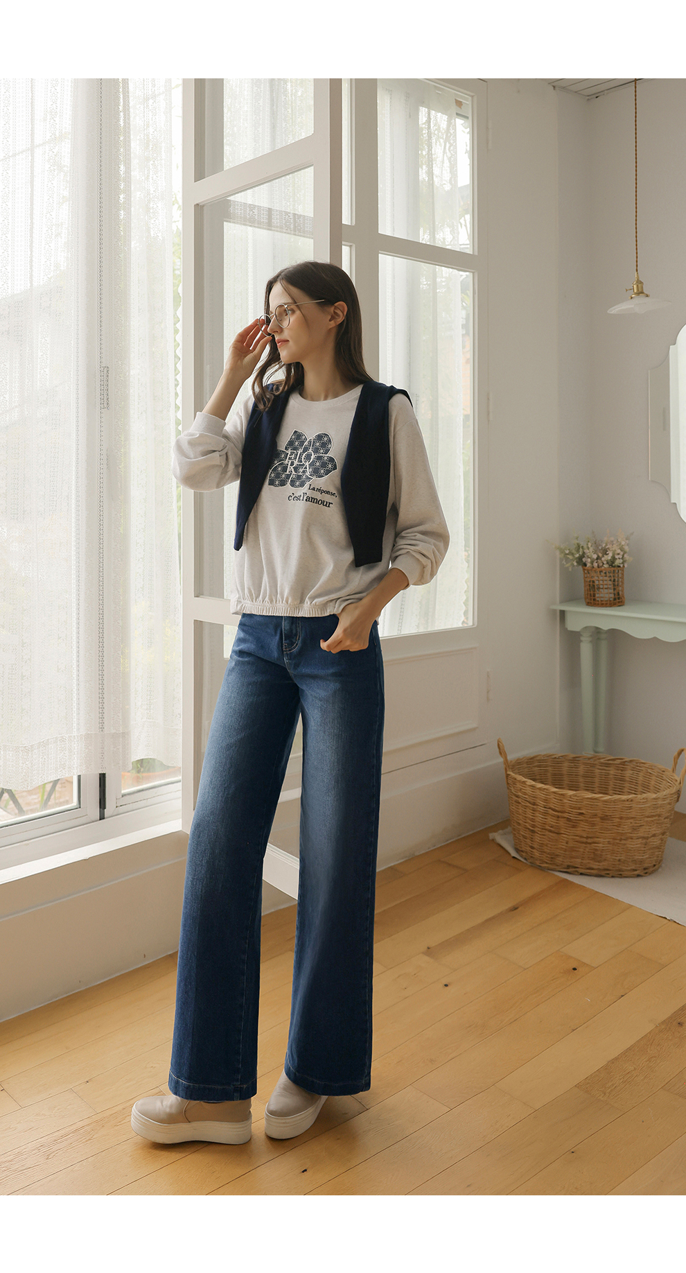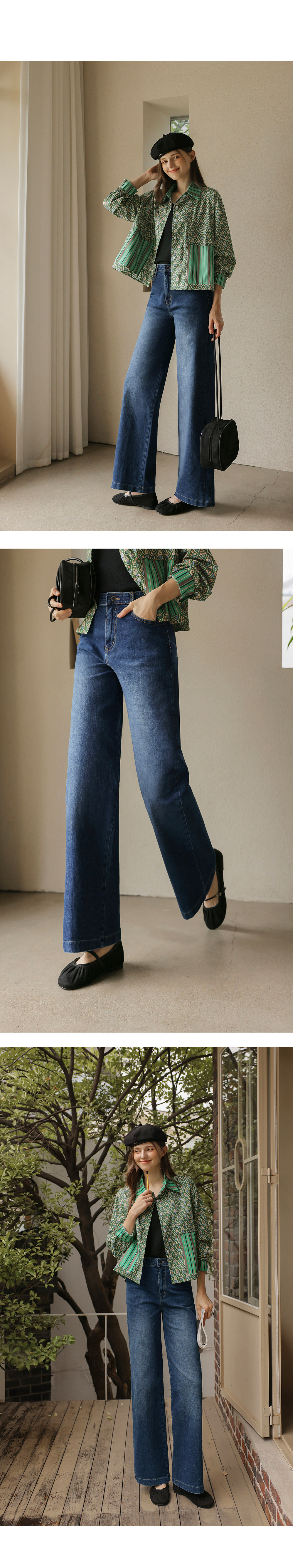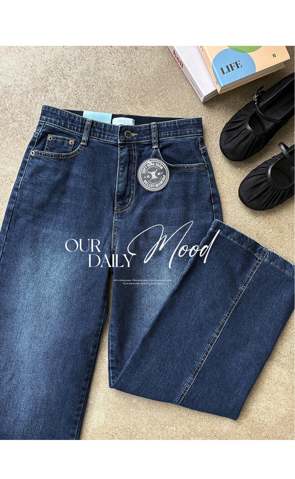 [뮤즈린] 타콘 뒷절개 와이드 데님팬츠 [밴딩]