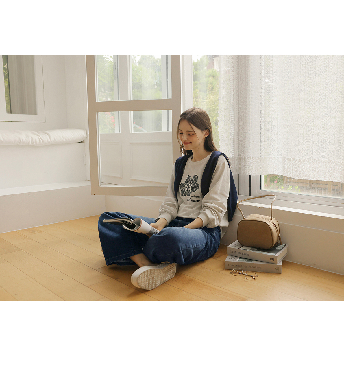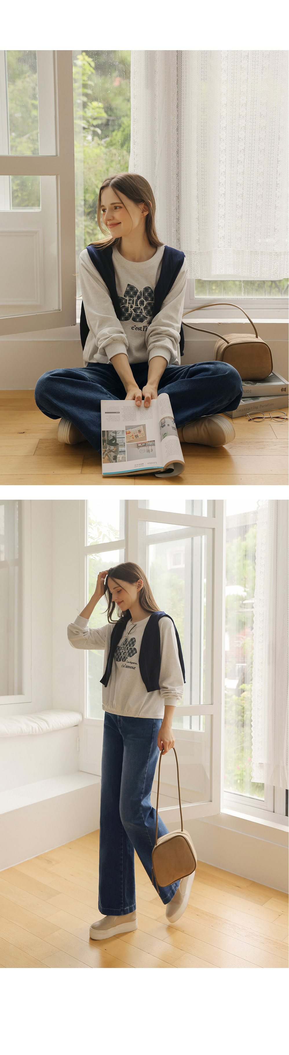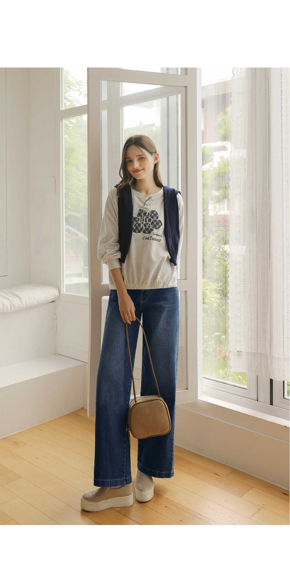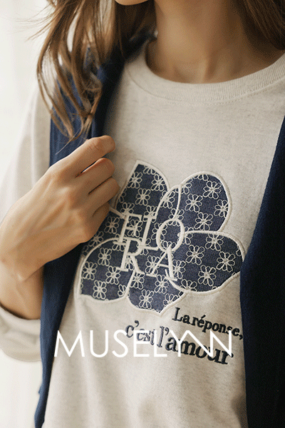 [뮤즈린] 타콘 데님 플라워 밴딩 맨투맨