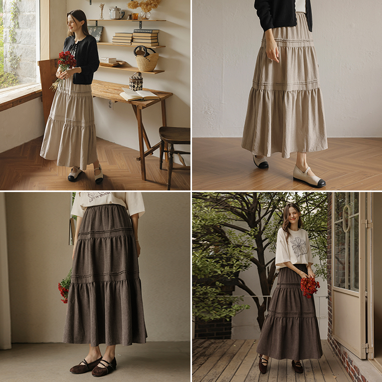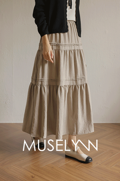 [뮤즈린] 보닌 핀턱 캉캉 롱 스커트 [밴딩]
