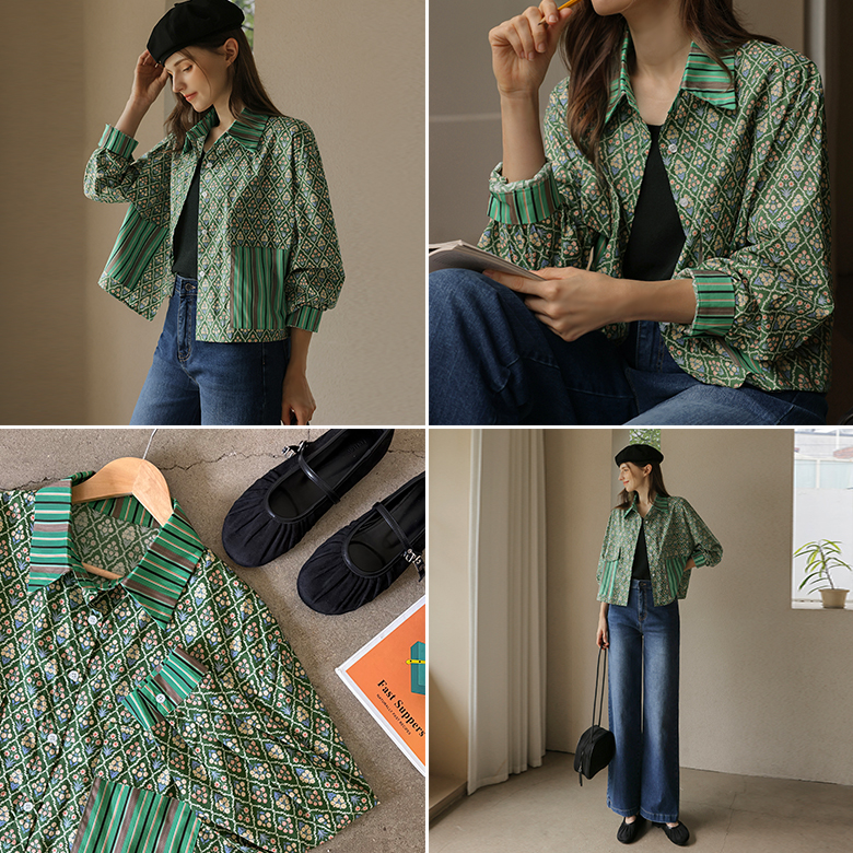 [뮤즈린] 타콘 패턴 포켓 셔츠