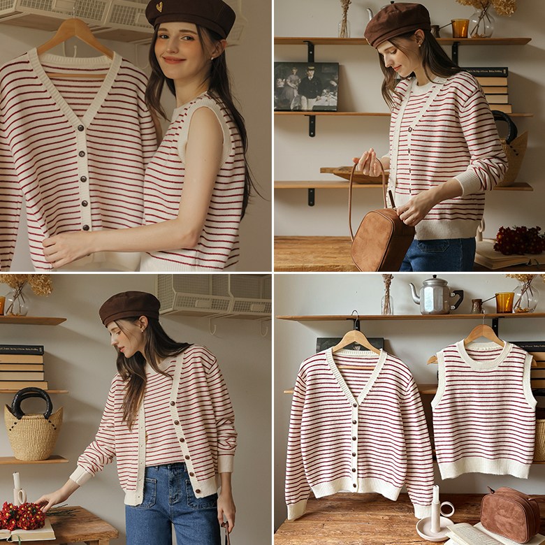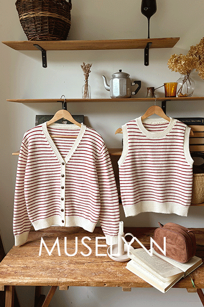 [뮤즈린] 조안 스트라이프 니트+가디건 SET