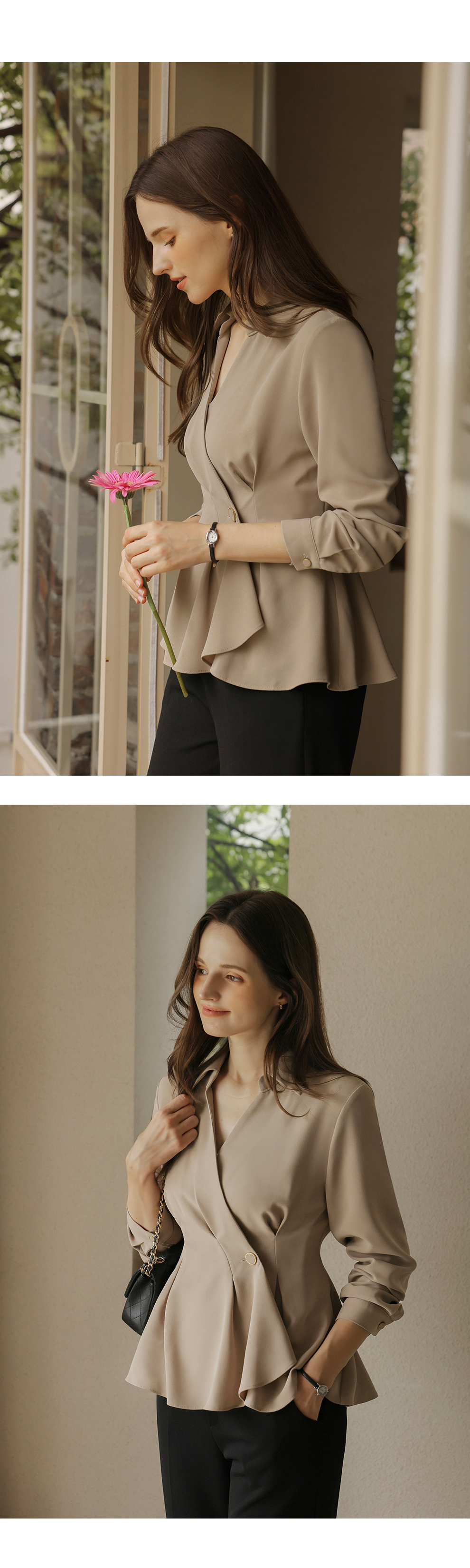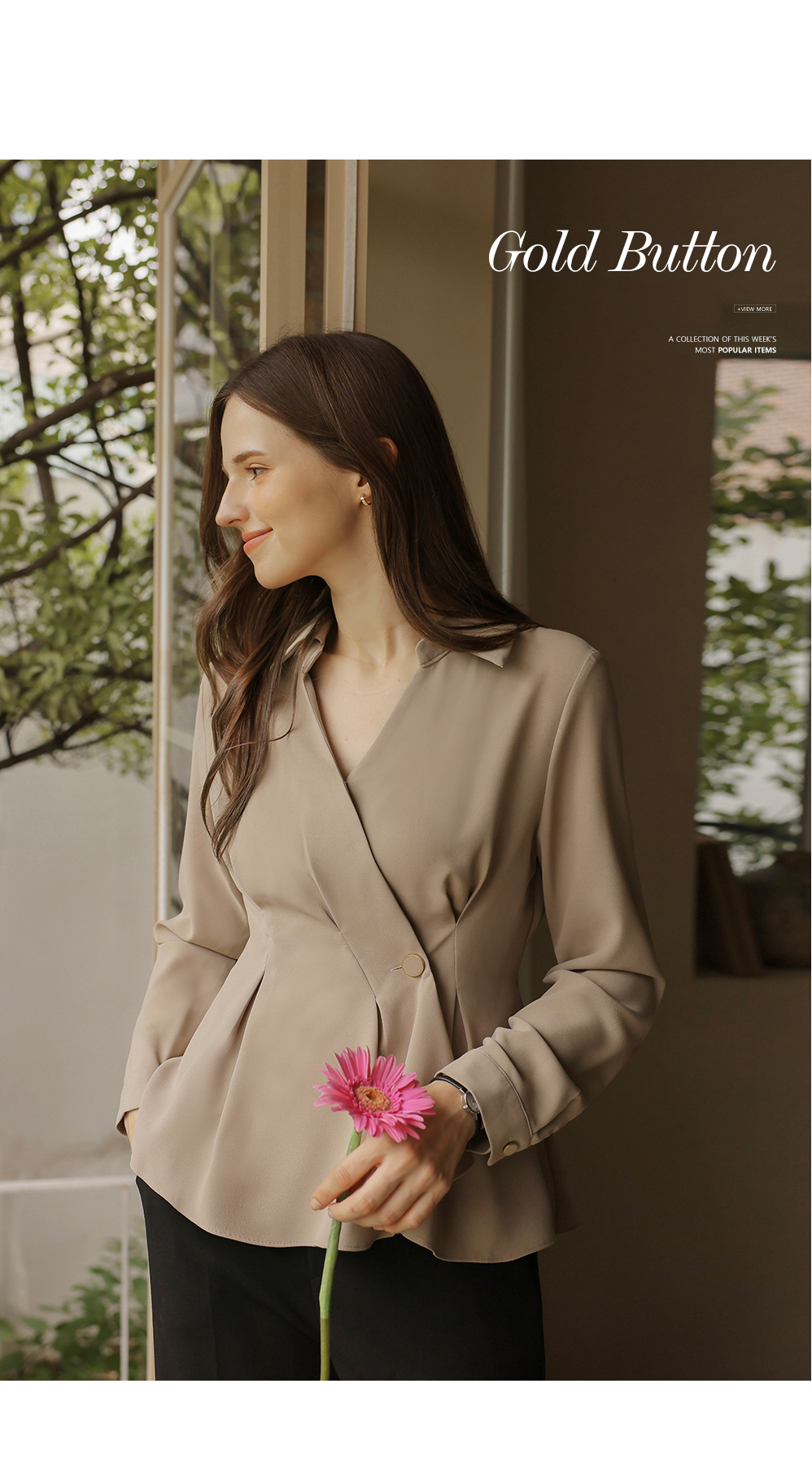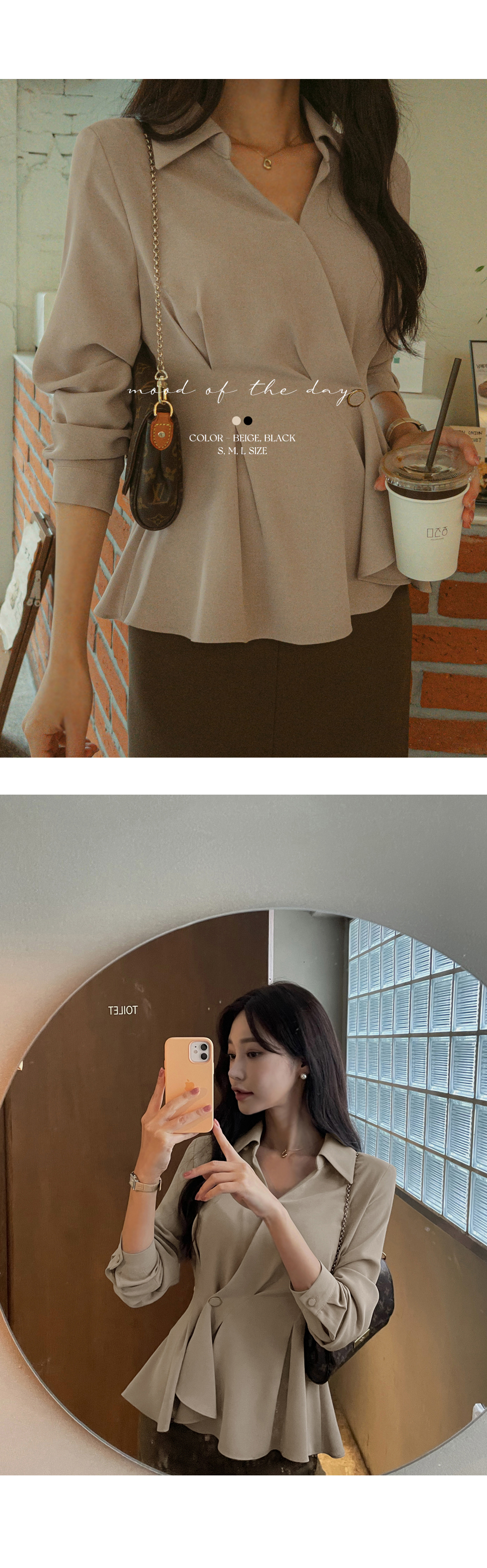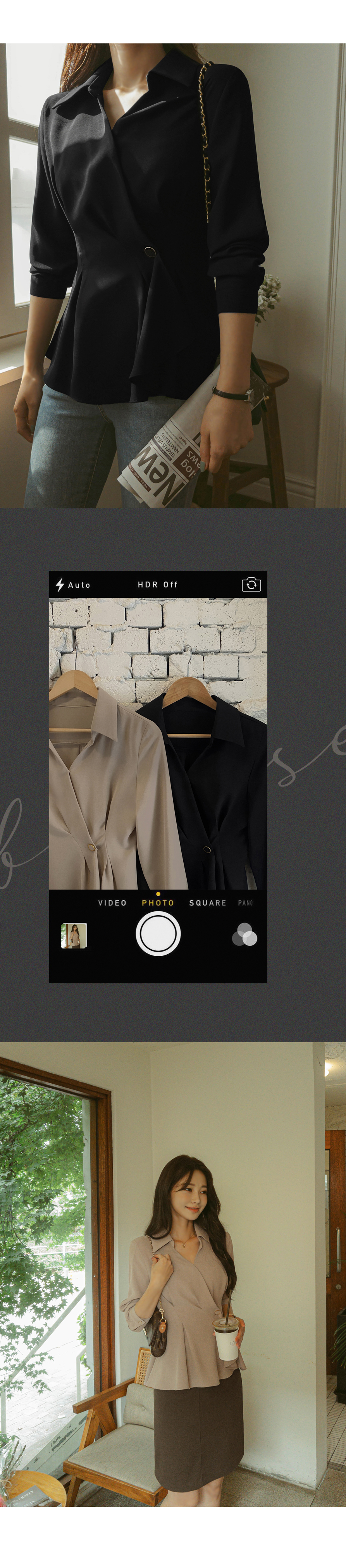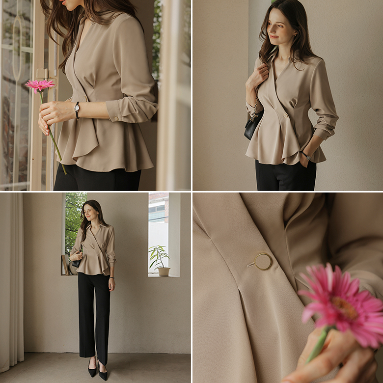 [뮤즈린] 비띠끄 골드버튼 랩 블라우스