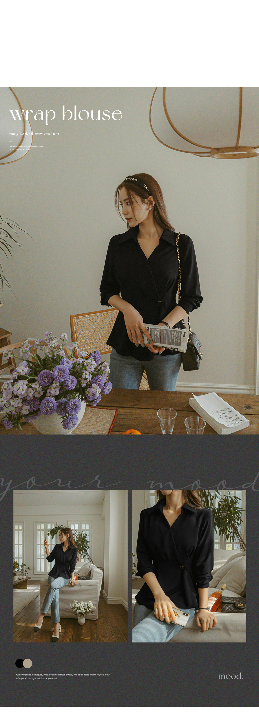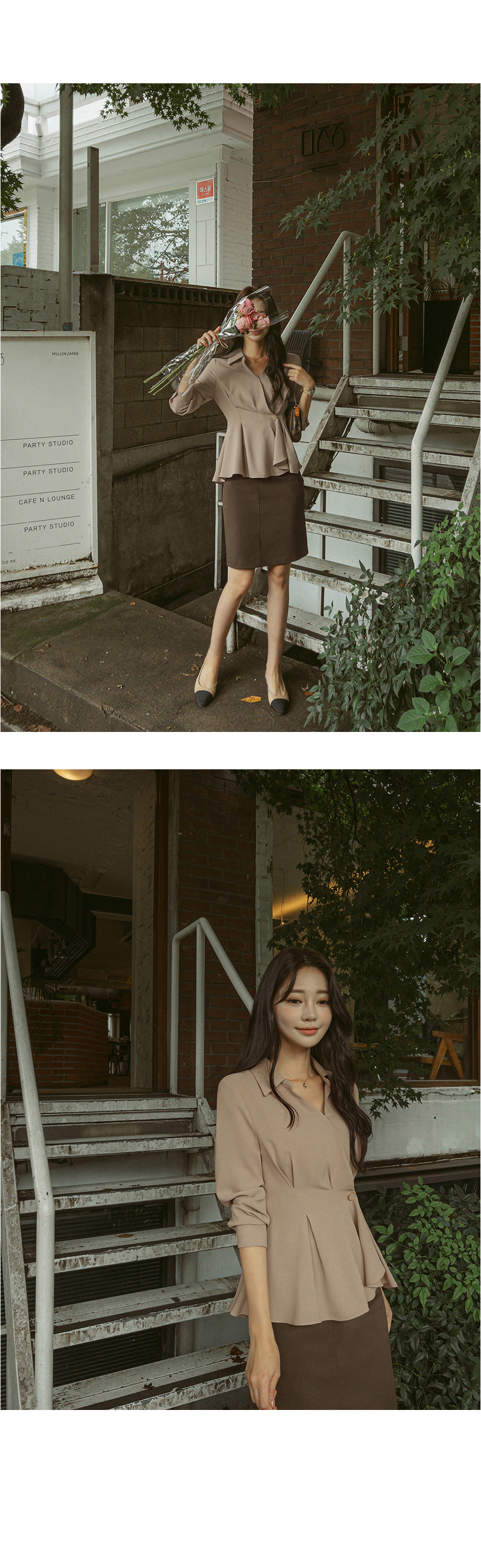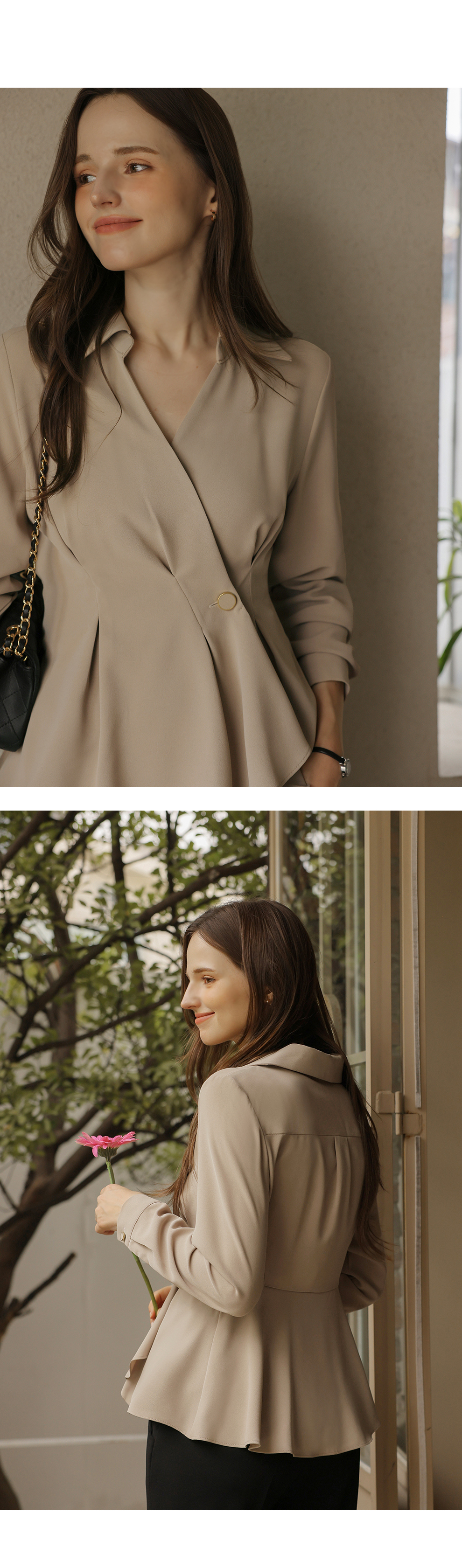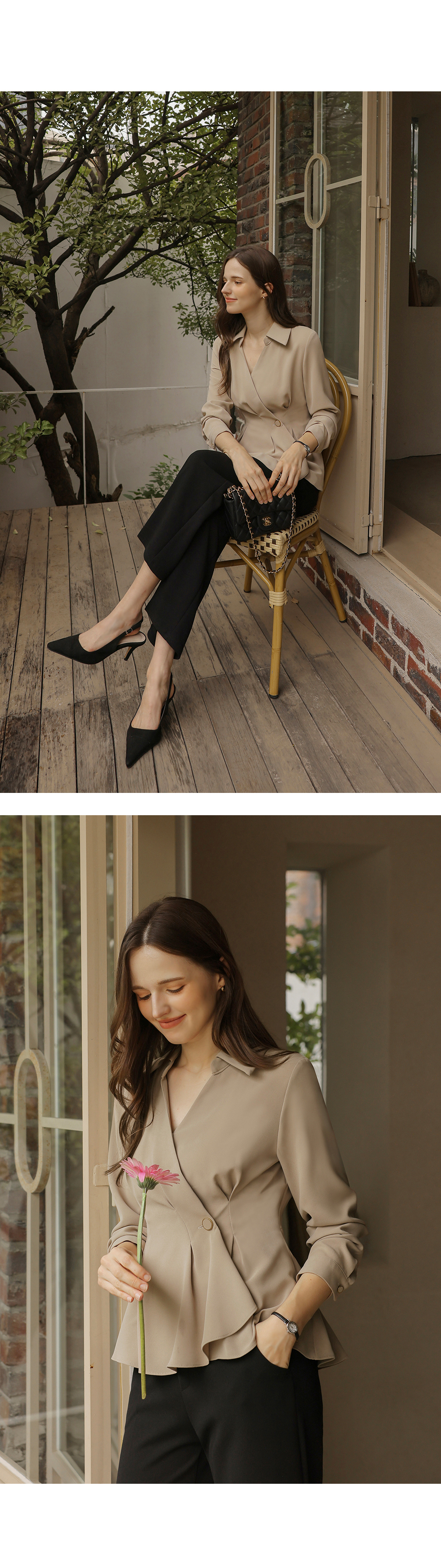 [뮤즈린] 비띠끄 골드버튼 랩 블라우스