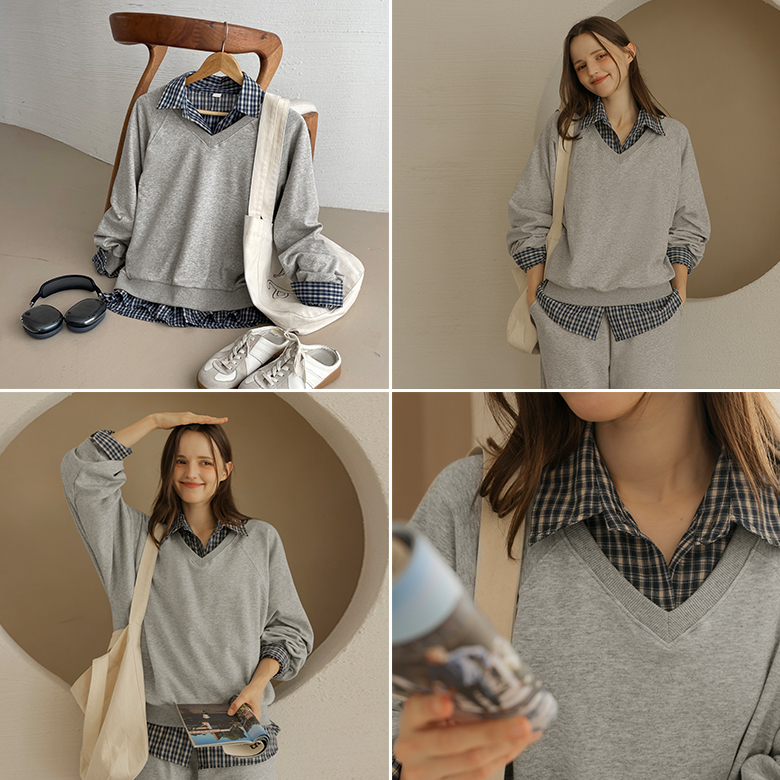 [뮤즈린] 언제나 브이넥 데일리 맨투맨