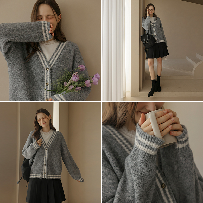 [뮤즈린] 레보 배색 브이넥 루즈핏 가디건