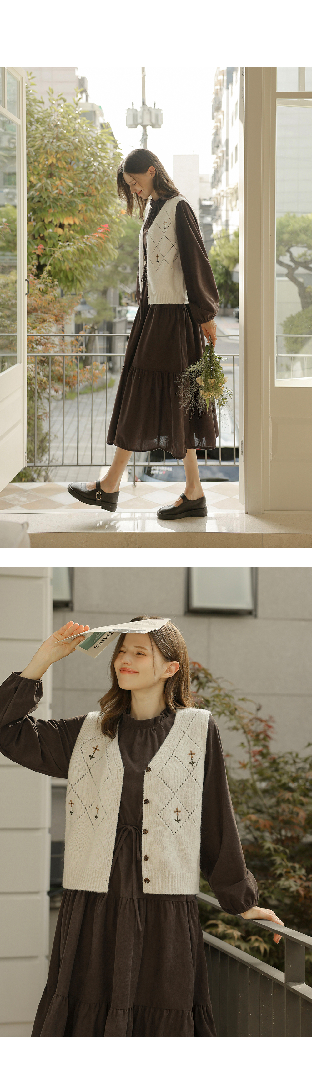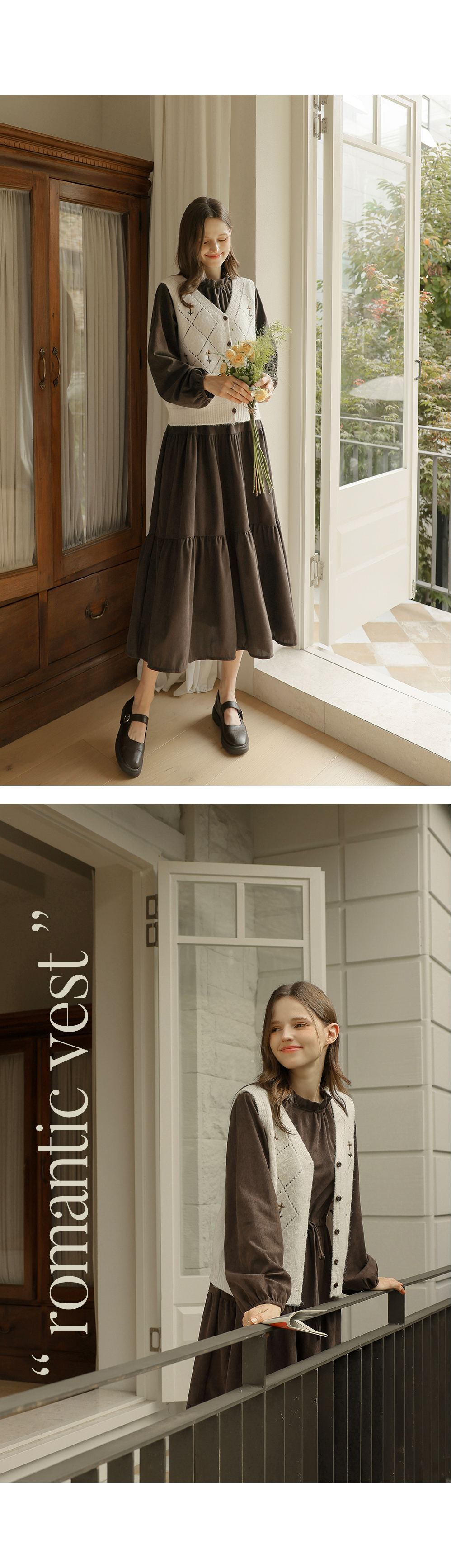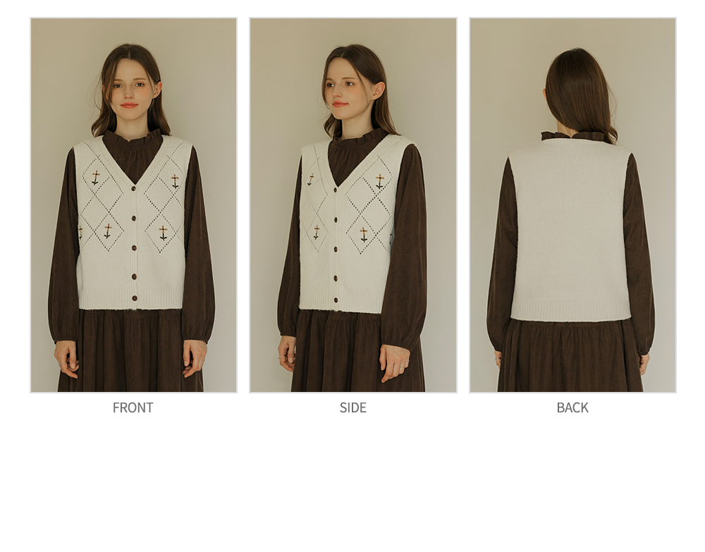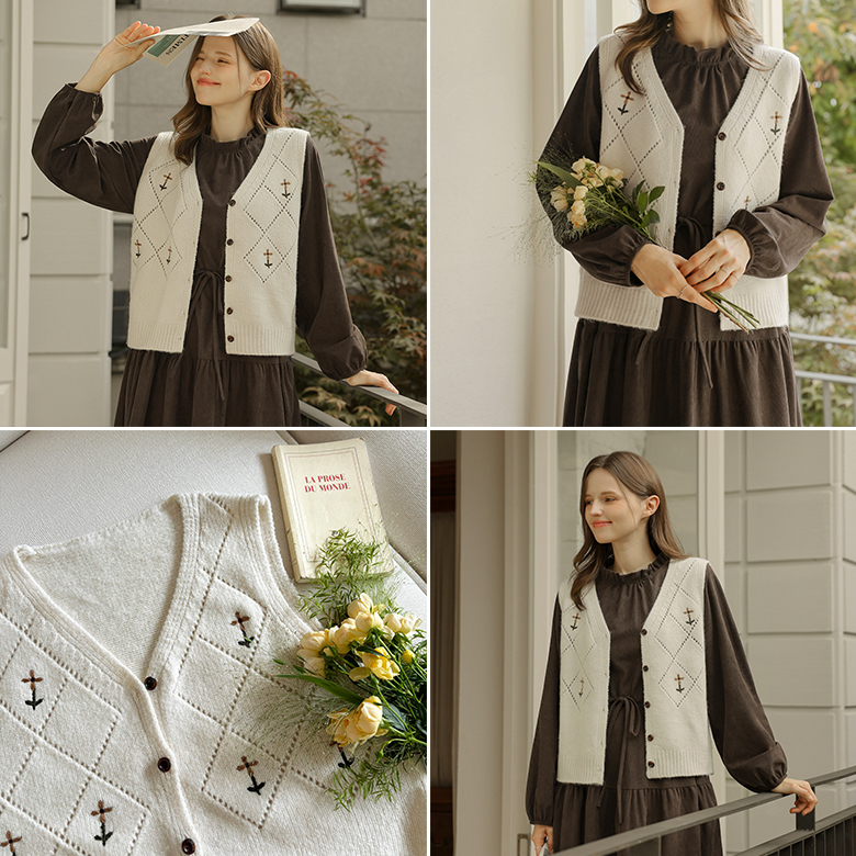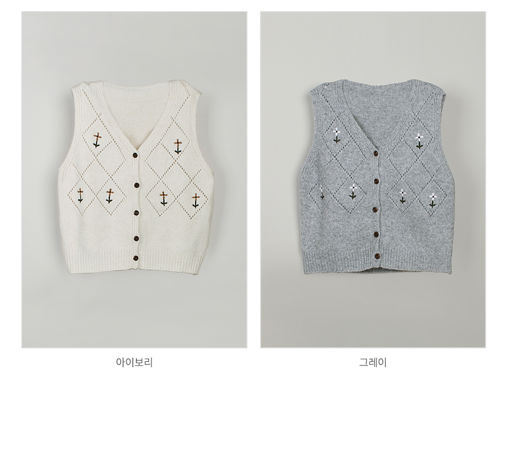 [뮤즈린] 레이첼 플라워 다이아 니트 조끼