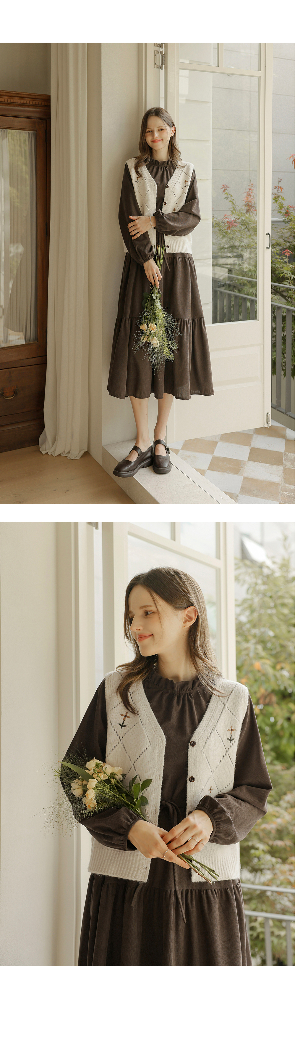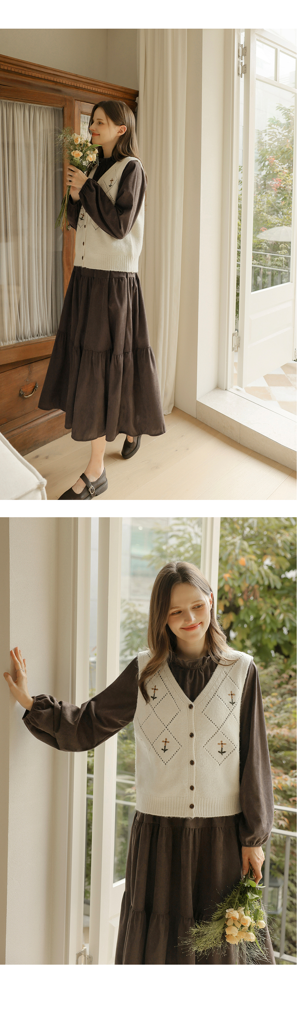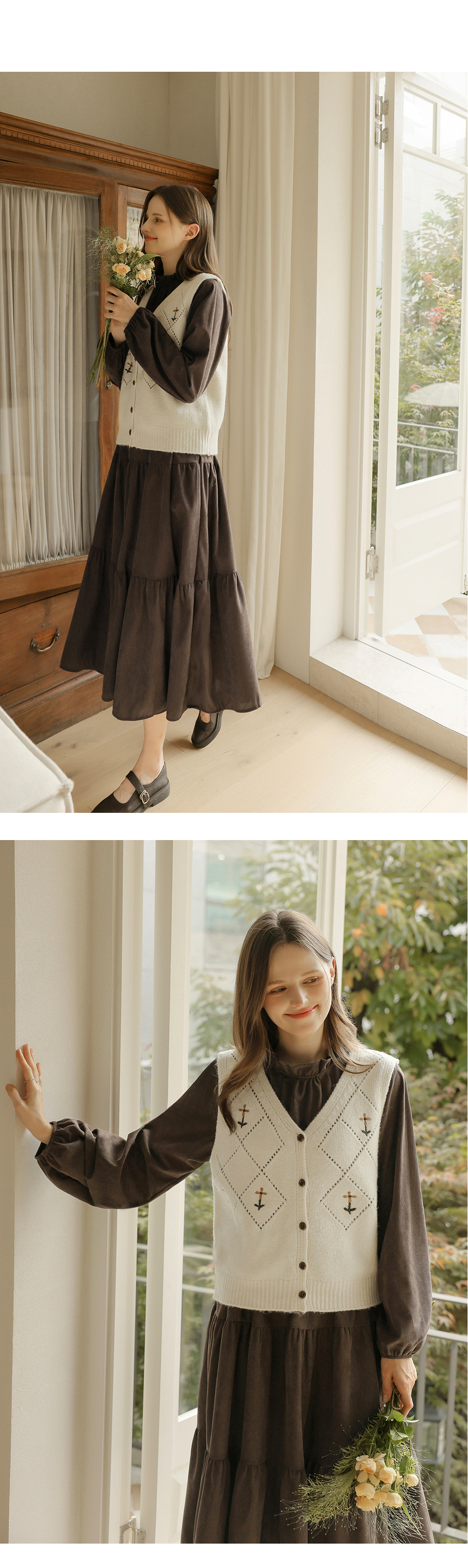 [뮤즈린] 레이첼 플라워 다이아 니트 조끼