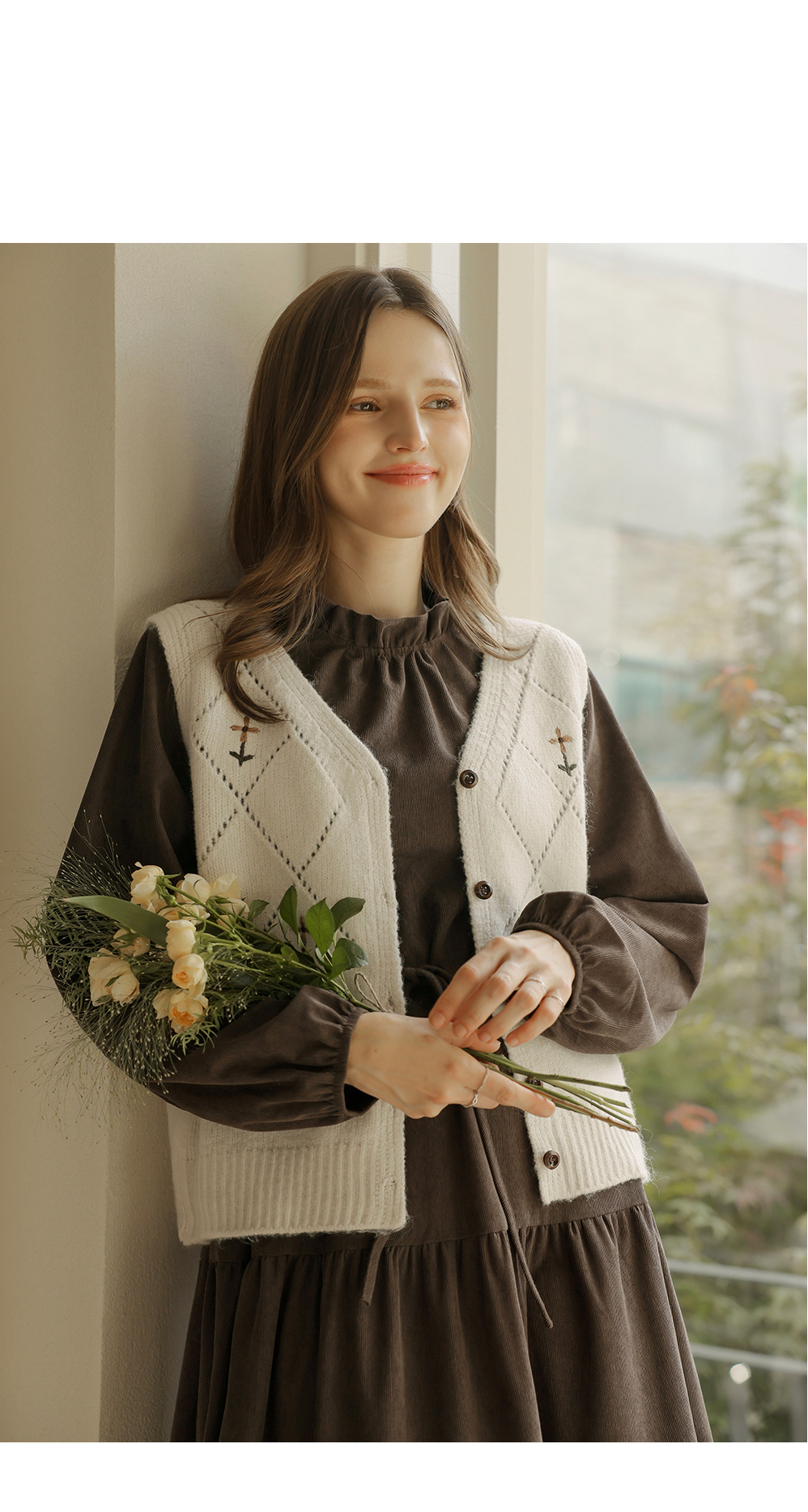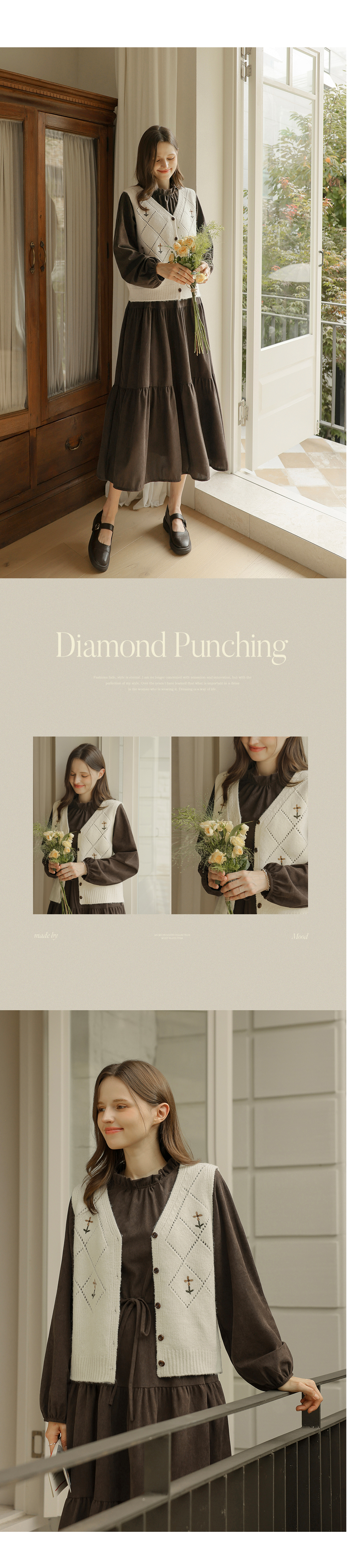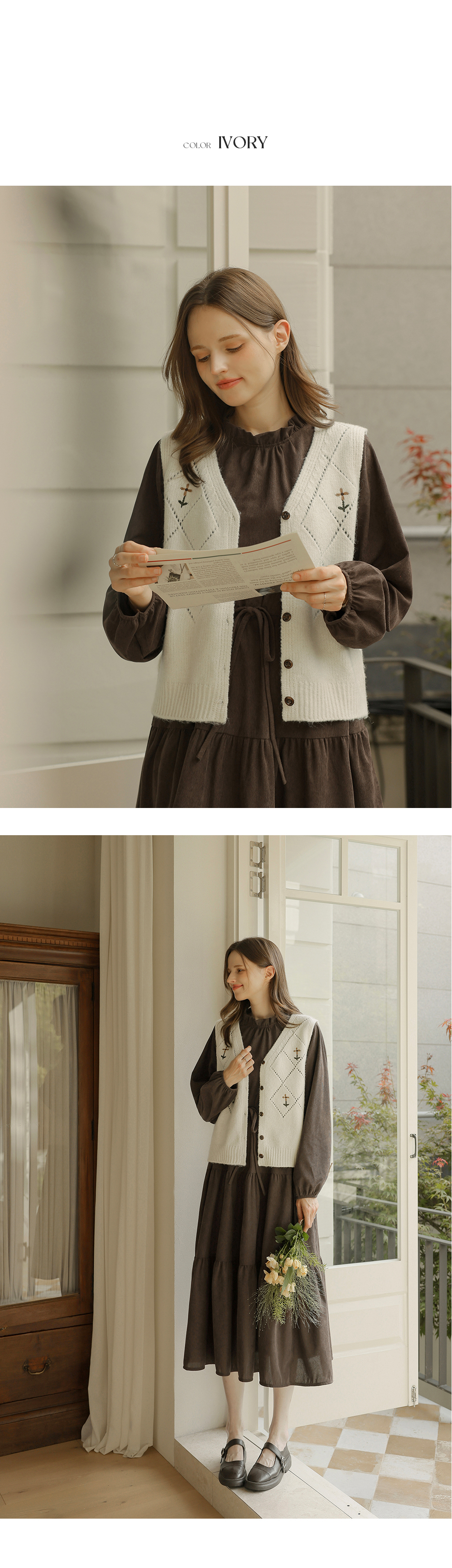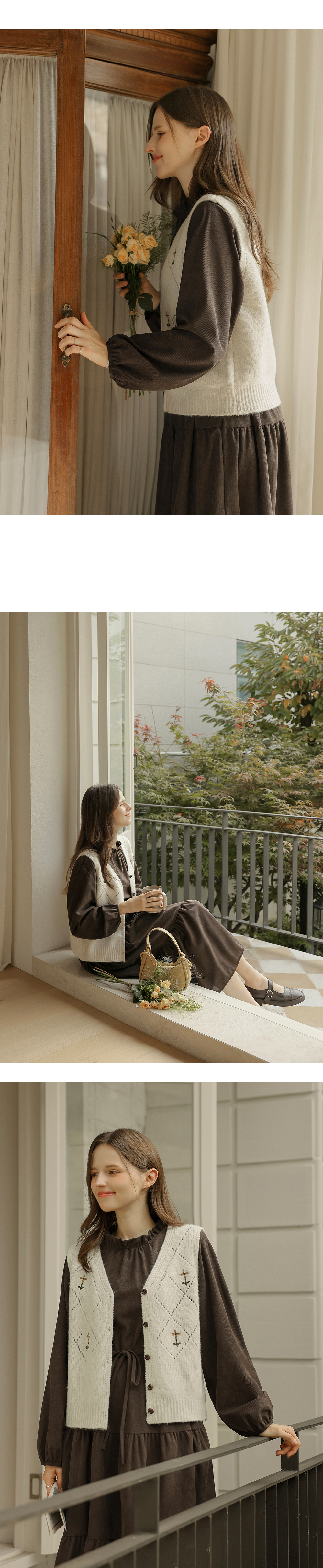 [뮤즈린] 레이첼 플라워 다이아 니트 조끼