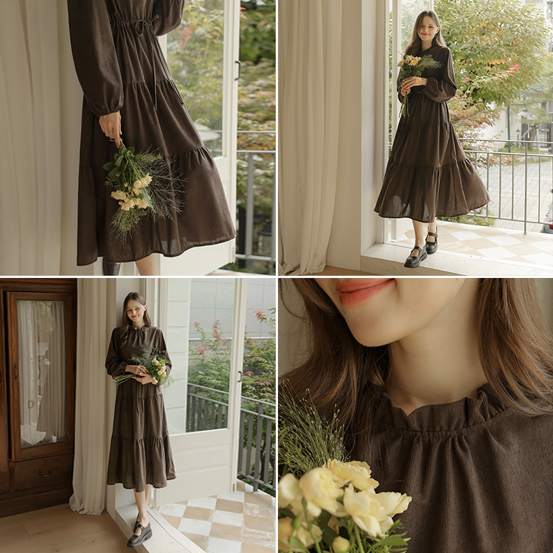 [뮤즈린] 레이첼 프릴넥 스트링 코듀로이 원피스