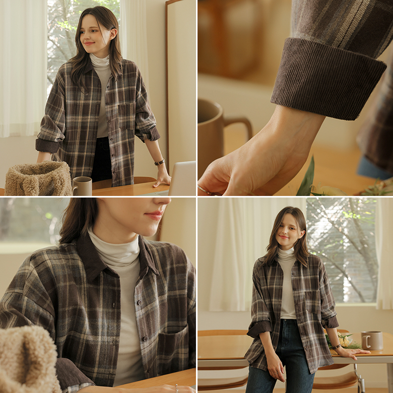 [뮤즈린] 몽스 골덴배색 체크 셔츠