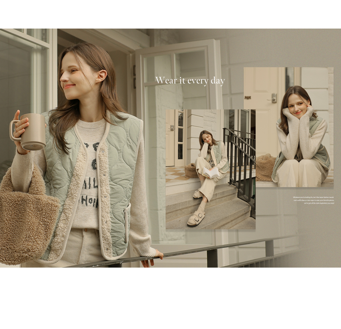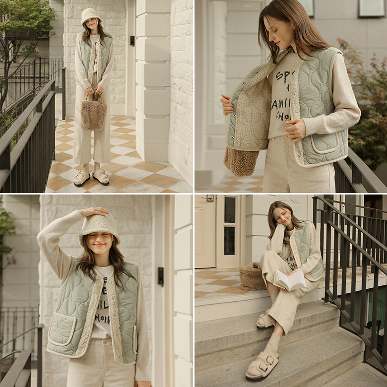 [뮤즈린] 와트 퀼팅 배색 양털 조끼