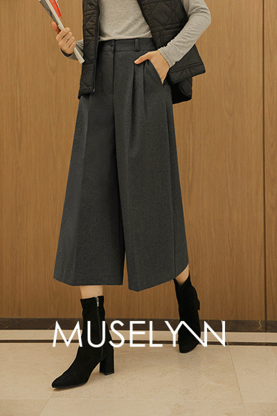 [뮤즈린] 호딘 핀턱 8부 와이드 슬랙스 [밴딩/기모]