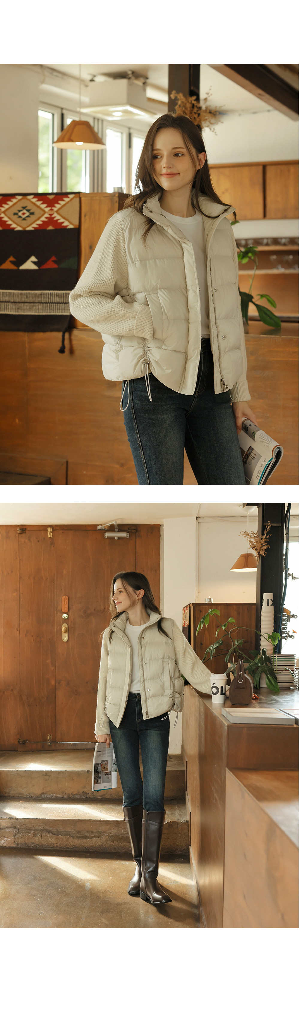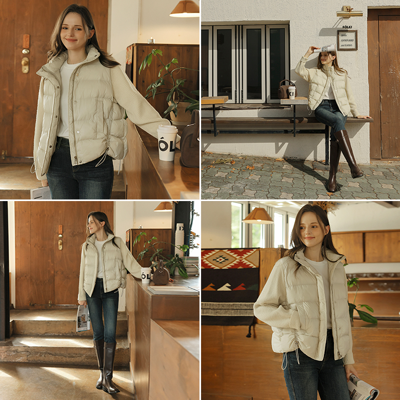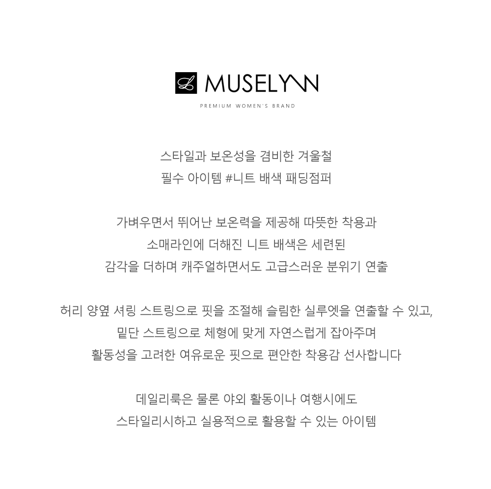 [뮤즈린] 아더 셔링 니트배색 패딩점퍼 [웰론]