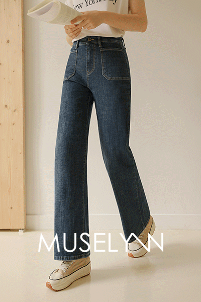 [뮤즈린] 토슨 포켓 세미와이드 데님팬츠 [밴딩/기모]