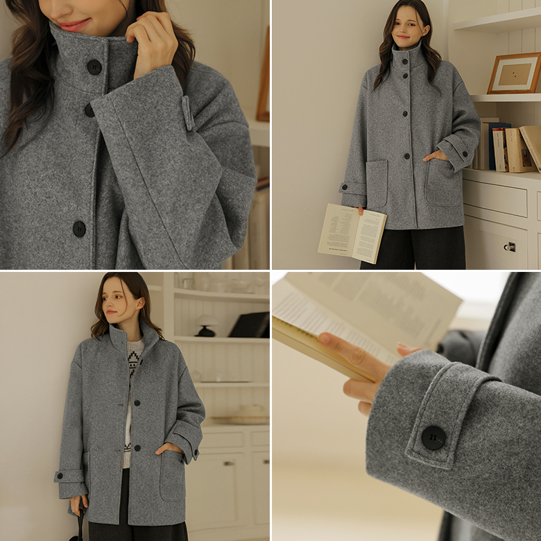 [뮤즈린] 케일 하이넥 울 하프 코트