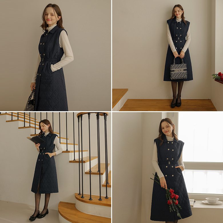 [뮤즈린] [벨트set] 가네 퀼팅 더블버튼 나시 원피스 [웰론]