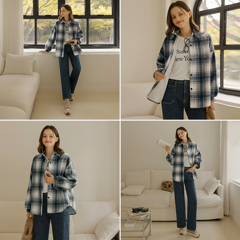 [뮤즈린] 토슨 체크 셔츠 자켓 [밍크]