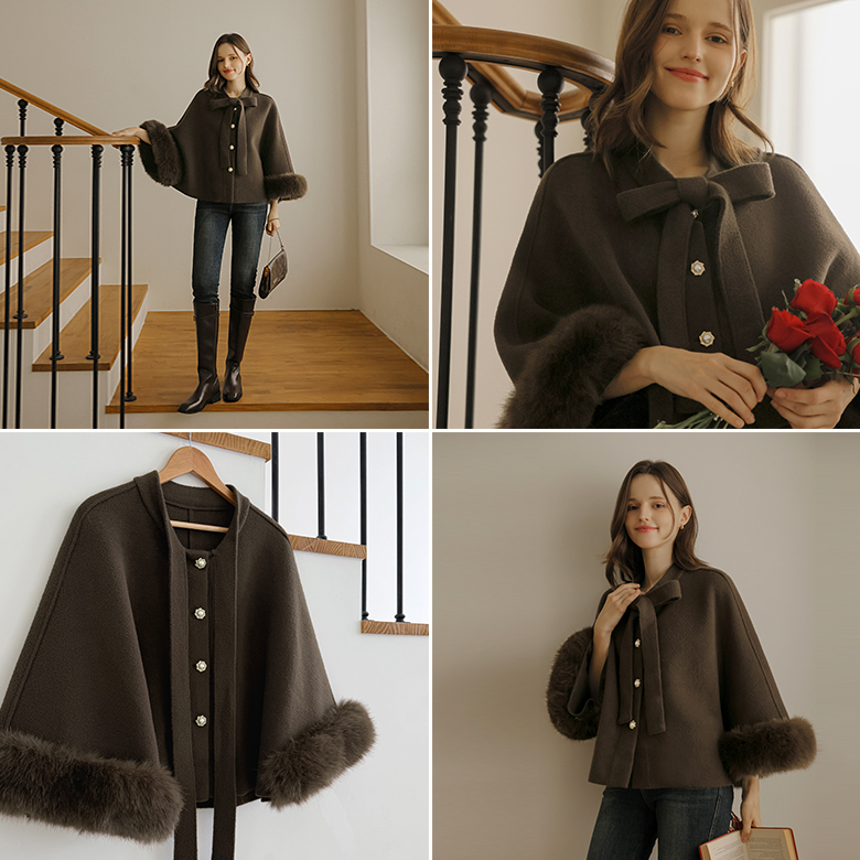 [뮤즈린] 베아 타이 밍크퍼 케이프 울 가디건 자켓