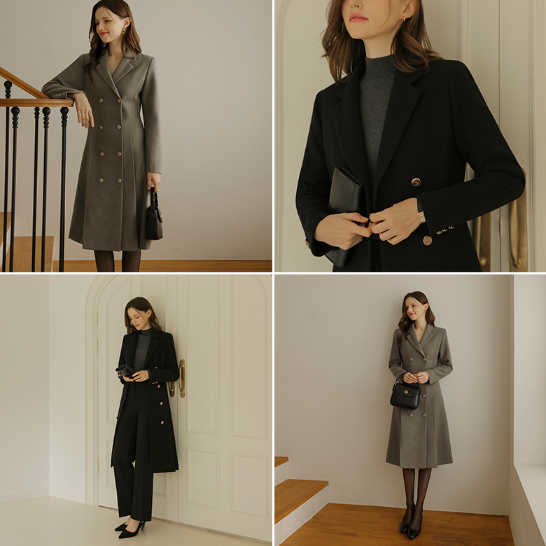 [뮤즈린] 로비드 더블버튼 핀턱 원피스 코트